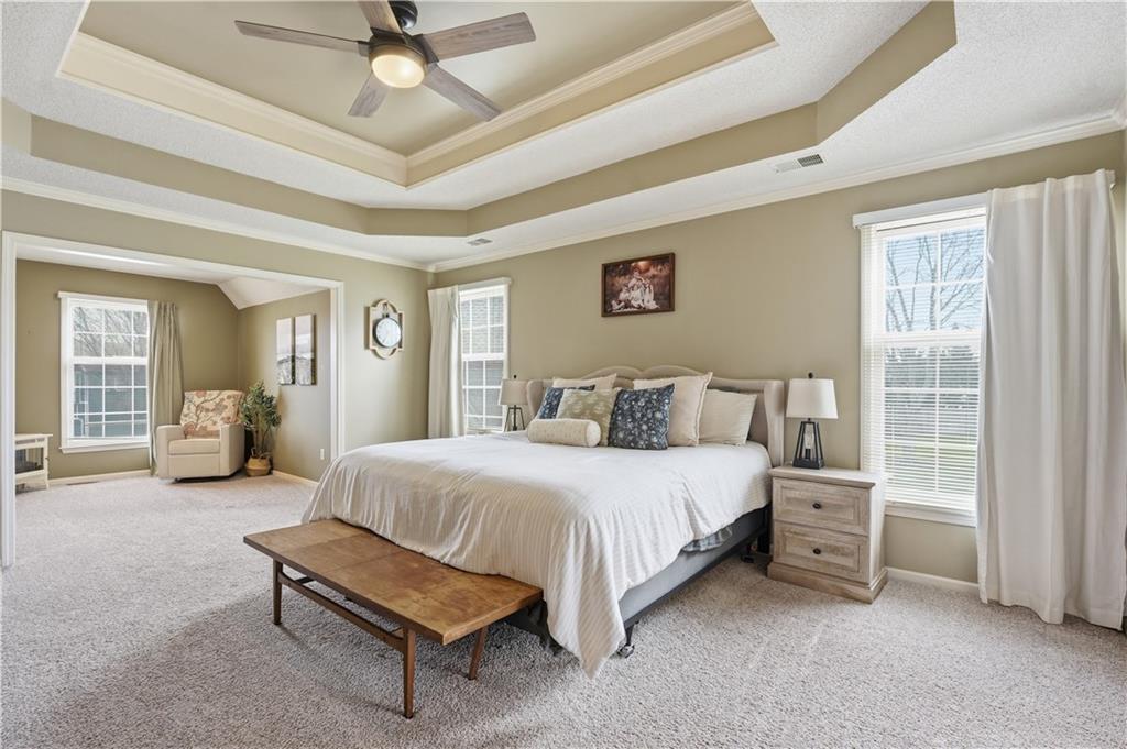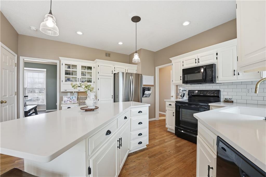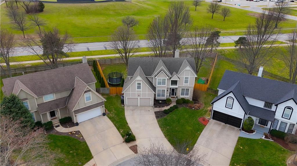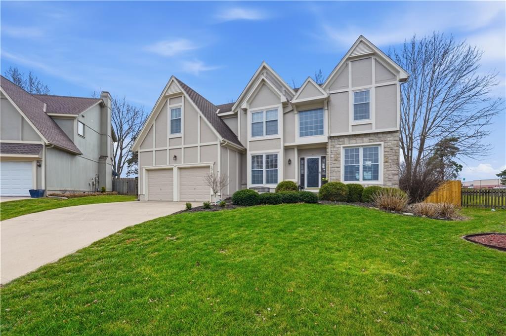 Tucked at the end of a cul-de-sac on an oversized lot in prime Olathe, this beautifully updated home offers the space, layout, and upgrades The open-concept main level features hardwood floors, abundant natural light, and a spacious family room anchored by a fireplace and dramatic floor-to-ceiling windows. The kitchen has been thoughtfully refreshed with quartz countertops, painted cabinetry, a new sink and faucet, plus an island, eat-in area, and ample counter space—perfect for everyday living and entertaining. The fully finished basement adds immediate value with a conforming bedroom, an additional non-conforming bedroom, and flexible living space ideal for guests, a home office, or multi-generational living. Upstairs, the primary suite offers tray ceilings, a sitting area, double vanity, and a walk-in closet. The secondary bathroom has been fully updated with new tub, tile, flooring, and fixtures. New carpet and updated flooring throughout give the home a clean, move-in ready feel. Major upgrades include new HVAC, new rear windows, extended patio space, and a full 6-foot privacy fence. The oversized backyard offers a peaceful setting with easy access to nearby walking and nature trails. Located within walking distance to the middle school and just minutes from elementary and high school options, this home checks every box with a rare combination of location, updates, and functionality.
