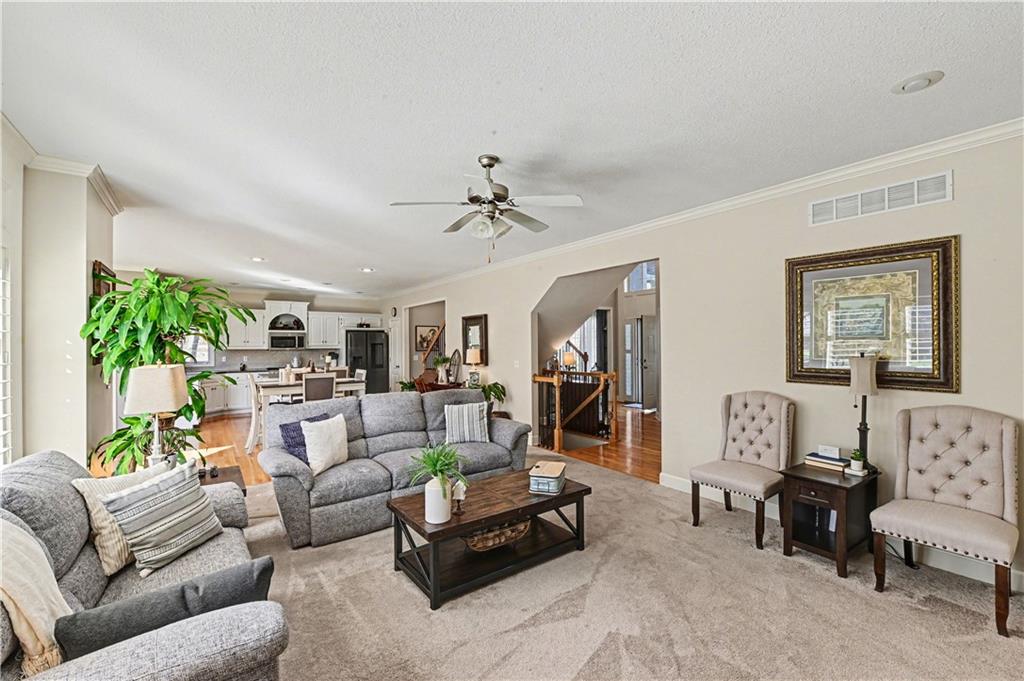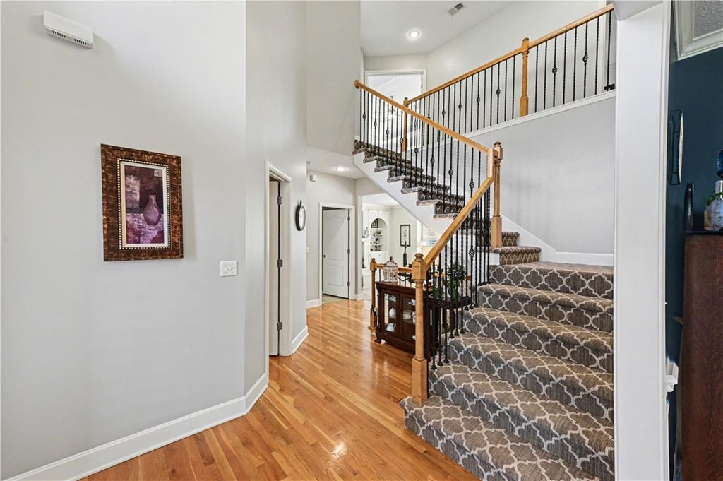 Welcome to this stunning two-story home in the highly sought-after Hills of Oakwoods, perfectly positioned on a private .81-acre cul-de-sac lot. With 4 bedrooms, 4 full and 1 half baths, a 3-car garage, and over 4,300 square feet, this home offers the perfect blend of thoughtful updates, meticulous care, and peaceful surroundings. From the moment you step inside, you’re greeted by soaring ceilings, floor-to-ceiling windows, and an abundance of natural light that fills the semi-open floor plan. The beautifully updated kitchen features freshly painted white cabinetry, a center island with additional seating, stainless steel appliances, and a spacious walk-in pantry. It flows seamlessly into the inviting hearth room, eat-in area, and expansive living room complete with a fireplace and custom built-ins—ideal for both everyday living and entertaining. The dining room is conveniently located just off the kitchen. Step outside to the deck and take in the serene, private views—your own peaceful retreat. A laundry and mudroom are thoughtfully located just off the oversized three-car garage for added convenience. Upstairs, you’ll find four spacious bedrooms and three full baths, including a luxurious primary suite with beautiful views, two walk-in closets, and a spa-like bath featuring double vanities, a soaking tub, and separate shower. One bedroom offers a private en-suite, while the others share a Jack-and-Jill bath. The walk-out lower level is truly exceptional, offering endless possibilities. Enjoy a large open living space, full wet bar, a non-conforming fifth bedroom perfect for a home gym or office, and a fourth full bath. Step out to the covered patio and continue to enjoy the tranquil, private setting. This home is truly move-in ready with nothing left to do. All of this in a fantastic location within a highly rated school district—this is one you won’t want to miss.