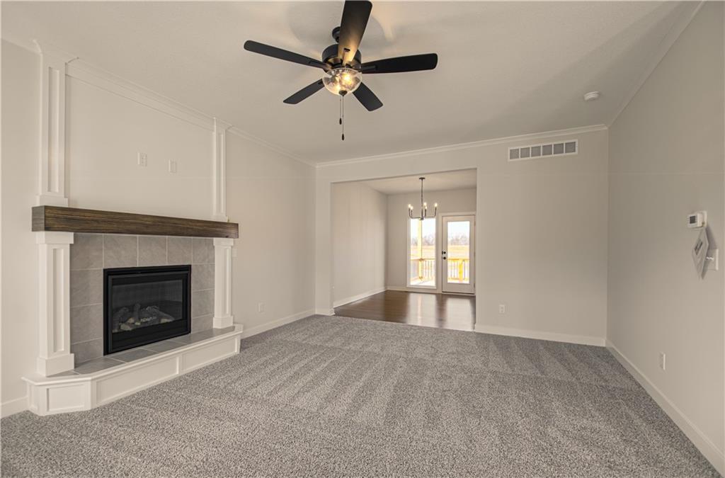 The "CAMDEN" by Robertson Construction**COMPLETED AND MOVE-IN READY! Actual Photos of Home! ASK ABOUT OUR BUILDER RATE BUYDOWN INCENTIVE! A stunning 2-story home offering 4 bedrooms, 2.5 bathrooms, and a 2-car garage. A fantastic value in new construction! The Main Level features a bright, Open Living Room with a Gas Fireplace, Large Kitchen with Quartz Countertops, Custom Built Cabinets with Soft Close Cabinet Doors, Island with Storage, Dining Area, a convenient Half Bath, and a Covered Deck perfect for entertaining. Upstairs, you’ll find a Beautiful Master Suite with a Private Master Bath, three additional bedrooms (oversized 4th bedroom), full bathroom and the convenience of Bedroom-Level Laundry. A large unfinished basement for storage or a future finish. Located in the highly-rated Kearney School District!