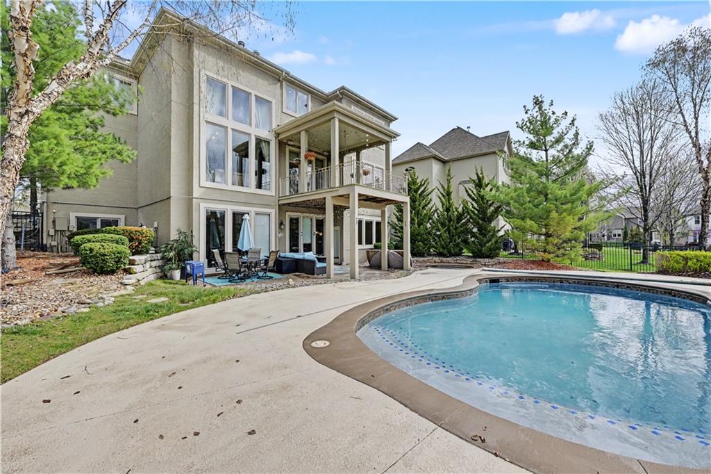 Experience elevated living in this exceptional, one-of-a-kind residence designed for unforgettable family living and effortless entertaining. Every detail has been thoughtfully curated to impress, from the resort-style outdoor retreat to the high-end finishes throughout all three levels. Step outside to your private oasis featuring a stunning in-ground gunite saltwater pool, an oversized spa, and lush, professionally designed landscaping—perfect for relaxing or hosting gatherings. Inside, the walk-out lower level is an entertainer’s dream, complete with a full theater space, a sophisticated bar, and a dedicated kids’ movie and playroom. The heart of the home is a chef’s kitchen equipped with top-tier appliances, ideal for both everyday living and upscale entertaining. Luxurious materials such as travertine, marble, and natural stone add elegance and timeless appeal throughout. Modern convenience meets refined design with advanced home automation, including motorized shades, a seamless whole-home audio system extending to outdoor spaces, and beautifully appointed smart bathrooms with cutting-edge features. Situated on a quiet, family-friendly cul-de-sac, this home offers a rare combination of privacy, security, and community charm. A striking floating staircase serves as a dramatic architectural centerpiece, while the home’s distinction is further elevated by its feature as a showcase property in KC Homes & Style Magazine. This extraordinary custom-built estate is truly a standout—where luxury, comfort, and lifestyle come together.