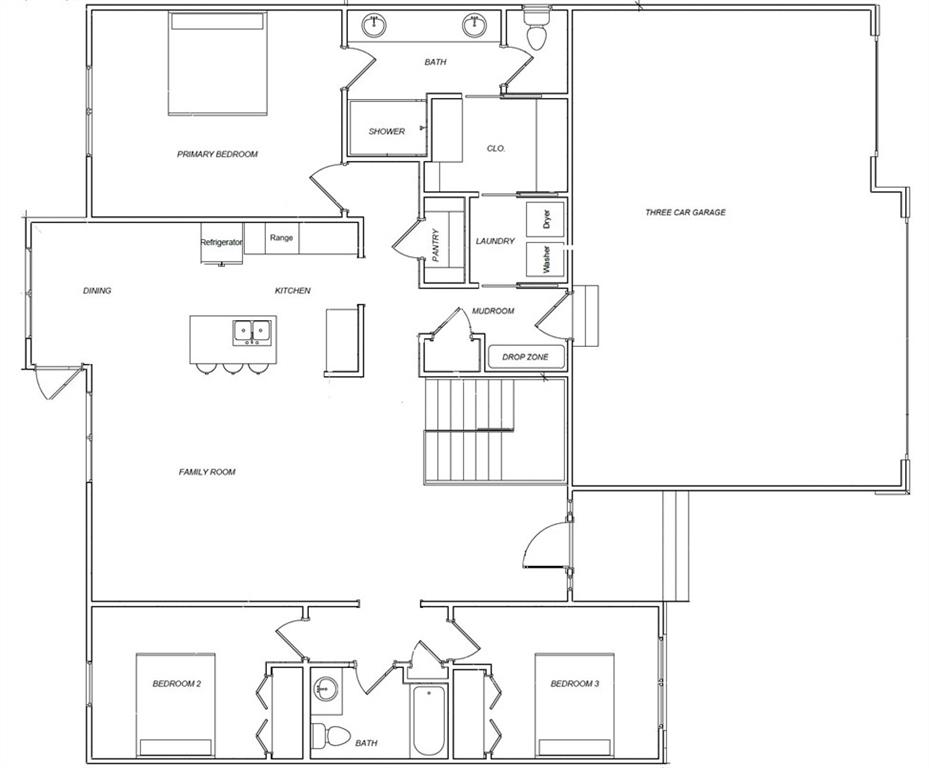 New construction home in Baldwin City featuring main-level living and numerous upgrades throughout! The open floor plan offers a spacious entry leading to the living room, which flows seamlessly into the eat-in kitchen. The kitchen is appointed with custom wood cabinetry, quartz countertops, a large island, stainless steel appliances, and a custom range hood. The primary suite includes a tiled walk-in shower, separate water closet, and direct access from the walk-in closet to the laundry and mudroom off the garage. The upper level features two additional bedrooms and a full bathroom. The basement is fully framed and ready for you to finish and make it your own! Additional highlights include a 3-car garage with electric vehicle charging outlets and a patio area for outdoor enjoyment. The property backs to wooded Douglas County land. Conveniently located near Baldwin schools, local dining, and highway access.