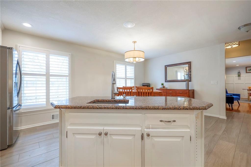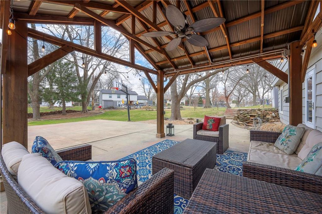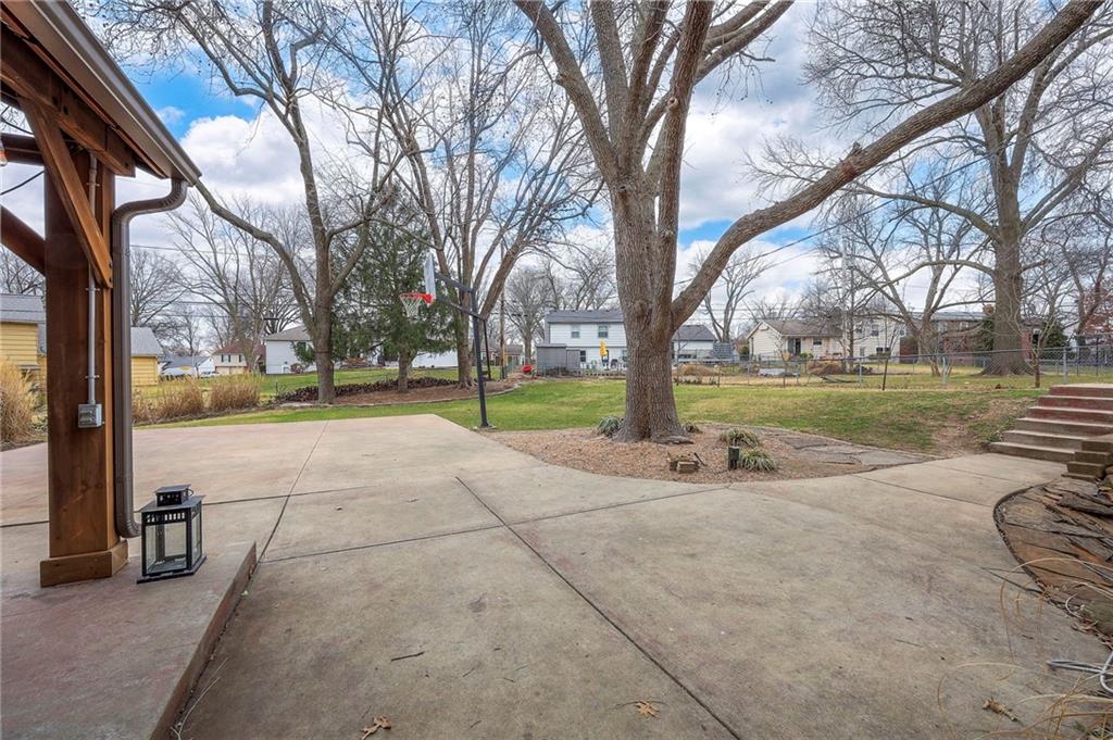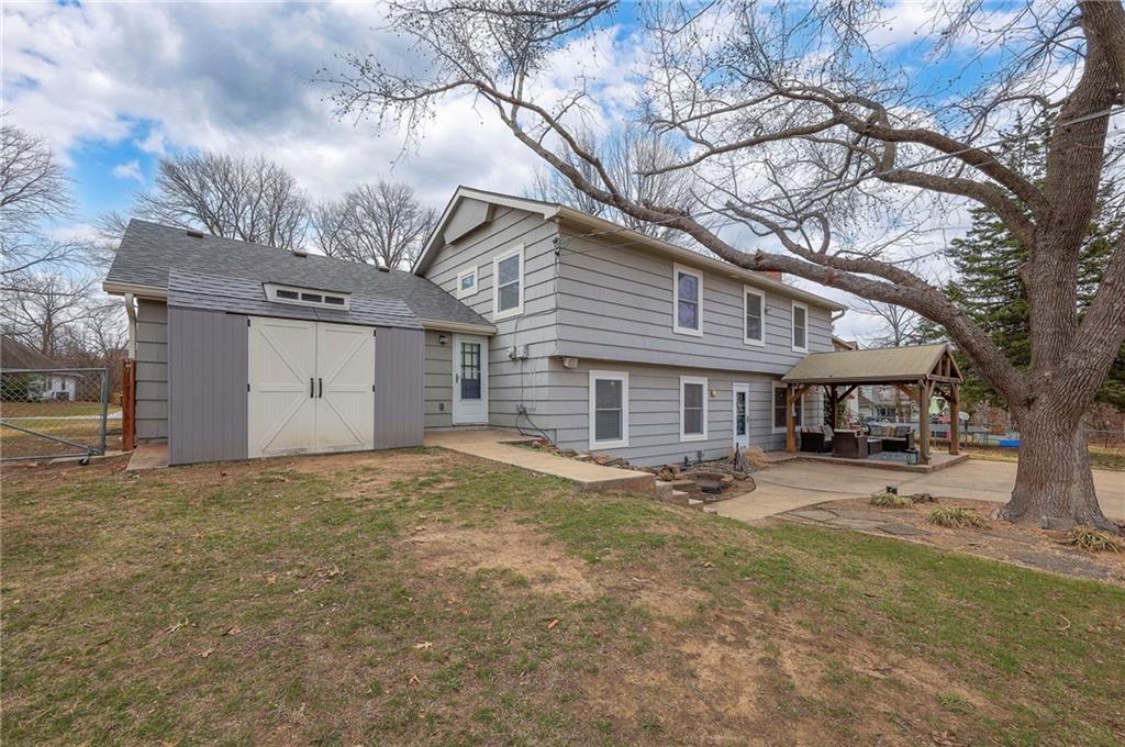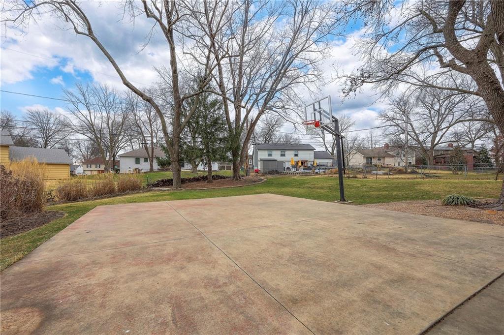 Great location on this tree lined street in Overland Park. Functional floorplan with two separate living areas to kick back and relax. Main level Kitchen is updated with island, granite, gas range, uplighting, lots of cabinets, granite, SS appliances, and tile flooring. A Formal Living room and Dining Room with wood floors and a big picture window allow lots of natural light. The second level has three bedrooms, including the primary suite with 2 closets and private bathroom. Bedroom two has a built-in loft area that will be a child's delight. Bedroom three plus a full bath complete this level. Warm, inviting Family Room features Fireplace with wood burning insert to provide extra heat on chilly evenings. There is also a fourth bedroom with daylight windows and two closets, and a full bathroom on this level. Storage is no problem because this home has a sub-basement to store your extra belongings or create a workshop. Walk out from the family room to a backyard paradise. Sip your morning coffee or evening beverage as you enjoy this approximately third acre lot, with basketball court, pergola, patio and mature trees for privacy. Nearby old town Overland Park has a renowned Farmers Market, restaurants and cute shops to enjoy.