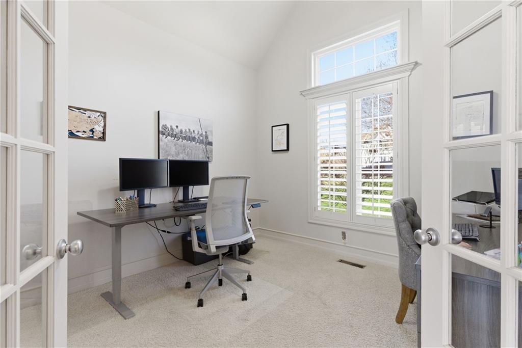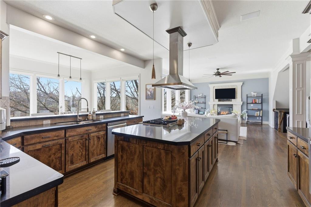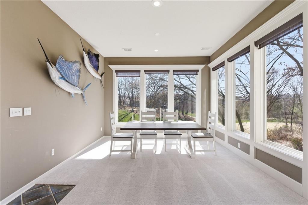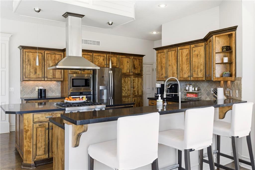 Welcome Home to this stunning golf front home located on The Bluffs Golf Course at The National. Overlooking the 13th Tee Box at the end of a quiet cul-de-sac, this 4 Bedroom / 5 Bathroom home offers over 4,500 square feet of luxury living. It is a perfect home that is designed for everyday living and entertaining, with tall windows on all levels that fill the home with natural light and allow you to take in the beautiful golf course views. The main level features a dedicated office, laundry room, and is a perfect spot for hosting with an open layout between the Kitchen, Living Room, and Dining Room. With the weather warming up, you will also have an incredible screened-in porch that can become your private sanctuary for morning coffee or sunset happy hour. All four bedrooms are located upstairs, including a spacious primary suite with a large bathroom, a morning deck to enjoy the fresh air, and a dream closet that also has your 2nd set of washer/dryer hookups. Two bedrooms share a Jack and Jill Bathroom, while the fourth bedroom acts as a secondary primary with its own en-suite. The walk-out basement is built for entertaining, featuring a true wine cellar, a full wet bar, a great space for a 2nd dining room table or playroom, and a full bath. This level also includes a bonus room currently utilized as a workout gym. All of that comes with easy access to the backyard to enjoy an evening by the fire pit or watch the sunsets. Along with all that, you have a new roof put on in 2024, and a new Trex deck with retaining walls in the back. Living here means more than just a beautiful home; it’s a community lifestyle. Enjoy Park Hill Schools and proximity to the charming shops of downtown Parkville. Neighborhood amenities include a pool, walking trails, and play areas, with additional memberships available for world-class golf, tennis, and the elite smart gym. This is golf course living at its finest—combining space, function, location, and unbeatable views.