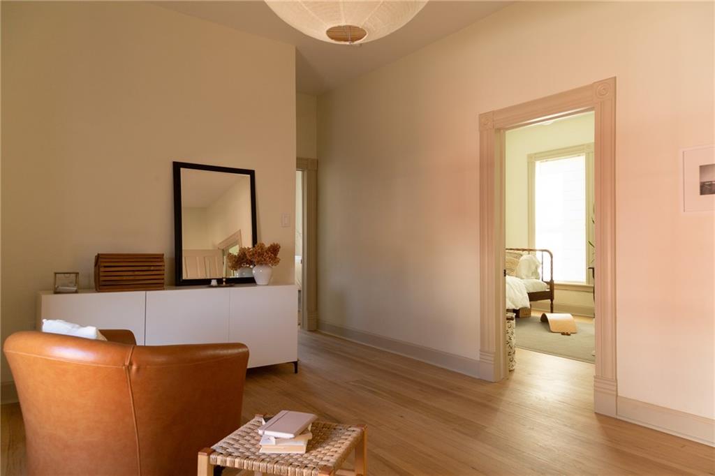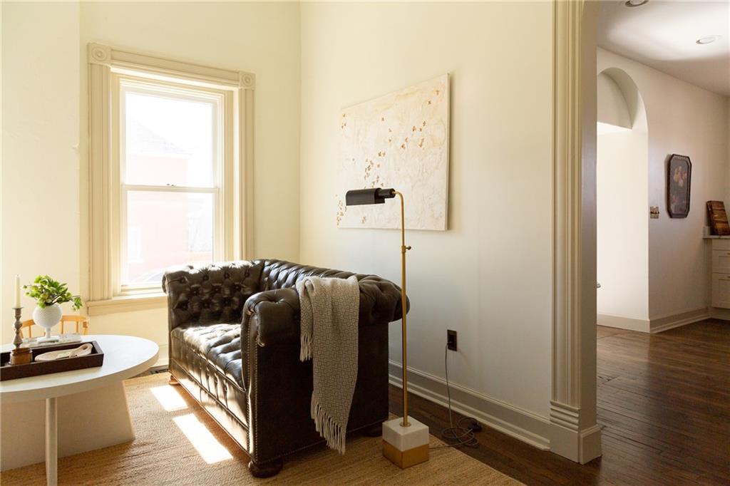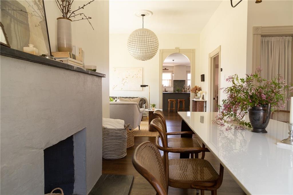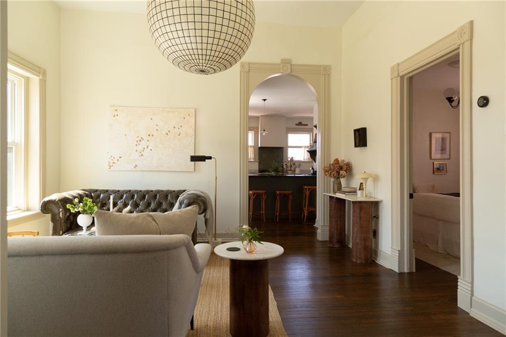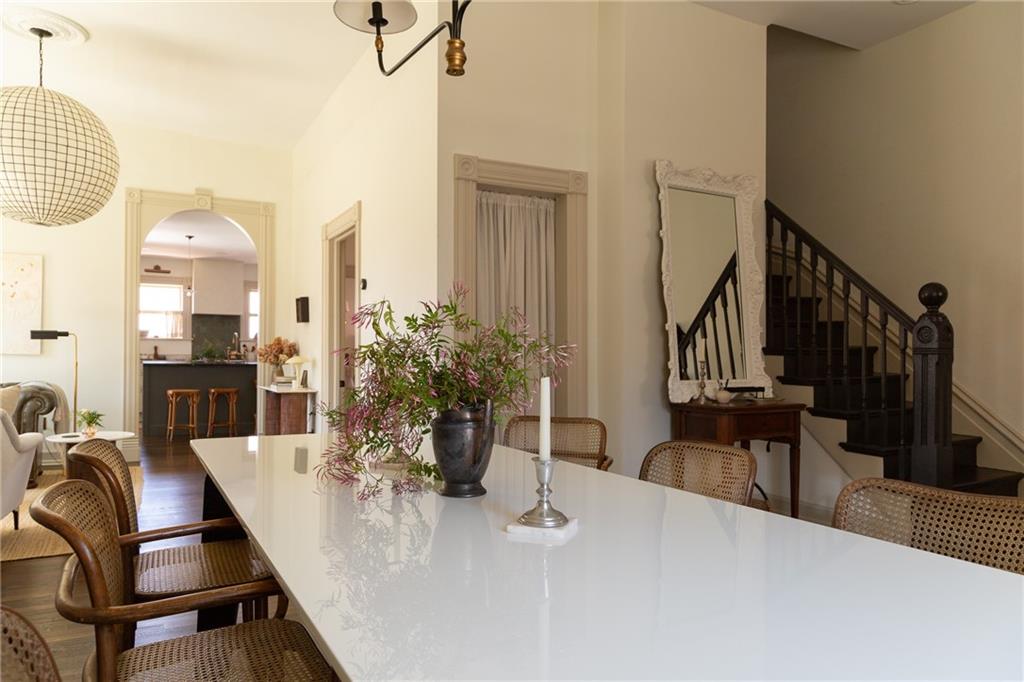 Buttery hardwood floors, tall ceilings, and natural light give this updated Victorian its unmistakable character. An elevated, custom renovation brings clarity and refinement to the original architecture, pairing sculptural millwork, reclaimed elements, and exposed brick with carefully chosen details throughout. Living and dining spaces connect fluidly, comfortable for everyday life yet generous when entertaining. The kitchen reflects the same level of intention, with quartzite and soapstone countertops, well-appointed cabinetry, tailored brass hardware, walk in pantry storage, and a high-end appliance suite chosen for beauty and performance. Both full baths are equally well considered, featuring elevated fixtures, curated tile selection, and finely detailed hardware. An exquisite lighting collection adds warmth throughout, while custom Marvin windows frame leafy neighborhood views along historic Olive Street. Outdoor living is an extension of the home itself, including an inviting wrap around front porch and two spacious rear decks overlooking a rare double lot. A front entry garage and ample off-street parking provide everyday ease, while the full, unfinished basement offers expansive storage capacity. Recent updates to major systems and the roof add confidence, with a long-term tax freeze providing welcome financial ease. This polished home is located in downtown’s Upper East Side neighborhood of Pendleton Heights, a historic district known for its character, walkability, and strong sense of community.