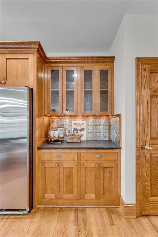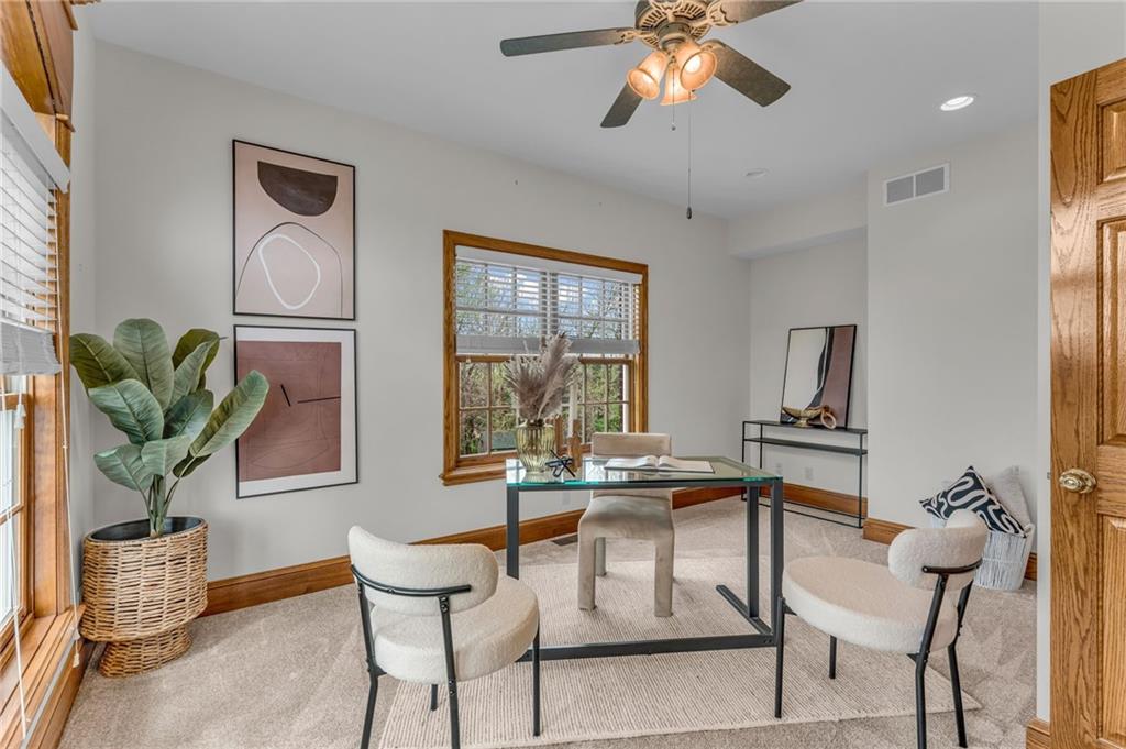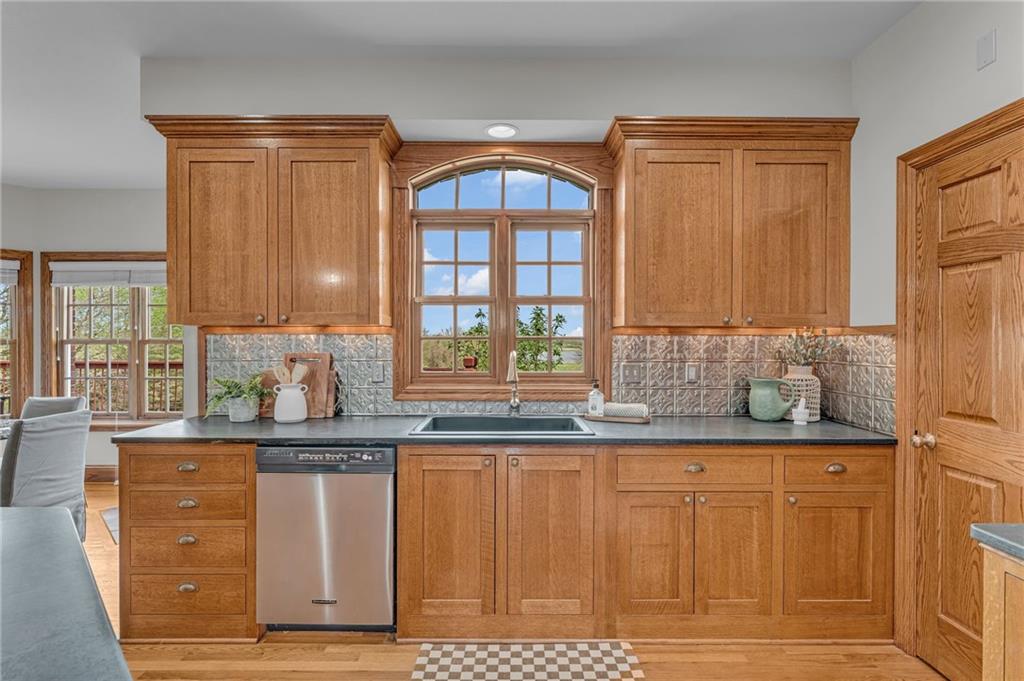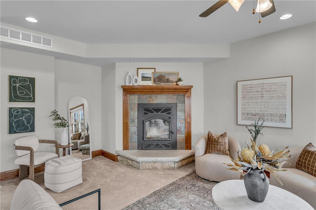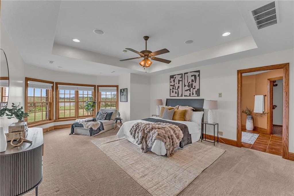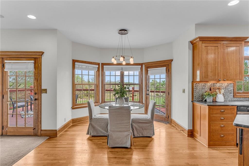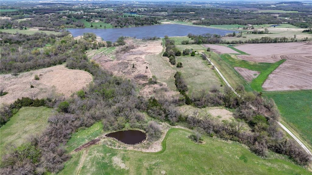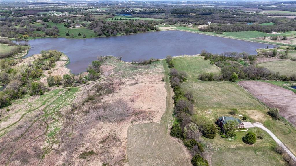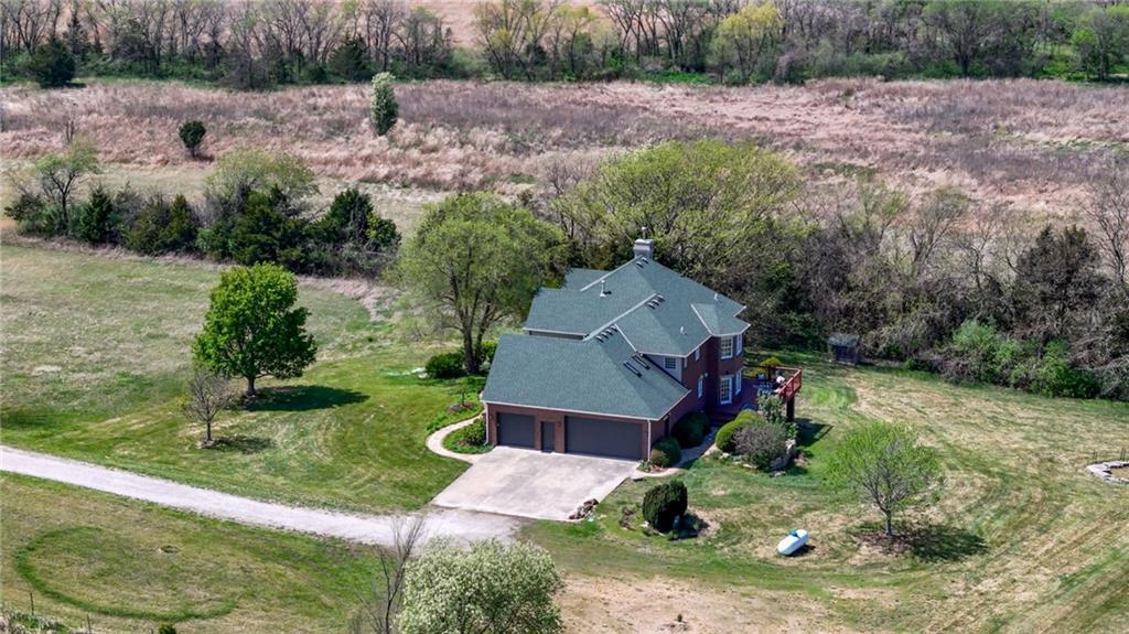 Don't miss this incredibly rare opportunity to own a beautiful estate on a 40-acre lake. Set on 45 acres near Baldwin City, this exceptional lakefront home offers seclusion and serene nature that's rich with wildlife. The property features direct shoreline access, ideal for fishing and water recreation. A spacious deck extends the living area outdoors and captures stunning views of the surrounding countryside. Inside, more than 3,500 square feet includes 4 bedrooms and 5 bath areas. The kitchen features soapstone countertops, a gas range, extensive cabinetry, and an oversized island with well-planned storage. A casual dining area sits just off the kitchen, while a formal dining room with crown molding provides a more defined space for gatherings. The living room is centered around a gorgeous fireplace with an oak mantel and insert, creating a warm focal point while entertaining guests. The primary suite offers a spacious retreat, complete with a jetted tub, walk-in shower, and a large walk-in closet. The walkout lower level is unfinished and ready for future expansion. It includes a nearly 800 sq ft concrete storm room beneath the garage, complete with built-in shelving. Additional features include newer roof, zoned HVAC, multiple water heaters, a water softener, and a humidifier. Thoughtful landscaping enhances the home’s natural surroundings. Access is convenient, with primarily paved roads and only a short gravel approach, an uncommon advantage for a property of this size. This is a rare opportunity to experience private lakefront living that is hard to come by.