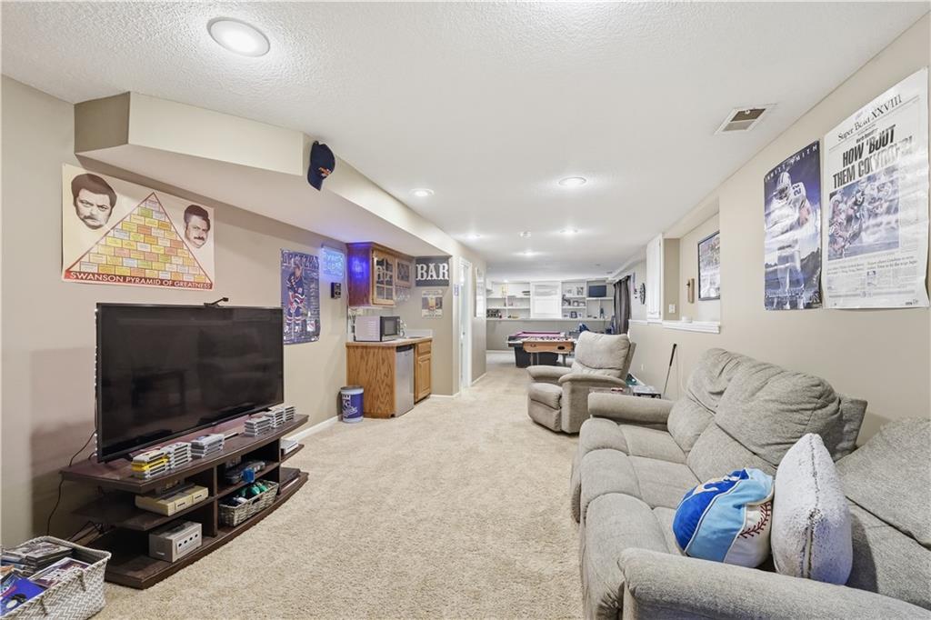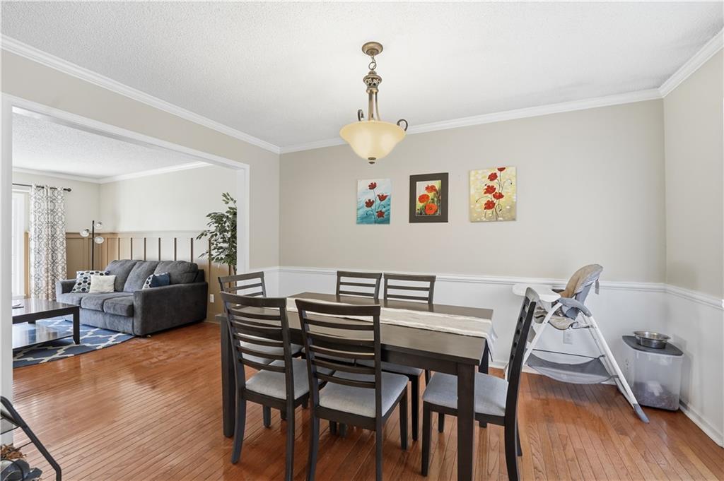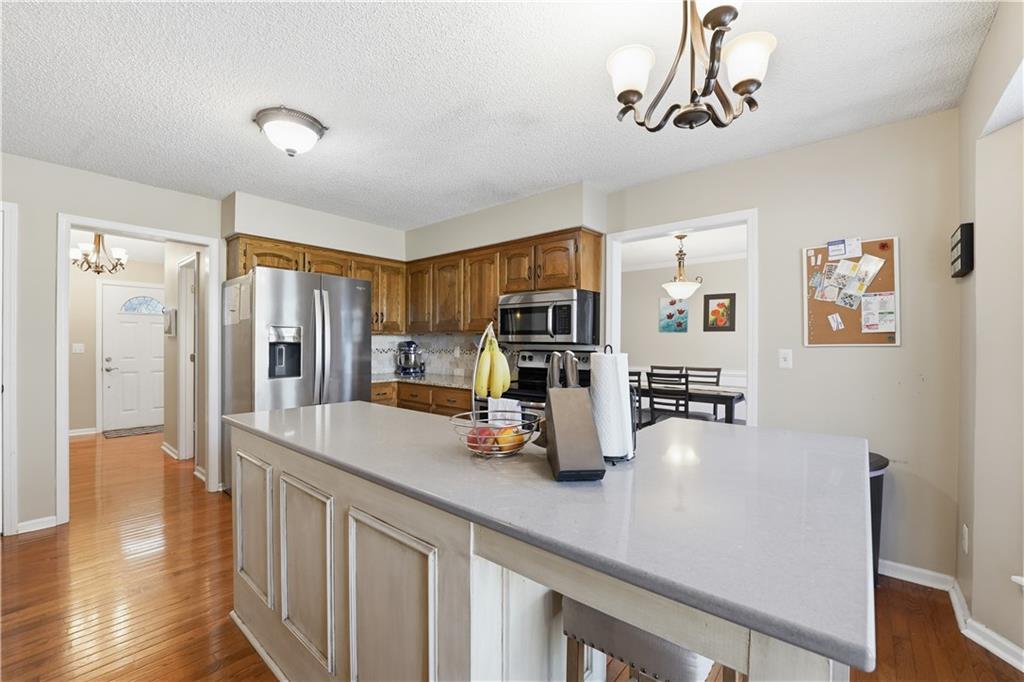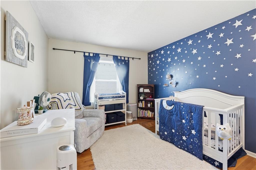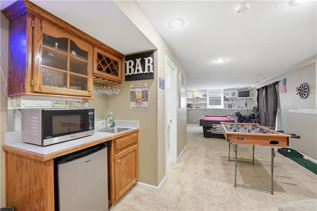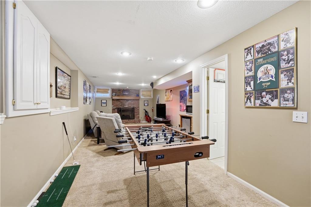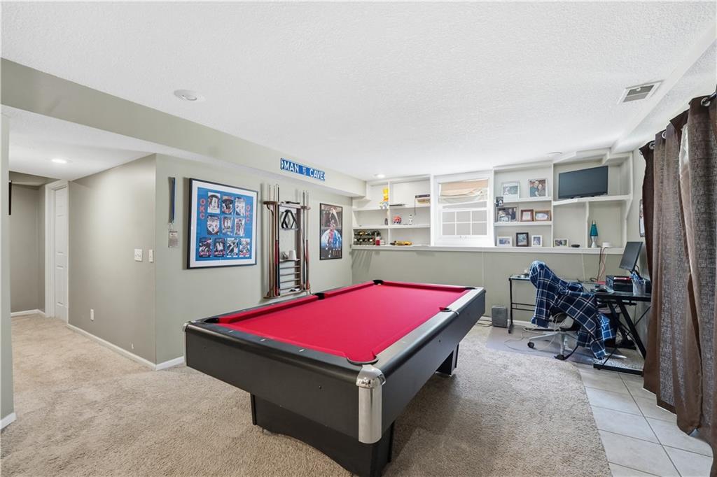 Ideally situated near Little Mill Creek South Park, great location! Gleaming wood floors run throughout the main level and continue upstairs into the hallway and bedrooms, creating a warm, cohesive feel. The main level offers flexibility and function, featuring a spacious living room with classic wainscoting—ideal as a sitting area or home office—alongside a formal dining room with direct access to the back deck. The kitchen is both stylish and practical, showcasing abundant cabinetry, granite and quartz countertops, stainless steel appliances, and a custom island with pullouts and seating. It opens seamlessly to the cozy great room, where a fireplace and built-in shelving create the perfect gathering space.Upstairs, you’ll find four generously sized bedrooms, a charming loft area, and two beautifully updated tiled bathrooms. The primary suite is a standout with its coffered ceiling, dual closets, and a refreshed en-suite bath featuring a tiled shower and floor and vanity with granite top. The finished walk-out basement expands your living space even further, offering the ultimate hangout zone with built-in shelving, a rec area with pool table, half bath, wet bar, and a media space with fireplace. Don't miss this gem!