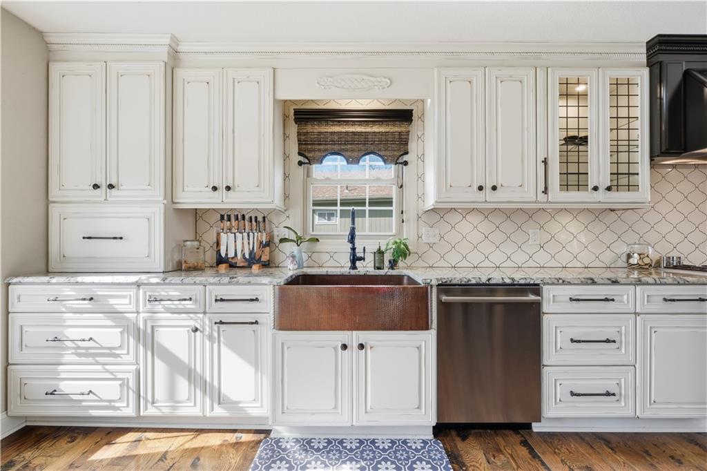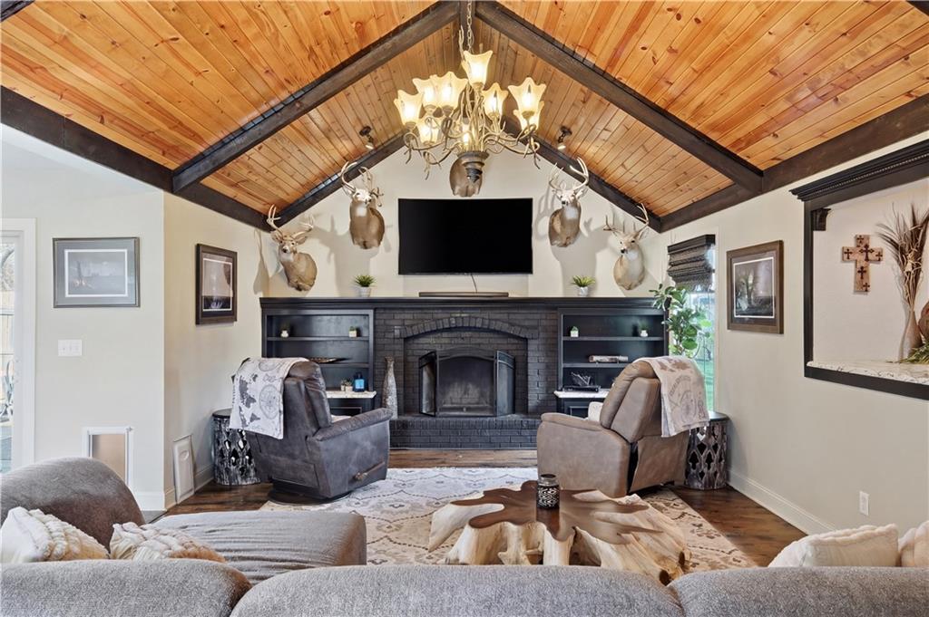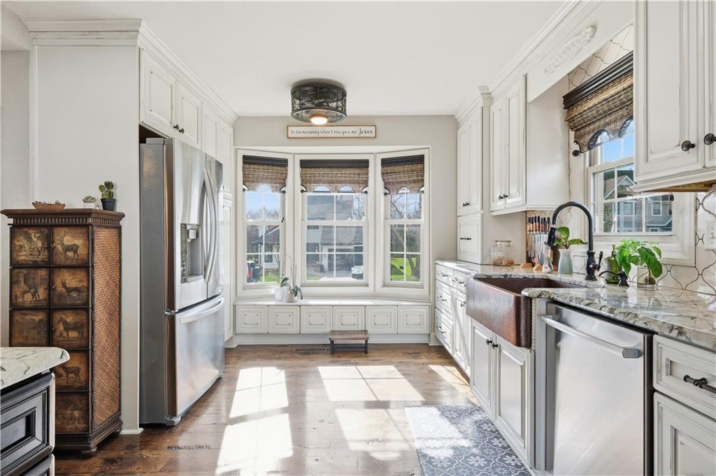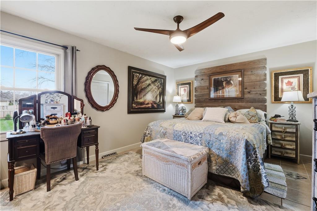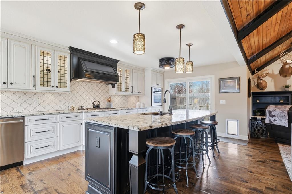 Beautifully updated has the perfect blend of modern upgrades, quality craftsmanship, and comfortable living—inside & out. Impressive exterior features a 50-yr composite roof and gutters (2024), smartboard siding with Tyvek wrap (2023), all newer double-pane, tilt-in windows for efficiency and easy maintenance. Sleek black steel fence. Large backyard w/newly added landscape boulders and 17 trees (2025). Brand-new concrete driveway, steps, and front porch (November 2025). New double garage door, & entry door. Updated interior with fresh paint throughout (2025), stunning solid oak floors, complemented by tile in the master bed and main bath. Open-concept living area features a custom wood vaulted ceiling, a cozy fireplace w/custom cabinetry & shelving, and a newer sliding glass door leading to the deck. Home includes upgraded closet systems, custom window coverings, & solid wood Knotty Alder doors throughout. The chef’s farmhouse kitchen is a true showstopper, complete with granite countertops, a large island with seating for 4–5, double sinks, and six electrical outlets. High-end stainless steel appliances include a Bosch gas cooktop with custom hood vented through the roof, built-in oven, dishwasher, microwave, and an LG refrigerator with dual ice makers. Custom cabinetry offers abundant storage w/soft-close features, pullout spice racks, under-cabinet lighting, an appliance garage, & decorative lit display cabinets. A beautiful copper farmhouse sink sits beneath the window. Primary suite includes a full bath with a walk-in shower. The main bathroom offers a tub/shower combo. Walk-in pantry, two fireplaces (one on each level), and an unfinished basement with studs already roughed in—ready for your expansion ideas. With a newer gas water heater and HVAC system approximately 13 years old, this home combines modern updates w/long-term value. Move-in ready with room to grow—this is a must-see property! Check out the community pool coming this Summer.