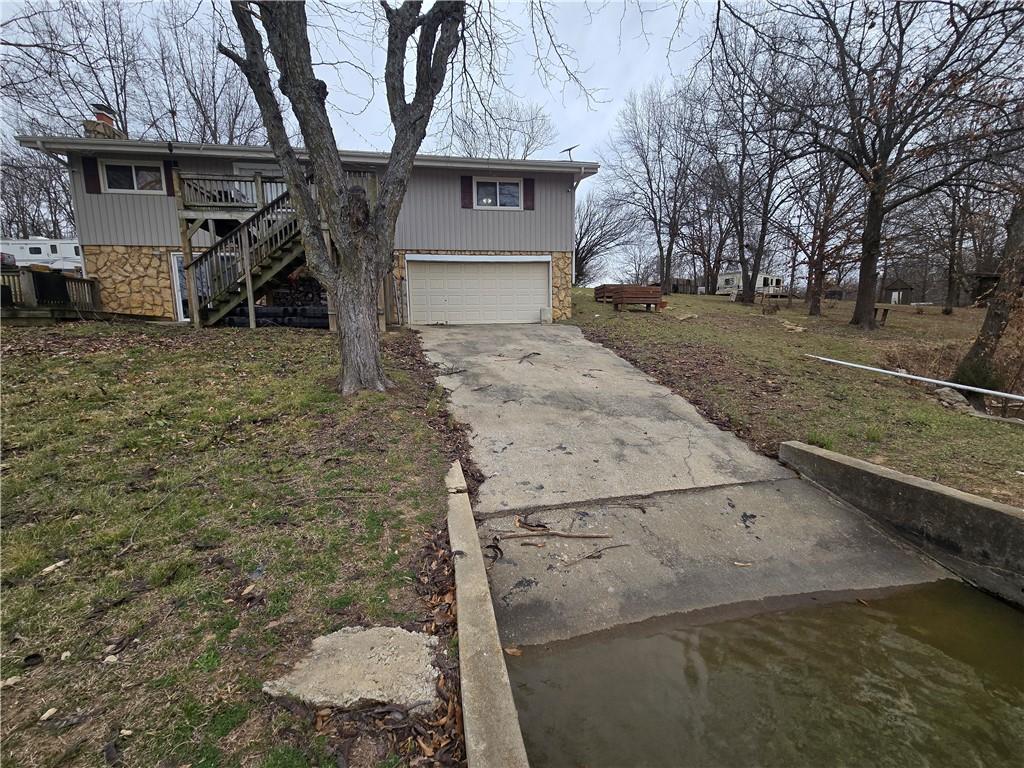 BEST lot on the lake! Wake up every day to breathtaking lake views and end your evenings with unforgettable sunsets over the dam—this lakefront property truly offers one of the best lots on the lake. This 3-bedroom, 2-bath ranch home with a single-car garage is full of opportunity and ready for your personal touch. A true fixer-upper, it’s the perfect canvas to create your dream lake home or a relaxing weekend getaway. Inside, you’ll find a spacious layout, plus a cozy stone fireplace in the basement—ideal for gathering after a day on the water. Step outside and enjoy the unique convenience of a rear-entry garage that backs directly onto your private boat ramp, making lake access effortless. Whether you’re fishing at sunrise, boating all afternoon, or simply soaking in the peaceful surroundings, this property offers the ultimate private retreat. With unbeatable views from both decks, prime lake frontage, and endless potential, this is your chance to transform a rare find into something truly special.