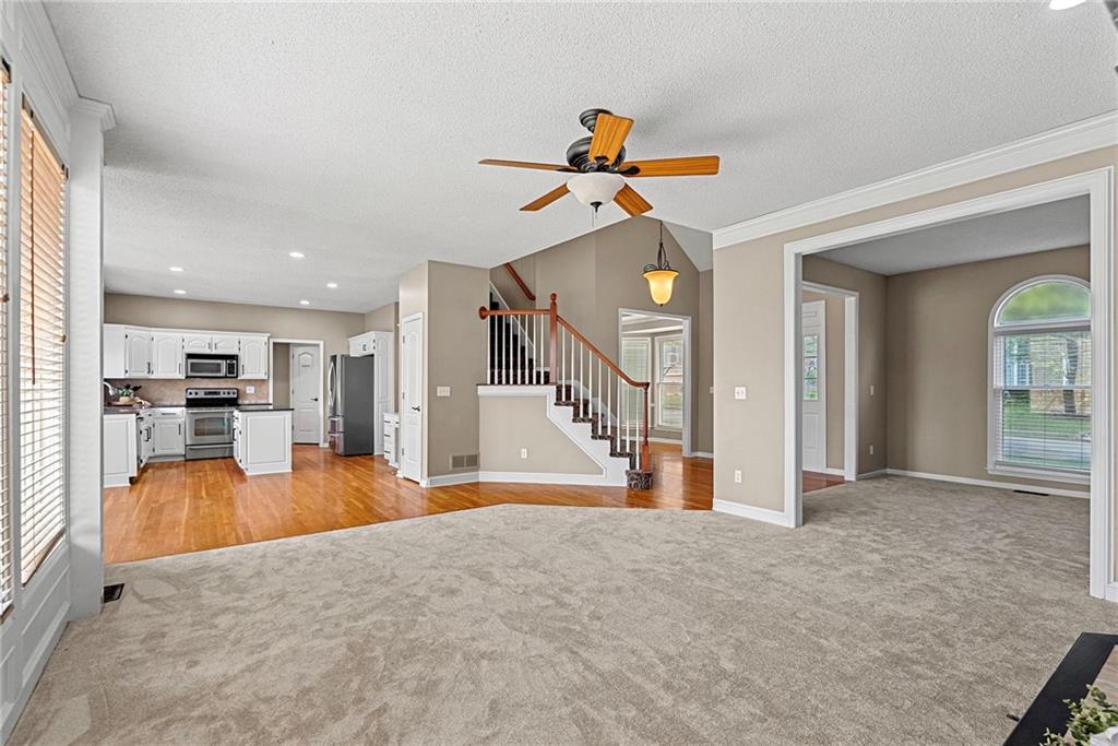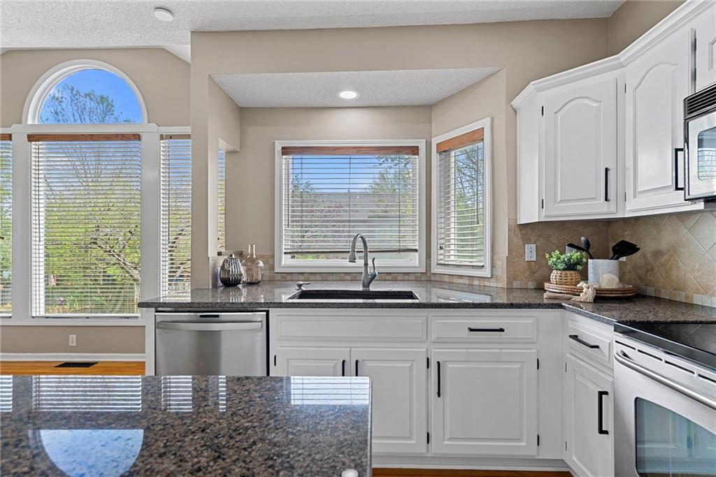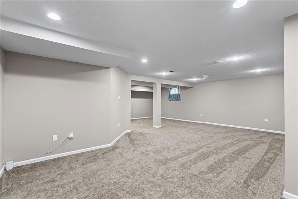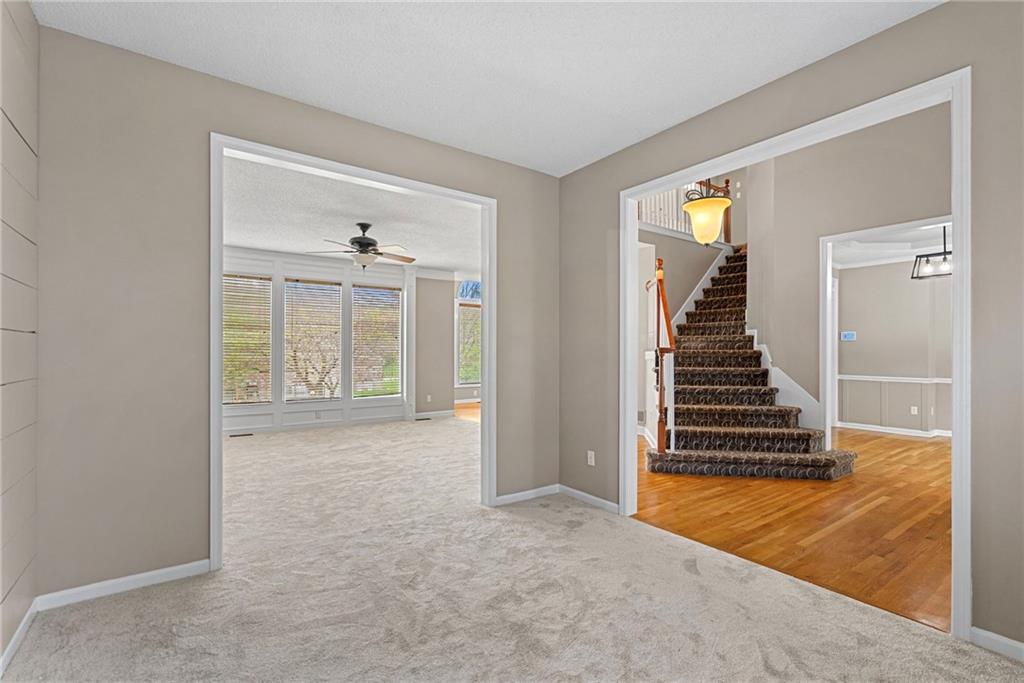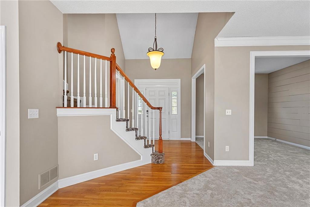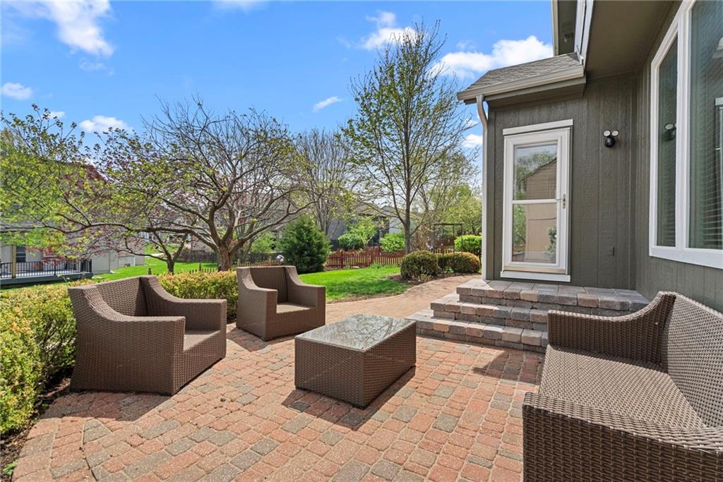 Welcome to this beautifully updated 2-story home in the highly desirable Woodsonia community, located in the award-winning De Soto School District. Thoughtfully refreshed from top to bottom, this home blends timeless charm with modern updates and is truly move-in ready. Step inside to an inviting open floor plan filled with natural light. The main level features fresh interior paint, updated lighting, and a warm, welcoming great room with a fireplace that flows seamlessly into the kitchen. The kitchen has been refreshed with painted cabinetry, updated hardware, and offers abundant storage with a walk-in pantry, making it ideal for everyday living and entertaining. A formal sitting room on the main level provides added flexibility and could easily serve as a home office. Upstairs, you will find brand new carpet throughout all bedrooms, along with a spacious primary suite designed for comfort and functionality. The finished basement offers a versatile space ideal for a rec room, home office, or non-conforming fifth bedroom. Step outside and enjoy your private backyard oasis, complete with a brand-new patio, a new fence, and professionally updated landscaping. Additional exterior improvements include new gutters, fresh exterior paint, wood repairs, outdoor lighting, and a poly-jacked driveway for long-term durability. Major system upgrades, including a new roof in 2024 and a French drain system, provide peace of mind for years to come. Ideally located with easy highway access, this home offers convenience to shopping, dining, and everything the Kansas City metro has to offer. This home offers the perfect combination of space, updates, and location. Do not miss your opportunity to make it yours.