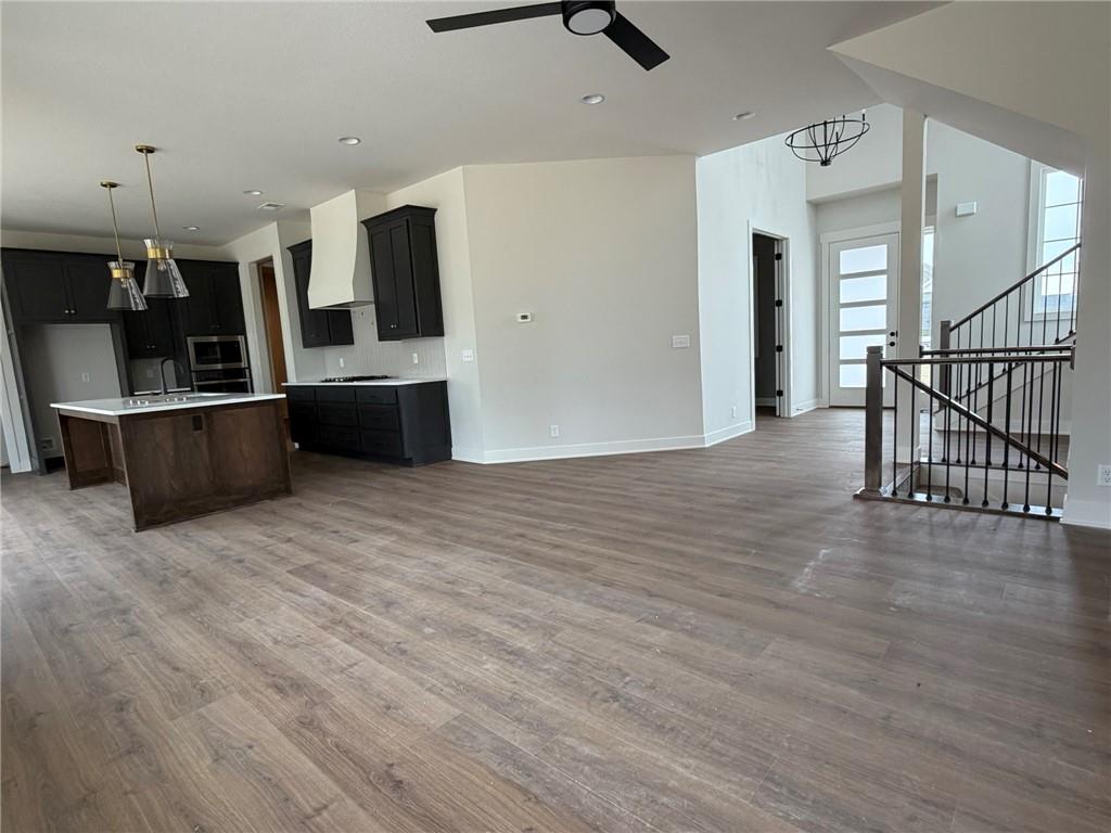 Step into the Inspired Homes 2-story Delano and experience a design that immediately stands out. A dramatic grand entry with 18-foot ceilings welcomes you in and flows seamlessly into the open-concept great room and kitchen. The main living area offers plenty of space to relax and entertain, featuring a striking floor-to-ceiling fireplace with built-in cabinetry, a generous dining area surrounded by wall-to-wall windows, and a thoughtfully designed kitchen. You’ll love the oversized walk-in pantry, upgraded quartz countertops, stylish tile backsplash, soft-close custom cabinetry, and modern lighting throughout. On the main level, a private bedroom and full bath provide the perfect setup for guests, a home office, or a playroom. Near the front entry, a convenient pocket office with a window brings in natural light—ideal for working from home. Upstairs, you’ll find three spacious secondary bedrooms, each with walk-in closets and built-ins, including one with its own private bath. The primary suite is tucked away at the back of the hall and features a luxurious en-suite bath with a soaking tub, dual vanities, and a large dual-head shower. The adjoining walk-in closet is truly exceptional, with two separate wings and a hidden bonus room—perfect for a private office, workout space, or creative retreat. Outside, enjoy a large, flat backyard and an oversized covered patio—perfect for entertaining or relaxing. The expanded 3-car garage offers extra depth and is complemented by a spacious driveway. The full unfinished basement includes plumbing stubs for a future bathroom and wet bar, for endless possibilities to customize the space. Located in the desirable Pryor Ridge community, residents enjoy exceptional amenities including a junior competition-sized pool, playground, basketball and pickleball courts, off-leash dog park, open green spaces, and scenic walking trails. All of this is just minutes from shopping, dining, groceries, entertainment, and easy highway access.