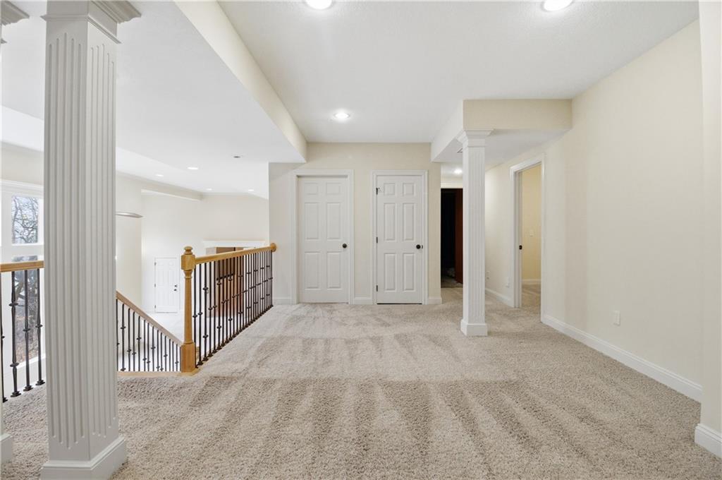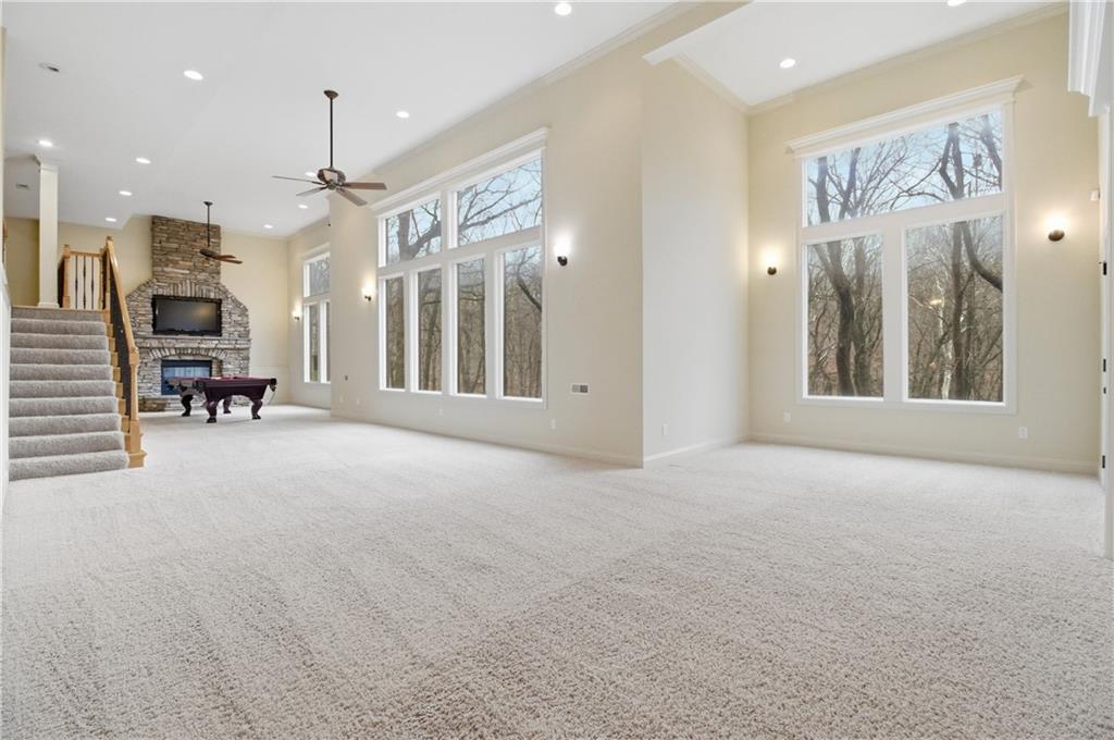 WOW! AMAZING PRIVATE TREED LOT! THIS STUNNING 1.5-story home offers nearly 5,000 square feet of living space and is ideally situated on a private, tree-lined lot just under a half acre. BRAND NEW ROOF coming on 4/6. New gutters will be installed as well. Inside, you’ll find soaring 15-foot ceilings, expansive windows, and abundant natural light throughout. The home has been thoughtfully updated with brand new hardwood floors, new carpet on the main and second levels (including the stairs), fresh interior paint, and new fixtures on the main floor creating a truly move-in ready experience. Two new decks great for outdoor entertaining and morning coffee. Two newer HVACS and Hot Water Heater have been installed to make this a low maintenance home. The spacious layout includes 4 bedrooms, 4 full bathrooms, and a half bath, along with a fifth non-conforming bedroom in the lower level. The two-tiered basement features 15-foot ceilings and offers exceptional flexibility for entertaining, recreation, or additional living space with a wet bar, recreation area, theater room and game room. Pool table and exercise equipment will remain with the home. Additional highlights include a suspended garage for bonus space, a newly replaced retaining wall, and a private backyard setting. This home offers the perfect combination of space, updates, and functionality, making it an exceptional opportunity for comfortable living and entertaining.