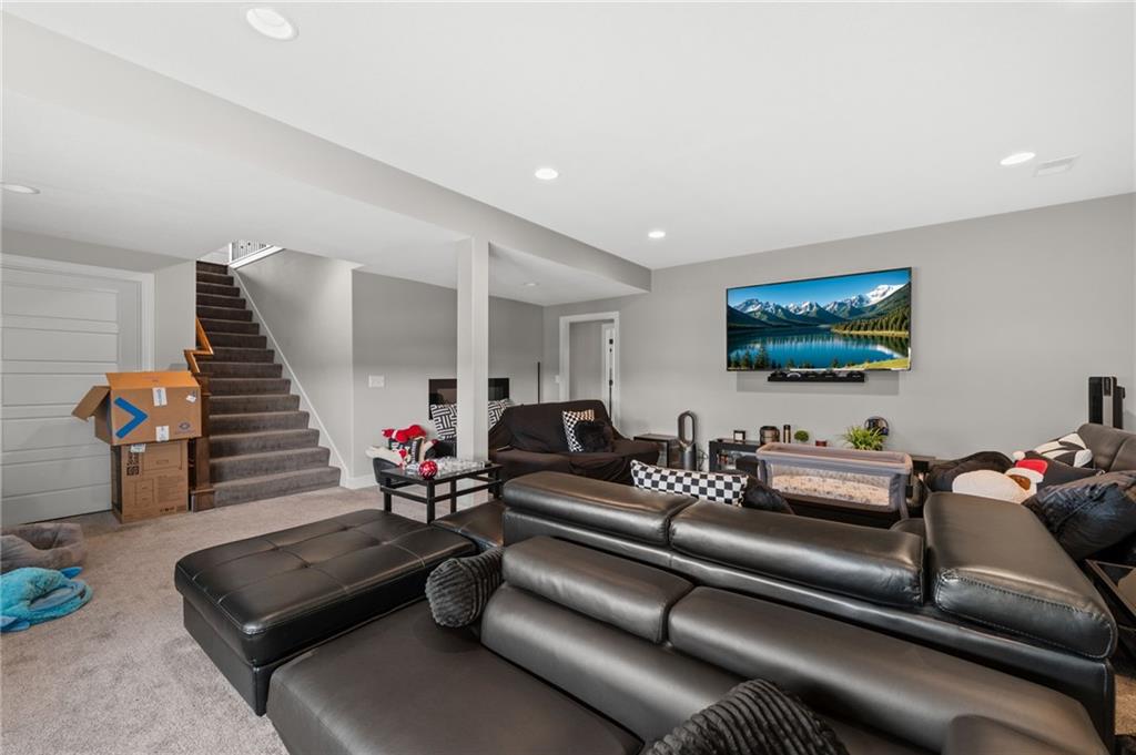 Welcome to this inviting reverse 1.5-story home that offers comfortable living, thoughtful design, and a hard-to-beat location. The main level features an open and functional layout with a spacious kitchen complete with granite countertops, a pantry, and a center island with a sink, making meal prep and entertaining easy. The kitchen flows seamlessly into the breakfast area and great room, where a cozy fireplace is framed by large windows on each side, filling the space with natural light and backyard views. The primary suite provides a relaxing retreat with a bathroom that includes dual sinks, a soaking tub, a separate toilet room, and a large walk-in closet with built-in shelving. Also on the main level is a second bedroom, a full bathroom with shower, and a laundry room with cabinet storage for added convenience. The finished lower level expands the living space with a large family room featuring a big window for natural light, along with third and fourth bedrooms and a full bathroom with a shower over the tub, offering plenty of room for guests, hobbies, or a home office. Step outside to enjoy the deck overlooking a treed, partially fenced backyard, providing a peaceful setting for relaxing or entertaining. Located in a prime area with easy access to downtown and the airport, this home combines space, comfort, and convenience.