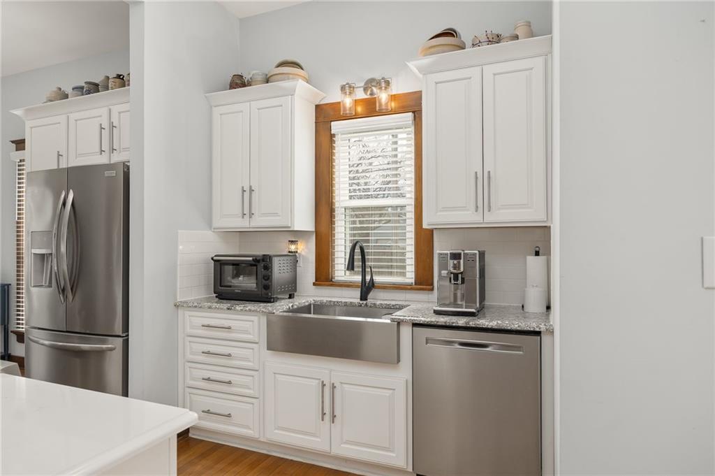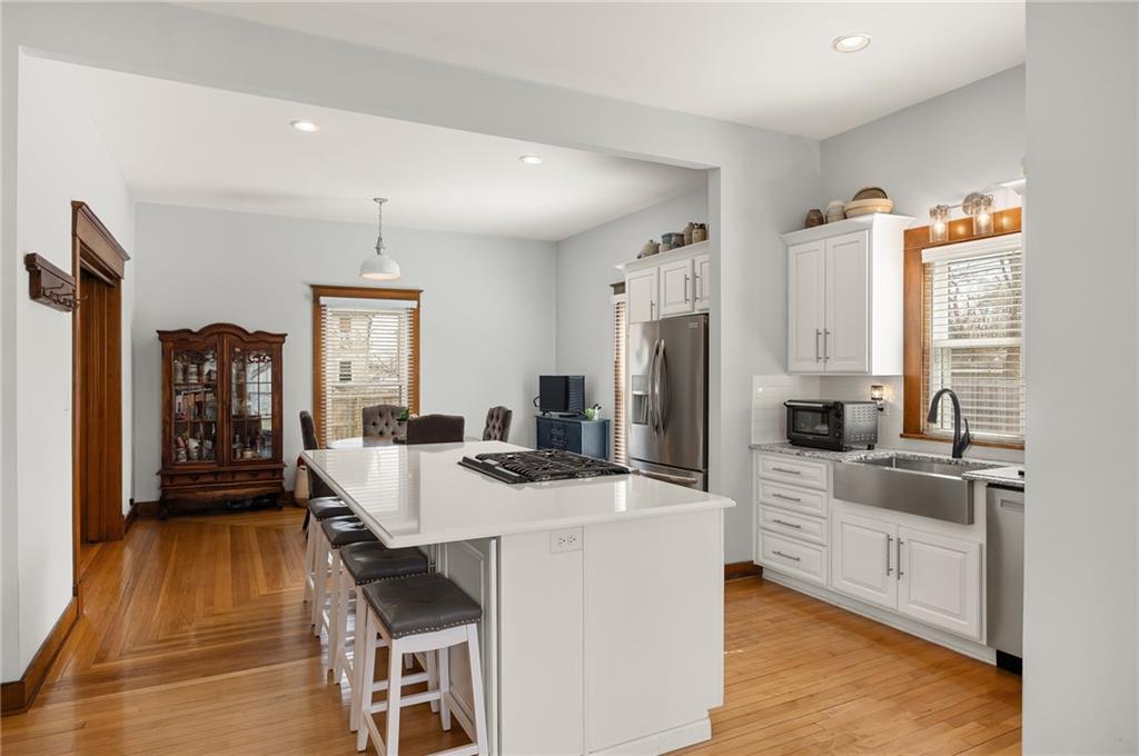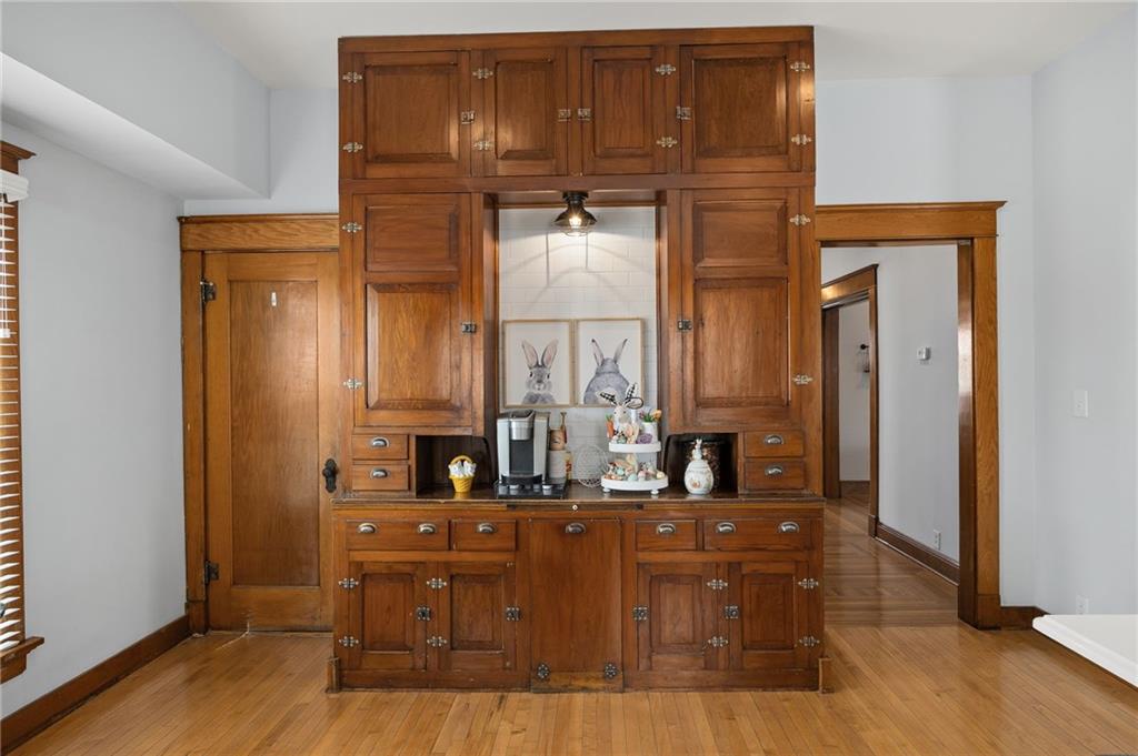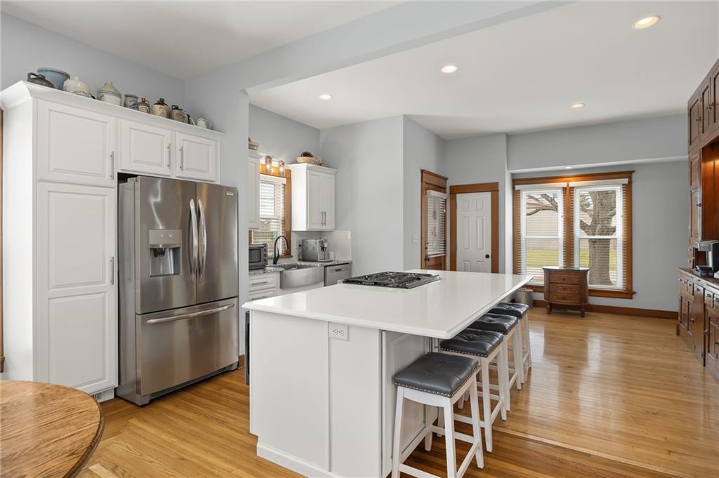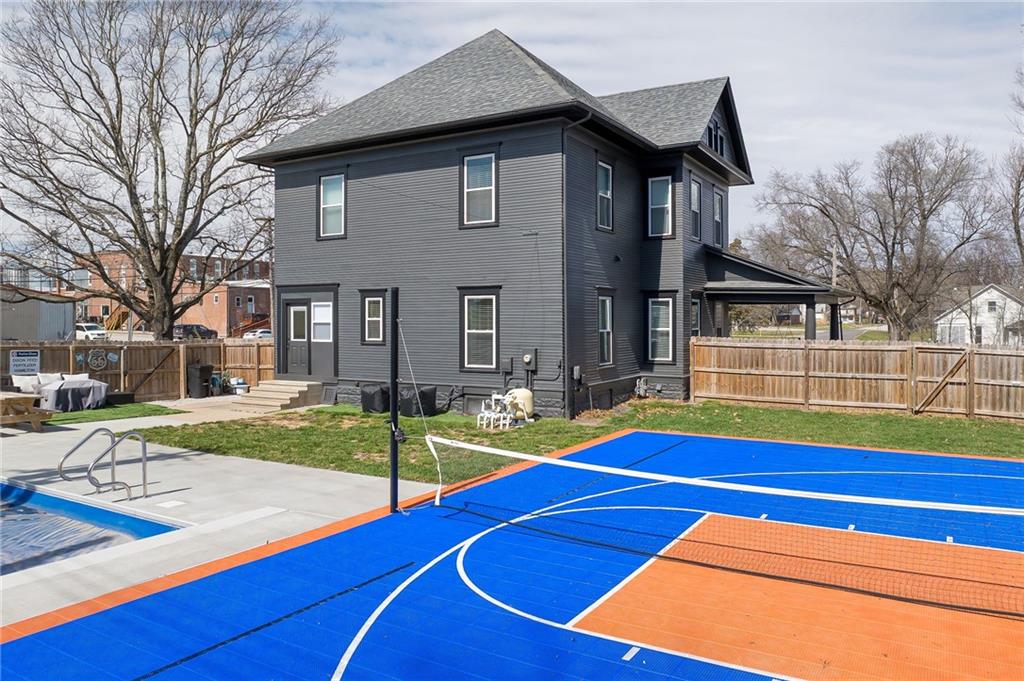 The Graham Agency would like to welcome you to this showpiece home in Hamilton, Missouri. Very rarely do you see a historic gem keep the nostalgia and blend seamlessly with modern convenience. Originally built in 1910 by Mr. and Mrs. Roy White, this home was featured in a local newspaper article and was acclaimed as the county's finest residence. Although the home has changed hands many times in the past century, the timeless elegance of yesterday remains today. The first floor is lined with immaculate preserved woodwork and functional original pocket doors. Throughout, you'll find unique "log-cabin" style hardwood floors, highlighting white oak in the main living areas, while the kitchen showcases maple, perfectly complementing its updated design that includes a sizable island and modern stainless-steel appliances. An original sink in the half bath adds a charming nod to the past. Upstairs, the home boasts three sizeable bedrooms, including a primary bedroom complete with an in-suite bathroom, a walk-in closet, and a conveniently located laundry. Stunning red oak floors grace this level, maintaining the rich character throughout the home. Spanning 2,584 square feet of living space, this home has been remodeled and modernized with new electrical wiring, plumbing, windows, custom closets, and a dual-zone HVAC system. Situated on a corner lot, just two blocks from downtown Hamilton and the Missouri Star Quilt Company headquarters, the property's expansive backyard is a private escape. It features a privacy fence, a versatile court for basketball or pickleball, and a saltwater inground pool that ranges from 3.5 to 6 feet in depth. This captivating home offers the ultimate blend of historical charm and modern functionality, making it the most unique home in Hamilton, MO.
