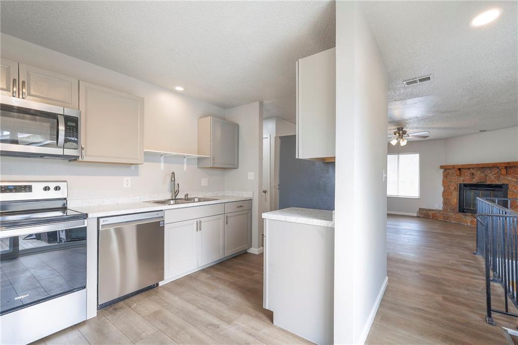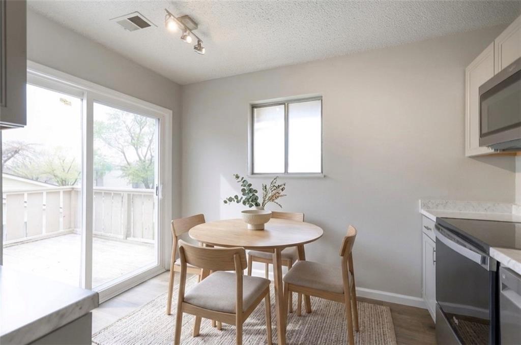 Move-in ready 2 bed, 1 bath, 1 car garage townhouse in Grandview. Well maintained and updated throughout. The living room features a corner wood-burning fireplace, luxury vinyl plank flooring, large windows for natural light, and a ceiling fan. The updated kitchen features new cabinets, Formica countertops, stainless steel appliances and LVP Flooring. Enjoy the eat-in kitchen with lots of natural sunlight and a sliding glass door that opens to the deck—perfect for outdoor relaxation or entertaining. The bathroom features LVP flooring and a shower over the tub. Both bedrooms feature LVP Flooring. Convenient hallway laundry makes everyday living easier. Upgrades include: a new garage door opener and newer kitchen appliances giving you peace of mind. Affordable HOA fees cover building maintenance, lawn maintenance, property insurance, snow removal, and street maintenance. Quick possession available. Schedule your showing today! HOA Will be replacing exterior deck, waiting scheduling.