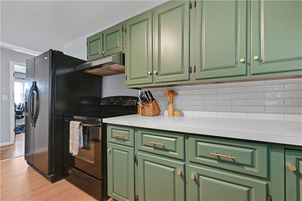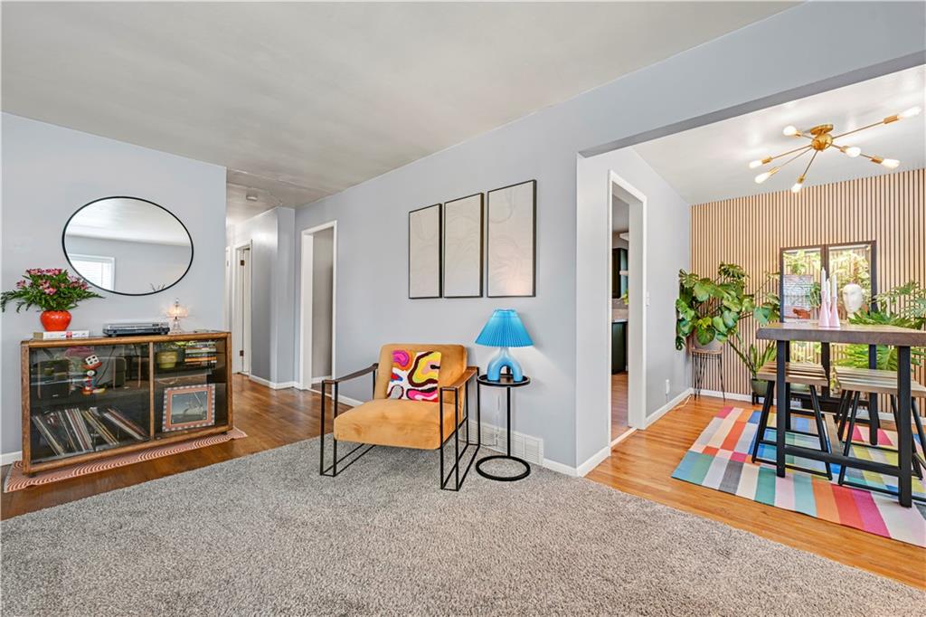 Updated with creative touches throughout, this adorable home has been meticulously maintained and is completely move-in ready. Step into the light-filled Living Room, which flows seamlessly into the Dining Area featuring beautiful new decorative slatted oak wall paneling. The beautifully updated Kitchen offers new flooring, freshly painted cabinets, and new countertops for a crisp, stylish look. Enjoy the ease of true main-level living with the Primary Suite, two additional Bedrooms, and Laundry all on the main floor. Downstairs, the lower level is the perfect spot to kick back, watch the big games, and enjoy a little well-earned R & R. Need a place to break a sweat instead? The spacious exercise area created at the back of the garage has you covered. When it’s time to entertain, the large fenced backyard and patio with a new fire pit are ready for evenings under the stars. And just blocks from new Cooley Park, you’ll love easy access to bike rides, dog walks, and a kids’ play area.
