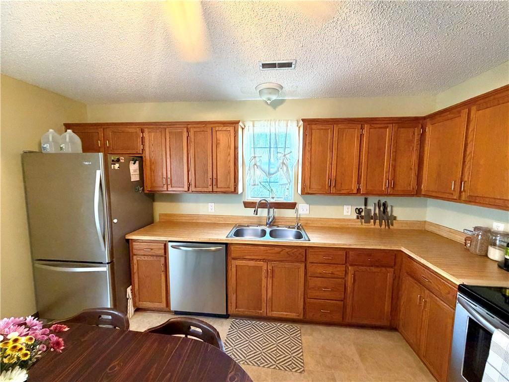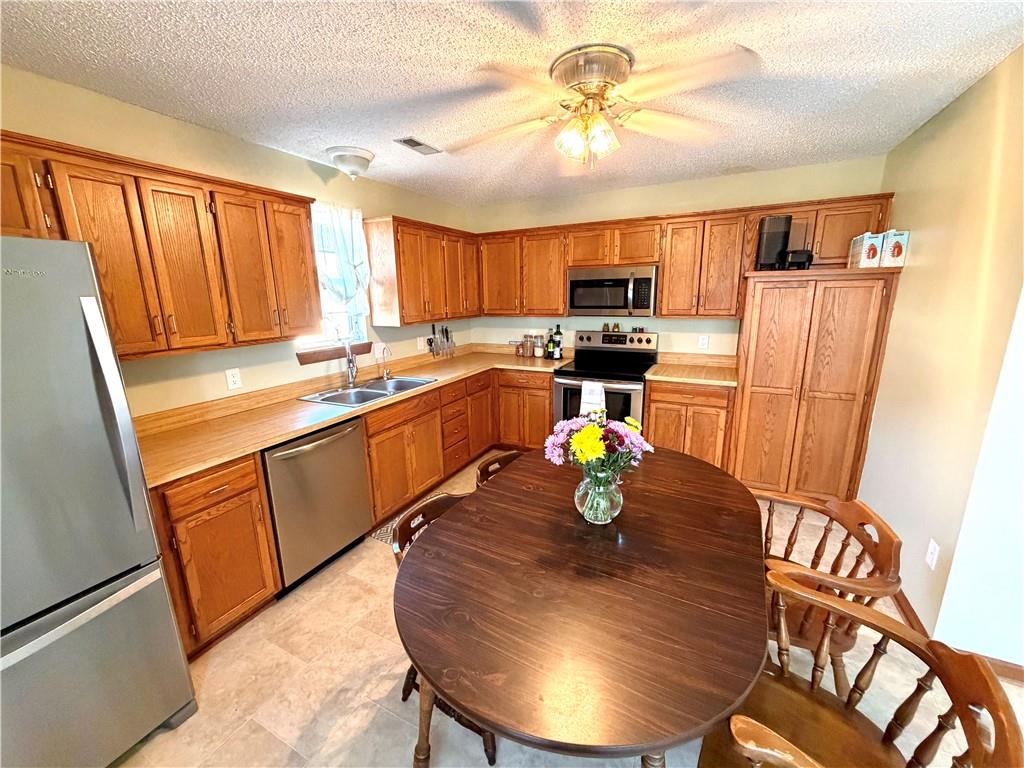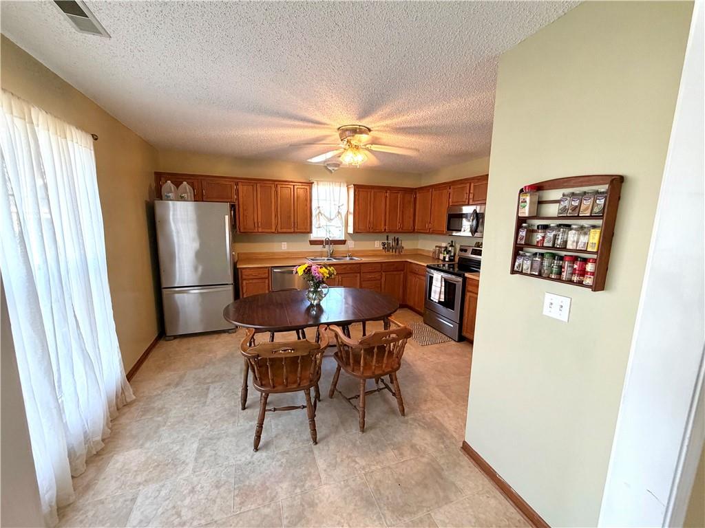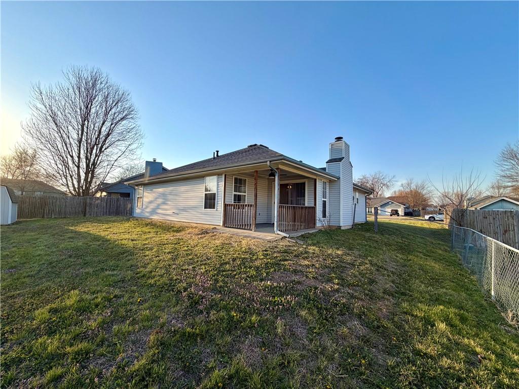 Tucked into a quiet cul-de-sac in the popular FoxRidge Subdivision, this home keeps things simple & functional, with space where it matters most! This slab home with a partially new roof keeps things all on one level & offers solid floors throughout. The extra large kitchen is a true standout with space for a full-size table right in the middle. Plenty of cabinet storage, a pantry, food counter space, and room to move without feeling crowded make this kitchen a natural spot for meals & conversations. The living room centers around a cozy wood burning fireplace, but also offers good natural light through the back doors. It's a comfortable but generously sized room you'll love to hang out in. All 3 bedrooms offer large closets and South or West facing windows. The Master bath has a new toilet, a shower over a tub, and a new sliding barn door to separate it from the spacious bedroom area that has a nice walk in closet. Out back the covered porch gives you a place to sit outside, rain or shine, and unwind overlooking a fully fenced backyard with a storage shed already in place. Practical upgrades include a reverse osmosis system, a water filter, and a tankless water heater. Add in an ample 2 car garage and a location just minutes from town and amenities and you've got a home that is straightforward, updated where it matters, and ready to make your own! *All measurements are approximate. Buyers are recommended and encouraged to take their own measurements during their inspection period*