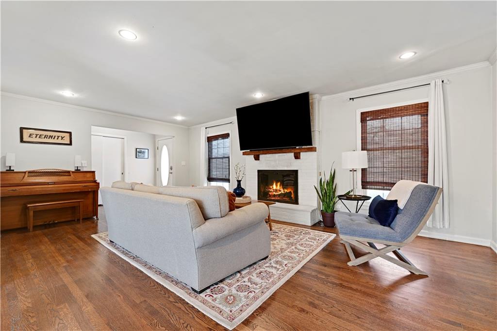 Spacious ranch in the highly sought-after Lea Manor subdivision! This beautifully updated home offers 3 bedrooms and 2.5 baths, featuring hardwood floors throughout. The updated eat-in kitchen opens seamlessly to the family room and dining area, creating a perfect layout for everyday living and entertainment. Highlights include stunning white cabinetry with new doors and hardware, quartz countertops, and stylish tiled backsplash. Enjoy the family room with a cozy fireplace and new woven blinds, along with fresh interior paint throughout the home. An added interior door leads to the unfinished basement, offering great potential for future expansion. The fabulous primary bedroom includes an en suite bath featuring an updated double vanity with quartz countertops. The guest bath also includes a new double vanity with quartz surfaces, plus beautiful new tile in the shower. Two spacious guest bedrooms provide flexibility for visitors, a home office , or additional living space. The large dining room includes a sliding door that opens to a serene backyard filled with mature trees. Step outside to a patio perfect for entertaining family and friends, along with new exterior paint and refreshed landscaping that enhance curb appeal. Extensive property improvements are available in the supplements. Conveniently located near highways, shopping, and dining- this is a home you don't want to miss!!! Back on the market! No fault of seller...