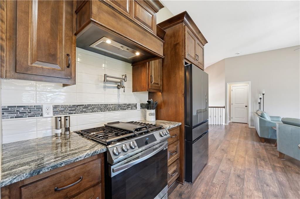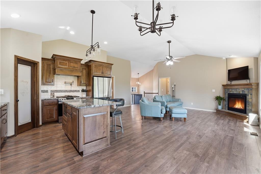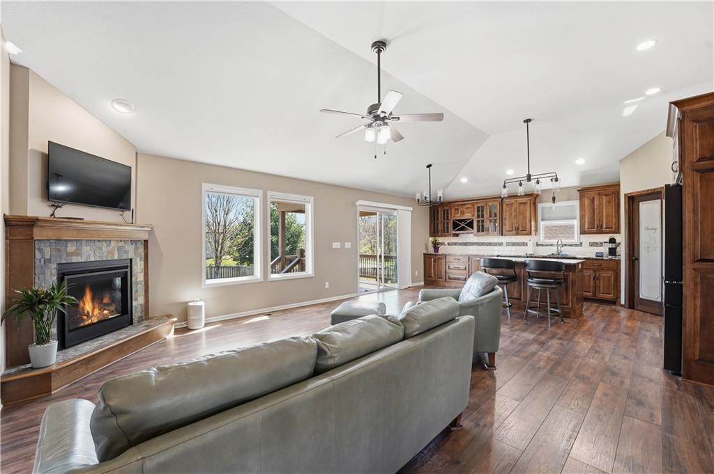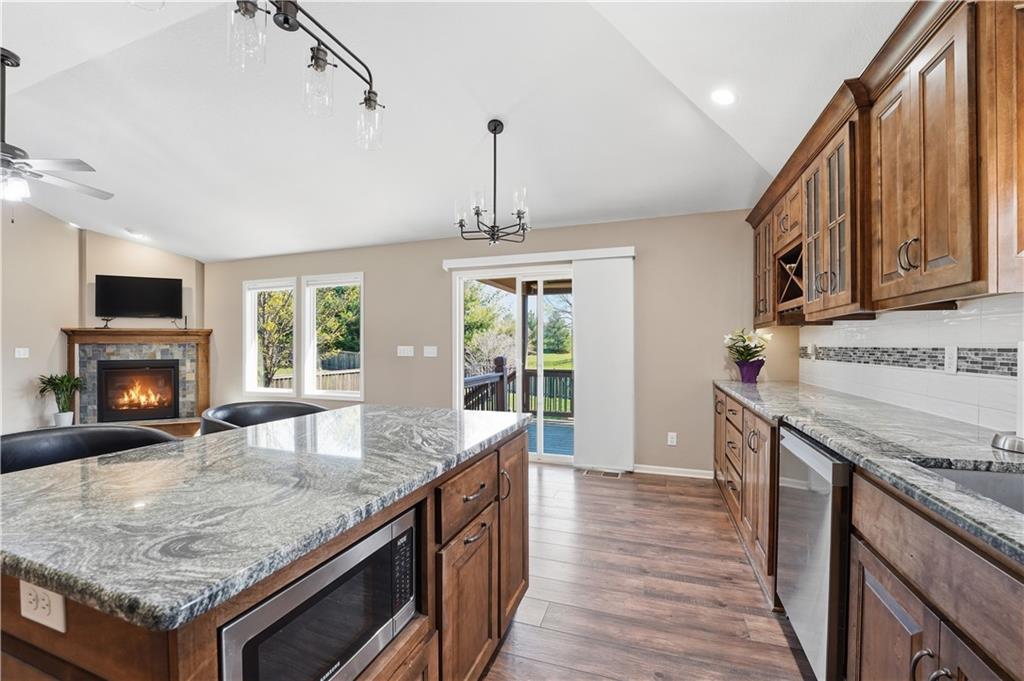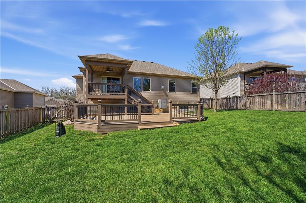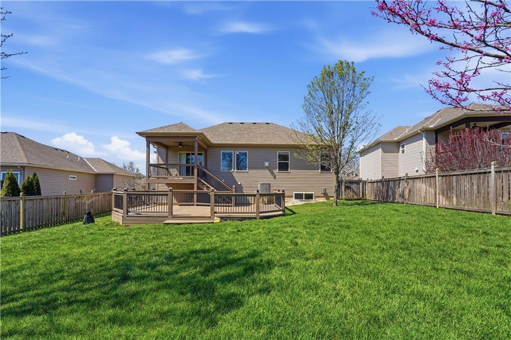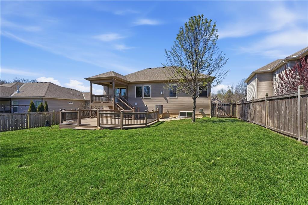 Better Than New in Woodland Creek! Fully rebuilt Monarch floor plan offering the look, feel, and peace of mind of new construction—without the wait. Originally built in 2016 and reconstructed down to the studs in 2023, this home is truly move-in ready with today’s finishes, upgraded features, and a highly desirable layout. Featuring 4 bedrooms, 3 full baths, and a 3-car garage, the open floor plan is designed for both everyday living and entertaining. The kitchen stands out with granite countertops, expanded cabinetry and counter space, under cabinet lighting, gas range with custom hood vent and pot filler, and an oversized walk-in pantry. All appliances stay, including washer and dryer. The primary suite offers a private retreat with a beautifully appointed bath featuring an onyx walk-in shower. Two gas fireplaces create warm, inviting spaces to relax or gather. Step outside to a covered deck with stairs to a lower deck, overlooking a fully fenced yard backing to green space—offering privacy and a peaceful setting. Additional highlights include a Rachio smart irrigation system. Located in Woodland Creek within the highly rated Smithville School District. Homes with this level of finish, setting, and condition rarely come available—schedule your showing today.