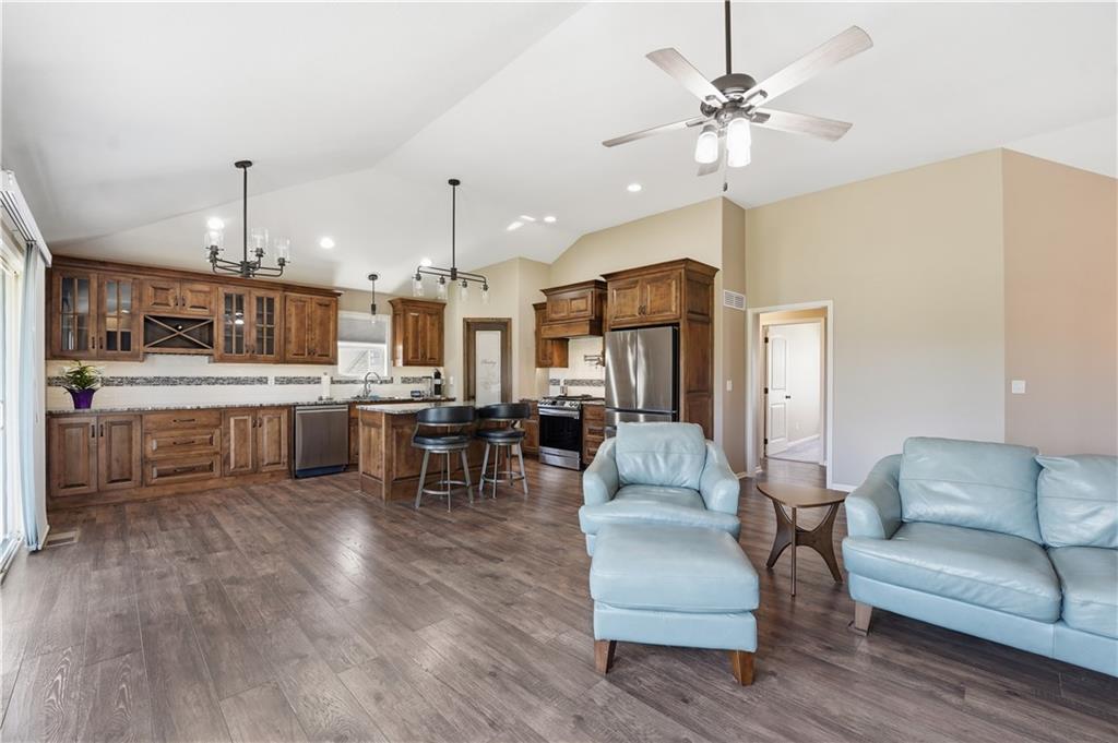 169 North to 435. East (right) on 435 to Woodland Avenue (EXIT 42). North (left) on Woodland Avenue to Woodland Creek Subdivision at 123rd & Woodland Avenue. Right on Wayne Avenue. Home is the 2nd Home on your right.