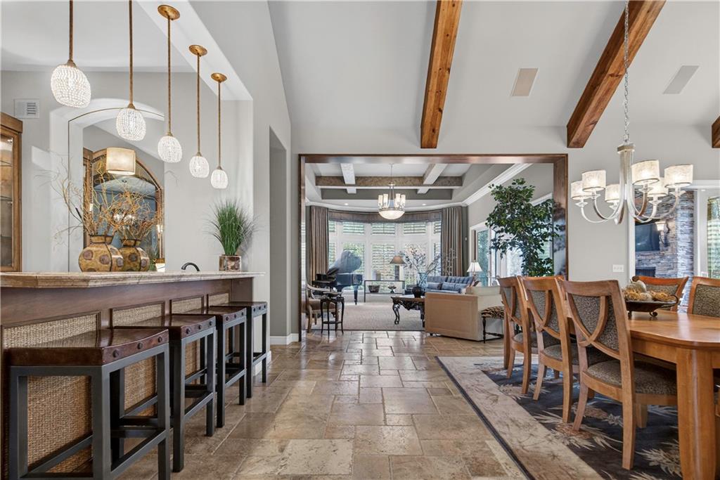 Step into the original & iconic Clydesdale floor plan -The blueprint for one of Johnson County's most sought-after luxury layouts. Built by Willis Custom Homes as the builder's personal residence, this home offers over 5300 sqft of elevated detail & finish, setting the benchmark that dozens of luxury home builders across Johnson County have followed for more than a decade. The craftsmanship, materials, & construction quality simply cannot be replicated anywhere close to this price point today. Rich stained woodwork and natural stone tile floors on main and lower level create a warm, welcoming ambiance from the moment you enter. Designed with both architectural elegance and everyday livability in mind, the main level is an entertainer’s dream, complete with a wet bar where family and friends naturally gather. Great room and kitchen open to a spacious screened outdoor room with stone fireplace, plus mid-level grilling deck overlooks a stamped concrete patio, creating a seamless indoor/outdoor experience. Lower level is designed for unforgettable entertaining, featuring a large sports bar, home theater, stone fireplace and accent walls, plus generous seating for game days or movie nights. Three additional ensuite bedrooms are located downstairs, along with a dedicated workout room and additional storage beneath the suspended garage. Systems in this amazing home match the finishes and include updated Control-4 whole-house audio/video/security, with 15 TVs (included), 3-zone HVAC with humidifiers, whole-house water filtration, plantation shutters throughout, and a lower courtyard stubbed for hot tub. The warmth, craftsmanship & details that make this home truly special simply can't be captured in photos or words, and we welcome you to experience it in person. The Villas of Whitehorse is a maintenance-provided community --lawn care/snow removal included, with access to neighborhood pool, clubhouse, & tennis courts. Sellers are licensed Real Estate Agents in Kansas.