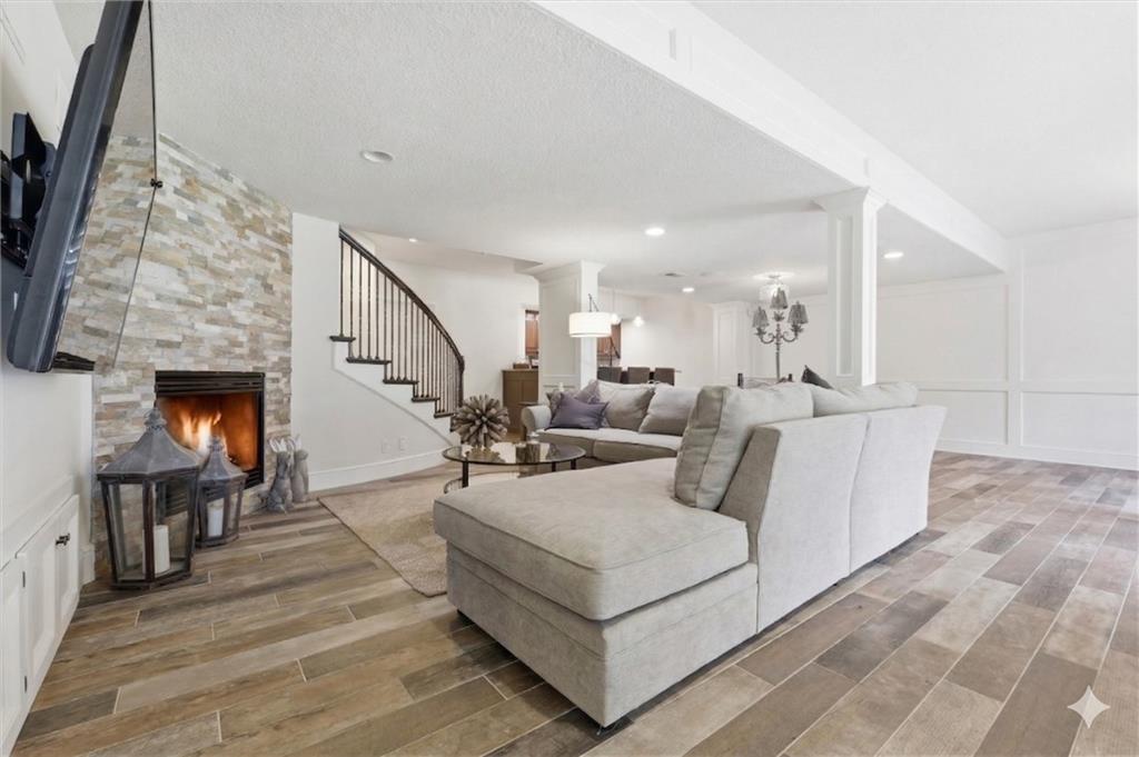 Beautifully reimagined, this 1.5-story masterpiece is tucked away on a quiet cul-de-sac in the highly desirable Lionsgate community. Meticulously redesigned with uncompromising quality, this home greets you with today’s sophisticated color palette, stylish wallpaper and modern design features from the moment you enter. The gourmet kitchen is a chef’s dream, thoughtfully remodeled with high-end cabinetry, premium SS appl., a farm sink and a stunning quartz tops and center island w/ dramatic waterfall edge. This culinary delight opens to the cozy hrth/brkfst rm adorned with exposed wood trusses, custom built ins and a warm fireplace-perfect for relaxed evenings. Retreat to a luxurious remodeled primary suite featuring new quartz countertops, custom cabinets, large seamless walk-in shower, a free-standing tub, fresh paint, designer tile, and high-end fixtures plus custom closet organizing system. Upstairs, three spacious bedrooms- each with its own bath and large closets- provide ample space and privacy while a versatile loft area is ideal for gaming, a home office or movie nights. The sensational walk-out lower level is an entertainer's paradise, equipped with a brand-new handsome bar, large recreation room, a 5th bedroom and bath along with a flexible exercise/billiards area and plenty of storage. Step outside, enjoy the Trex deck overlooking the serene lot with pristine landscaping and a covered lower level patio. The area is perfect for entertaining or simply unwinding. This is a rare opportunity to own a turnkey luxury home in a premier location. This home exudes quality and timeless elegance with only the finest materials used. Enjoy walking to the clubhouse with resort style amenities, including a competition-style pool (with swim team) tennis crts, sand volleyball, basketball, walking trails, play area and lake. The community feeds to award-winning Lakewood elem. and middle schools. Don't miss this rare opportunity to own a truly turnkey, move in ready home.