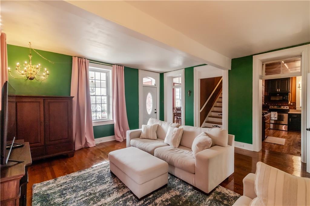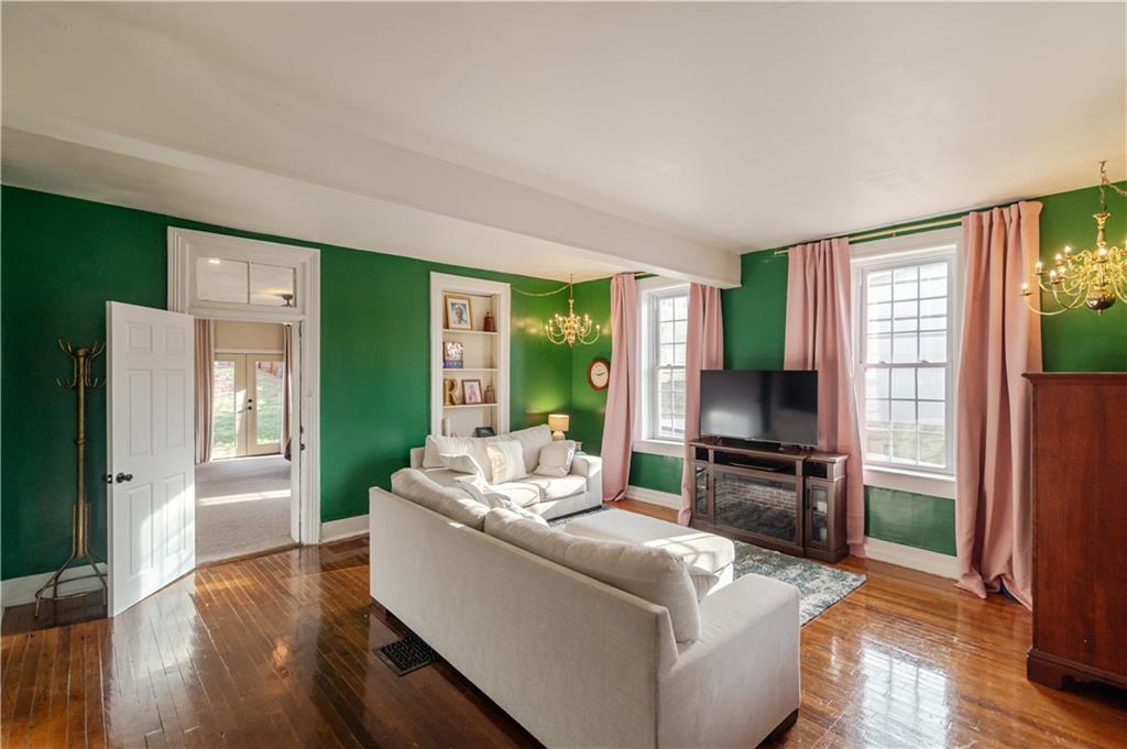 Step into timeless charm with this absolutely stunning 1860s two story historic home which blends timeless character with modern comfort and sits less than a mile from Benedictine College, and only three blocks from downtown. The 4 bedroom, 2.5 bath home has been lovingly updated and maintained both inside and out and is truly move in ready. The brick exterior has been recently tuck pointed along with freshly painted shutters, fascia, soffits, and porch. The property includes and thoughtful landscaping including native grasses, wildflowers, a beautiful privacy fence, off street parking, a garden shed and a 220V outlet for EV charging. Inside, the newly remodeled main floor master suite features a tiled, low rise walk in shower, dedicated mini split, and high quality wool carpet installed less than a year ago while the rest of the home offers hardwood or tile flooring throughout. The spacious kitchen provides abundant counter and cabinet space and the newly added laundry room and half bath are on the main floor as well. Upstairs are three additional bedrooms, a full bath and access to a charming second story balcony. This home offers historic charm, thoughtful updates, and unbeatable location in one complete package!