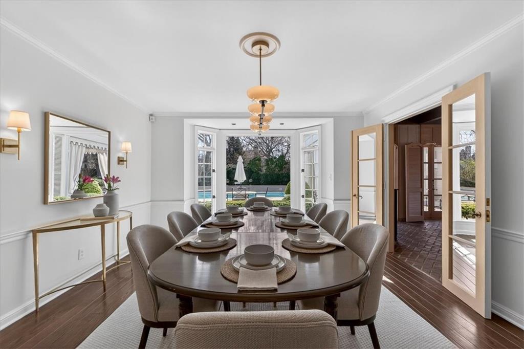 Set on one of Mission Hills’ most prestigious streets, this five-bedroom residence, in move-in condition, is a rare blend of architectural grace and timeless design. Meticulously maintained and thoughtfully updated, every space reflects quiet luxury and enduring craftsmanship. Generous rooms flow effortlessly, connected by both front and back staircases and an elevator that carries you from the main level to the upper floor with ease. French doors open to an extraordinary outdoor setting—lush English gardens, a saltwater pool, and a brick patio and loggia that invite gatherings large or small. Recent updates include fresh painting and new lighting throughout the home. Every detail has been curated with a designer's eye—balanced, elegant, and inviting by the renowned architect, Morton Payne, and by the current owners. This is a home where architecture and landscape come together beautifully, offering a sense of calm and sophistication in every room.