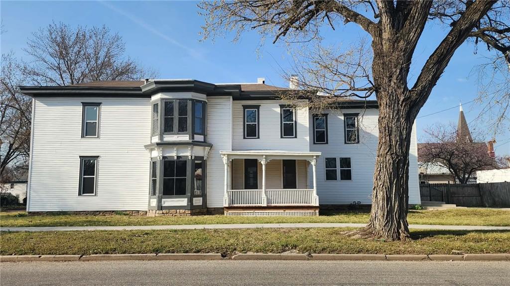 Step into everyday vacation living in this stunning turn-of-the-century retreat! Rich with character, the home features exquisite handcrafted woodwork, leaded windows, and beautiful original fireplaces that anchor the main living spaces. Thoughtfully preserved charm blends seamlessly with modern updates for comfort and efficiency. Enjoy flexible living and entertaining with spacious, connected rooms, a cozy reading porch, and a chef’s kitchen complete with butcher block countertops, stainless steel appliances, and stylish finishes. Upstairs offers generous bedrooms with updated features while maintaining original detail, along with spa-inspired bathrooms designed for relaxation. Located in Fort Scott’s historic district, this property offers endless possibilities—whether as a personal residence, Airbnb, or unique business space.