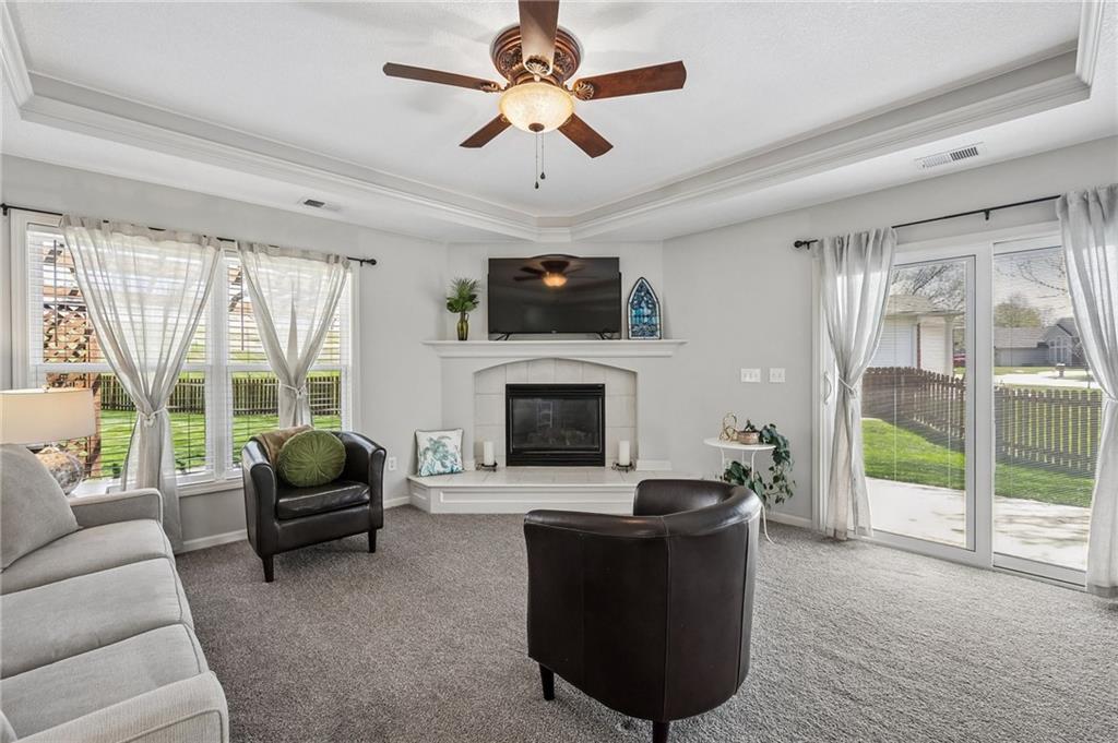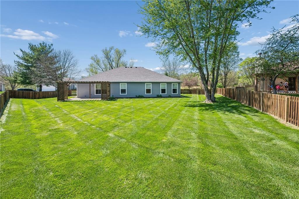 Main Level Living with open and light floorplan!! Beautiful, large fenced lot located in peaceful Timber Park! This impeccably maintained true Ranch offers 4 spacious bedrooms, welcoming living area with formal dining room as well as a casual dining area. This pristine kitchen offers lots of countertop space, nice size pantry and under counter lighting. Warm & inviting living area with gas fireplace. Spacious primary bedroom with walk-in closet. 3 add'l bedrooms with 2 full bathrooms. The large 4th bedroom could also serve as an office with double door entry. Extra depth in garage provides more storage along with attic space. Brand new impact resistant roof and new gutters! HVAC less than 2 yrs old! Located in convenient Platte City location with easy access to shopping, airport and highways!! Make this fantastic home yours!