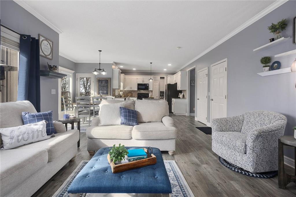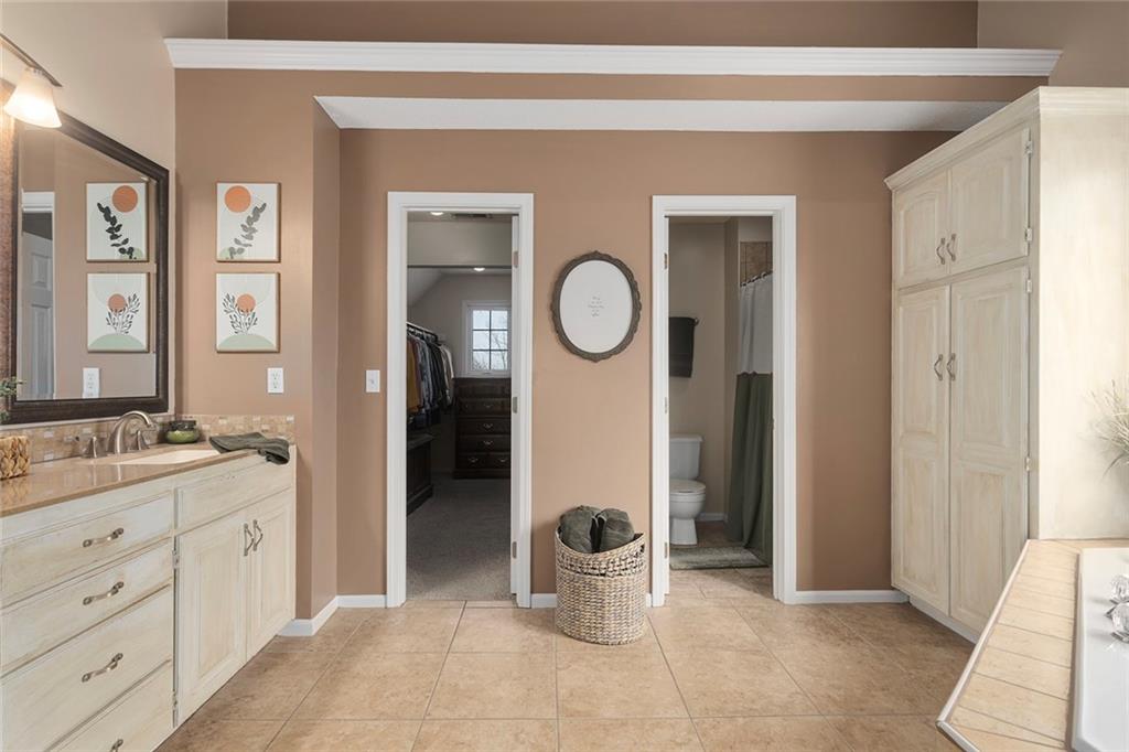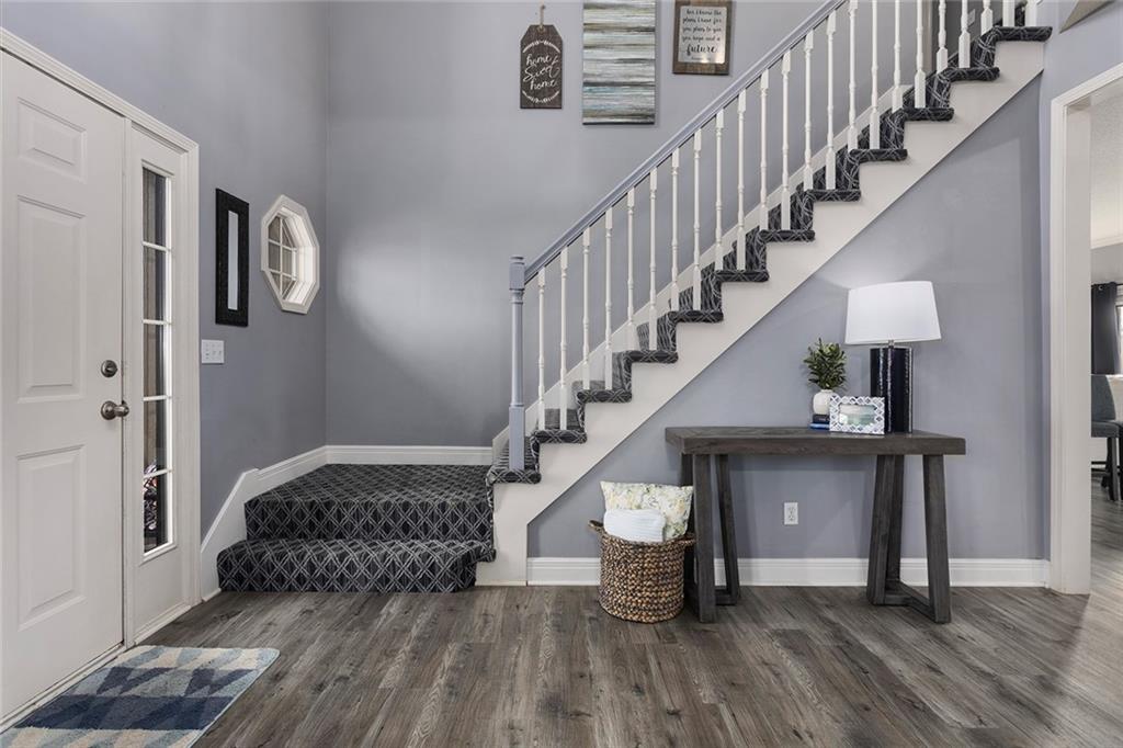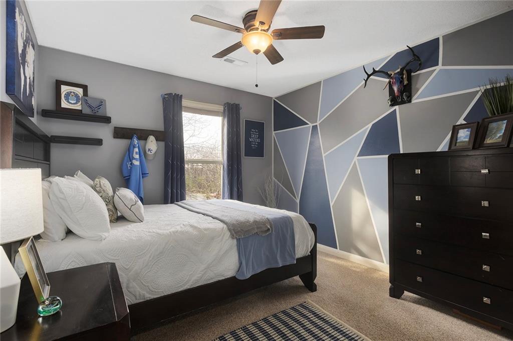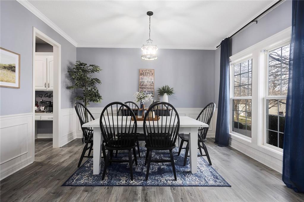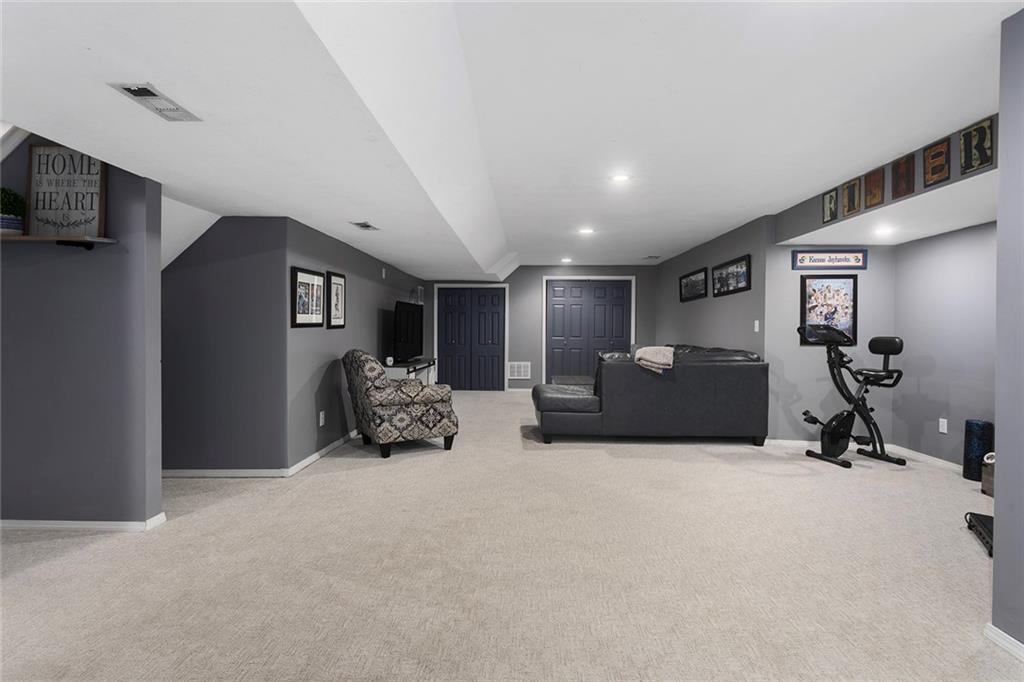 Welcome to this exceptional Shawnee residence with heated saltwater pool. The home is ideally situated on a cul-de-sac. Inside, the home showcases soaring ceilings, quality craftsmanship, and a thoughtfully designed floor plan suited for everyday living and hosting. Luxury vinyl plank flooring extends throughout the main level. A formal dining room and light-filled living room which features a striking masonry fireplace. The kitchen is well-appointed with a large island, granite countertops, and a pantry, offering both functionality and style. The half bath provides secondary access to the back deck and pool. The spacious primary suite serves as a private retreat, complete with a bath featuring a soaking tub, walk-in shower, dual vanities, and an expansive walk-in closet with access to additional out of sight storage areas. The second level also includes generously sized secondary bedrooms which include ample closet spaces; two with walk-in closets and one with dual closets. A full bath and conveniently located laundry room complete the upper level. The finished lower level is designed for versatility and entertainment, offering a large recreation area, additional space for a game table and another area for fitness equipment or future bar. A fifth non-conforming bedroom with a private full bath completes the lower level. The backyard is a private retreat, surrounded by a fully fenced yard. Outdoor living is enhanced by a wood deck, an expansive paver patio, and a dedicated firepit area; perfect for both relaxation and entertaining. Recent updates include newer fence, pool liner (1 year old), HVAC system and water heater (2 years old). Ideally located near three De Soto schools and scenic walking trails, this home combines comfort, style, and convenience in a highly desirable setting.