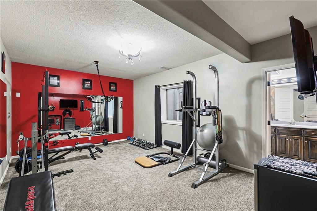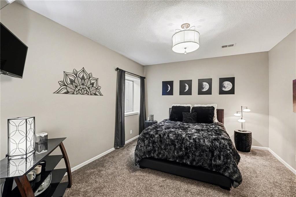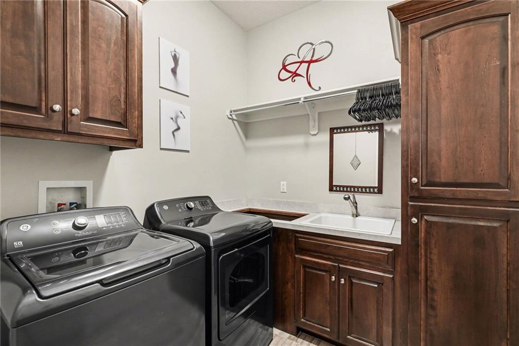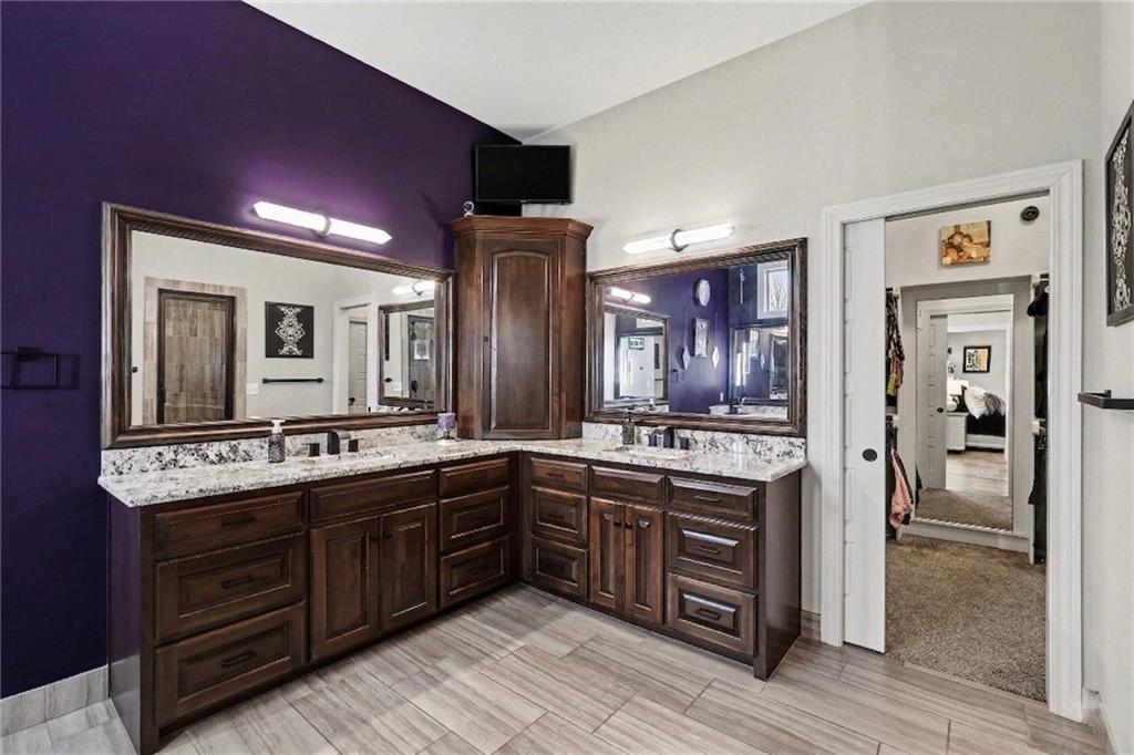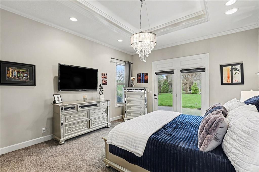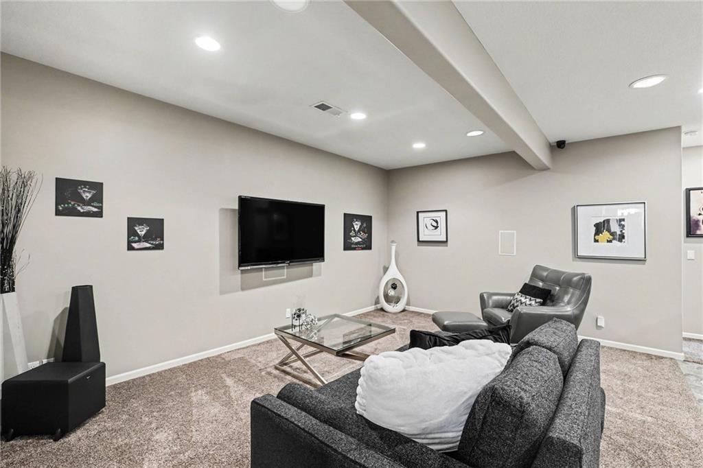 Custom built, upgraded and exceptionally well maintained by the original owner, this Reverse 1.5 Story is impressive. Every inch and finish was thoughtfully curated for the owners enjoyment, comfort and security. Fresh exterior paint, brand new roof, backlit address, up lit landscaping and a water feature provide the ultimate curb appeal. Drawn inside by the vaulted ceilings, stacked stone fireplace highlighted by a 110 piece blown glass fixture by Seth Parks and dimmed for entertaining in the open concept main level. Smart sound system throughout main, lower and exterior living spaces. Upgraded kitchen with thoughtfully planned pantry space, opens to a vaulted dining space. Beautiful landscaping and lighting pulls the outdoors in from every vantage point. Accessible from both the dining area and the primary suite, enjoy the backyard from the covered or uncovered stamped concrete patio space and yard large enough to easily add a pool! Finished lower level entertainment space offers recreation room with wet-bar, 2 additional bedrooms with ensuite bathrooms. Plus plenty of storage in 2 fully insulated unfinished spaces- including a storm shelter! Extra tall and deep finished garage will impress the large truck owners. Be sure to see the full list of upgrades because there are too many to list here!
