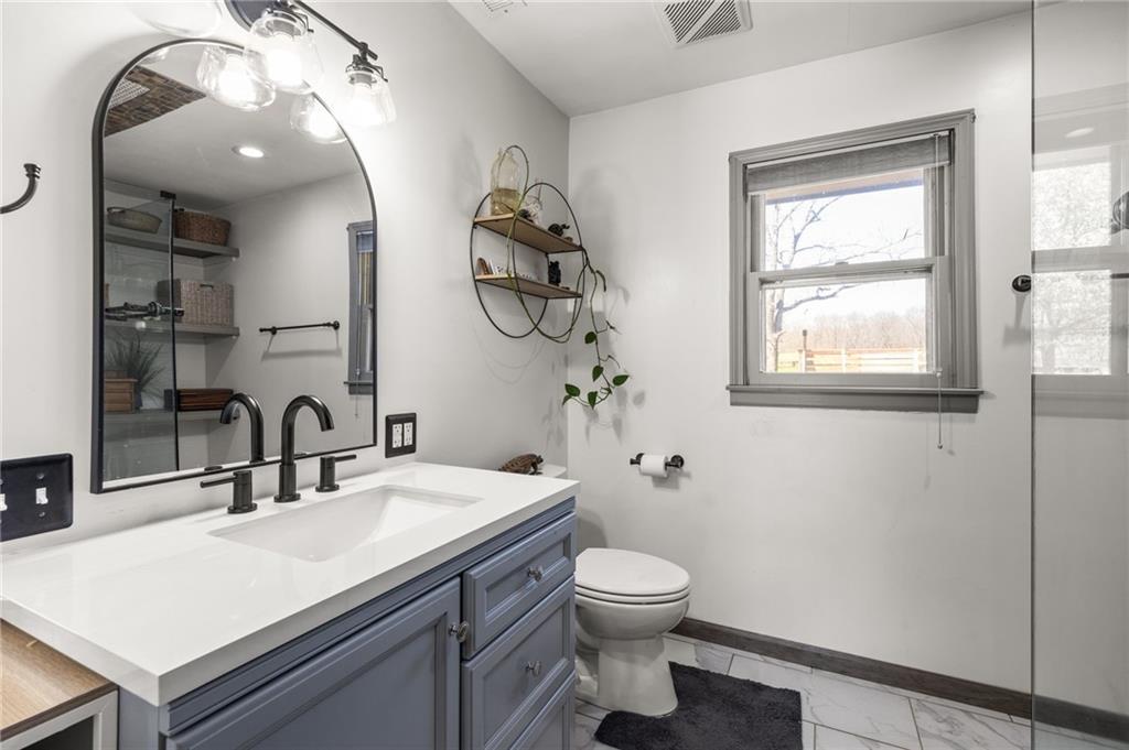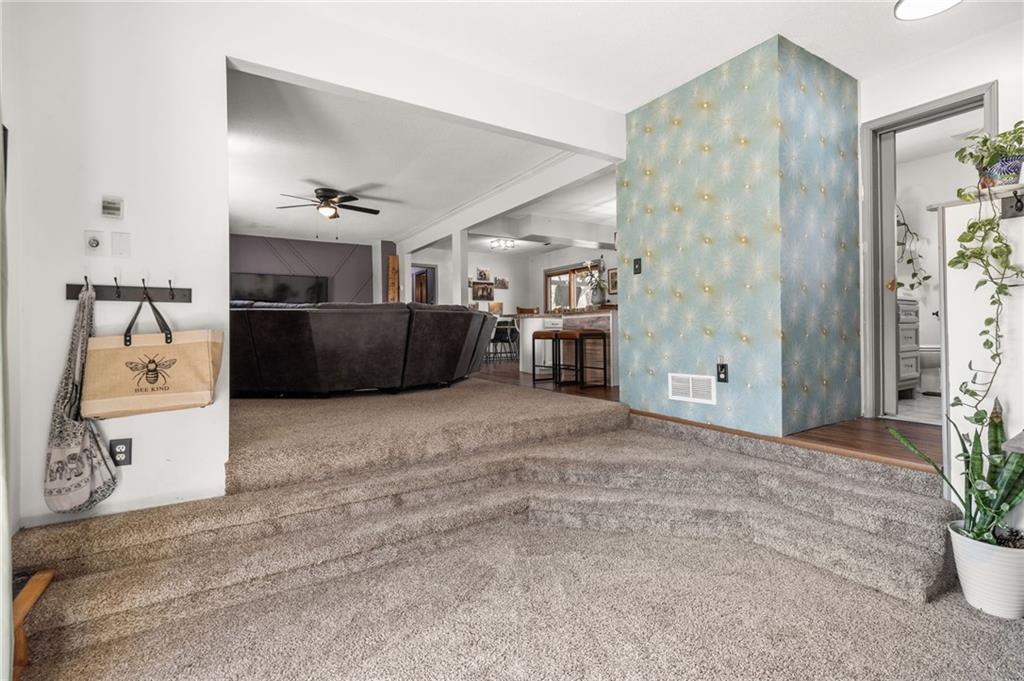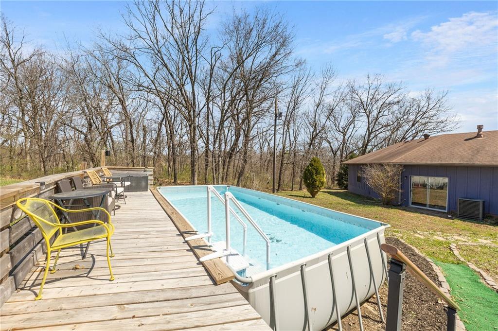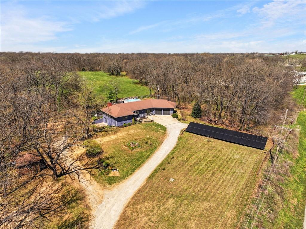 Solar panels, hot tub, pool, space, three wooded acres, and upgrades—this property brings it all. With $80,000 in paid-off solar panels, a hot tub, an above-ground pool with a custom-built deck, and an incredible setting surrounded by mature trees, open fields, and beautifully maintained landscaping, this is the kind of property that makes an impression from the very start. Located just 7 miles north of Warrensburg, it offers the perfect blend of convenience and peaceful country escape. Inside, the home is spacious, updated, and built for both everyday living and entertaining, featuring 4 large bedrooms, an upstairs and downstairs master, 3 full bathrooms, brand-new top-of-the-line appliances, a media room with a giant projector screen, and a full bar downstairs. The oversized garage has room for 2 vehicles plus tools, freezers, and extra storage, and there is an additional shed on the property as well. The paid-off solar system adds tremendous long-term value, with energy savings that can make utility bills nearly nonexistent during sunny months and dramatically lower in the winter. Whether you are looking for a private retreat, a home built for hosting, or a beautifully updated property with standout amenities close to town and Whiteman Air Force Base, this one checks every box.