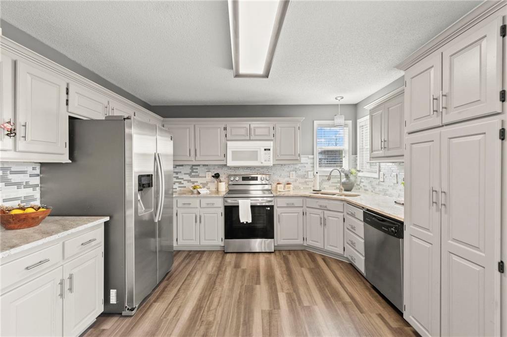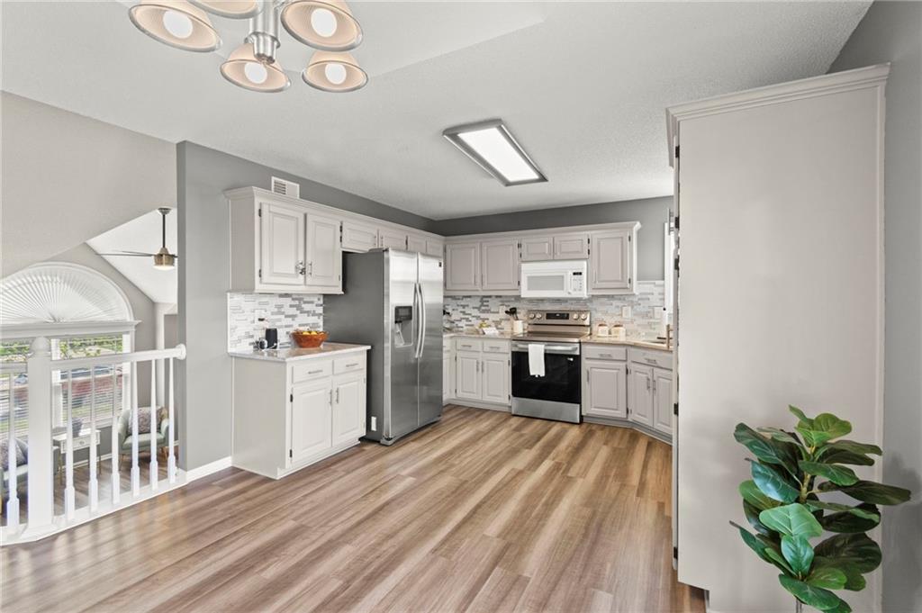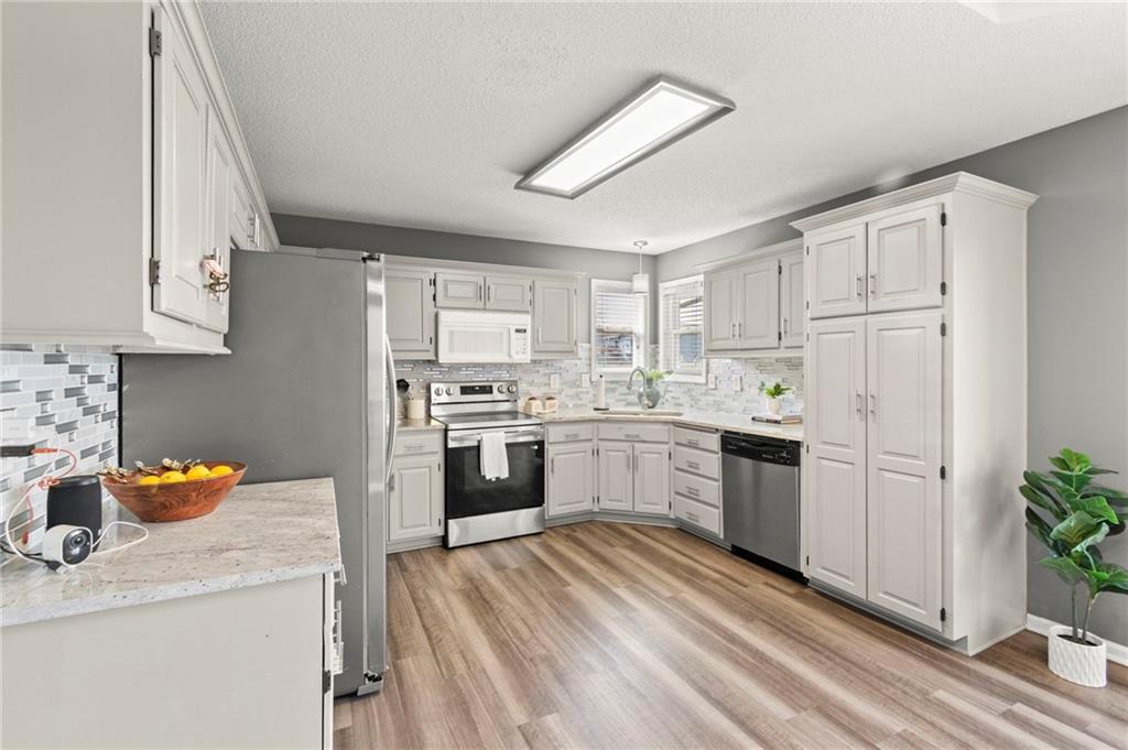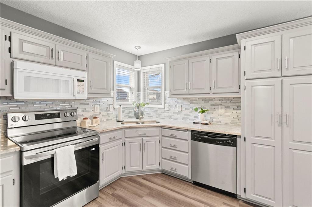 Welcome to a wonderful 3 bedroom/2 Bath home in the desired Kellybrook neighborhood in the Liberty School district. Lots of convenient road access to schools and shopping. This house is just what you've been waiting for! Enter into a large, serene living room with a gas fireplace, vaulted ceiling and expansive windows to let in lots of light! Up a few stairs, the kitchen is conveniently laid out for easy use. Granite counters and a gorgeous tile backsplash are enhanced by stainless appliances. There's lots of room in this Open plan for a dining area where you'll overlook a welcoming deck and large yard. You'll appreciate the nice sized bedrooms with ample closets. The Spacious Primary bedroom has not one but TWO walk in closets . The spa-like primary bath includes a whirlpool and walk in shower, with illumination from a skylight in the vaulted ceiling above. Downstairs is a large finished daylight basement rec room for movies, extra playroom, or large private office space. This home is well cared for, bright and clean. Come see this right away and make it yours!