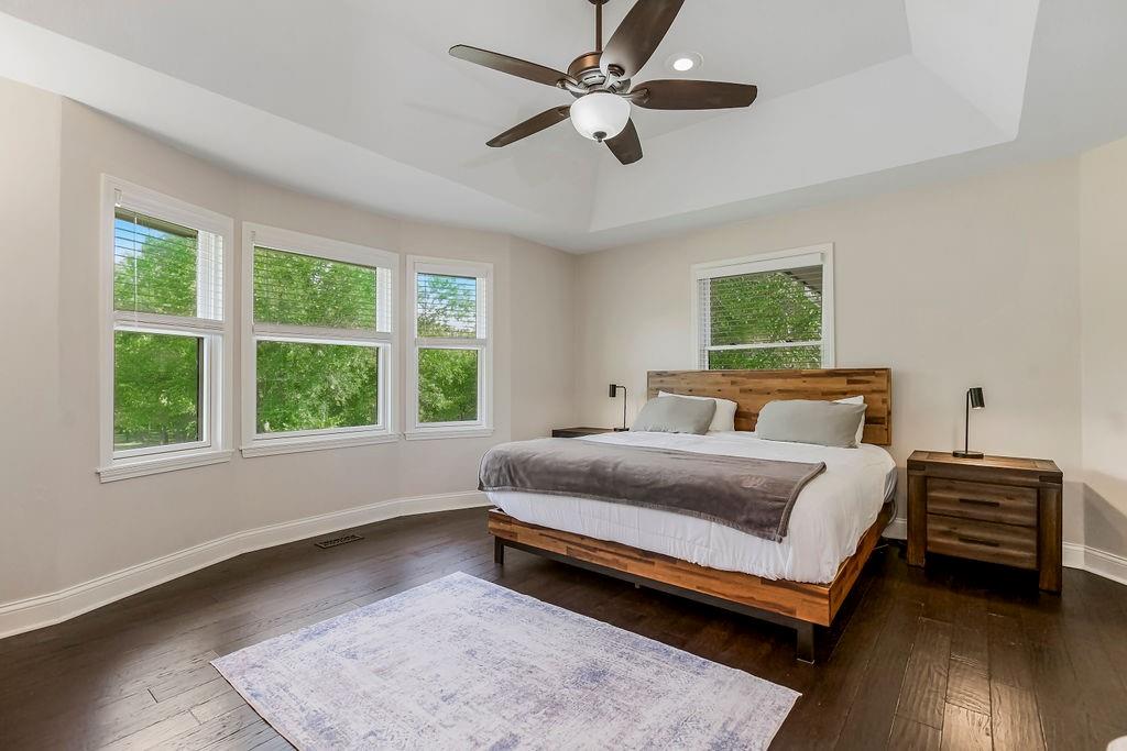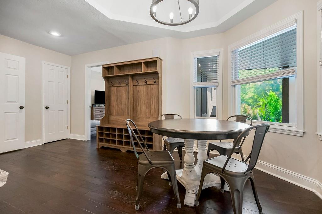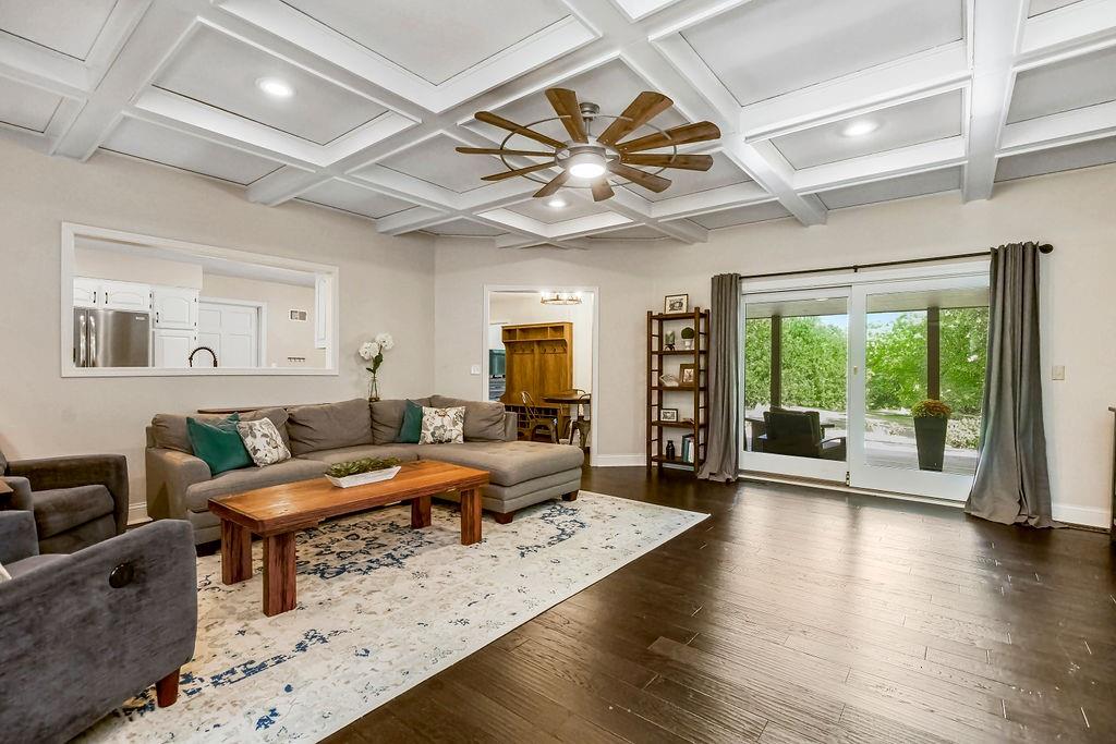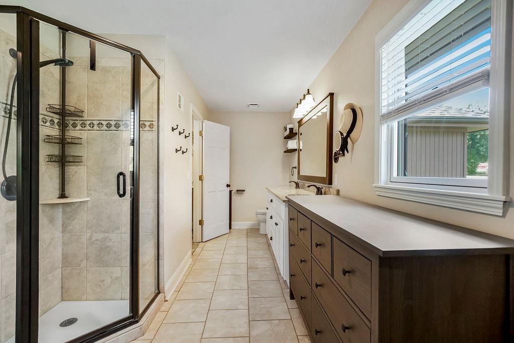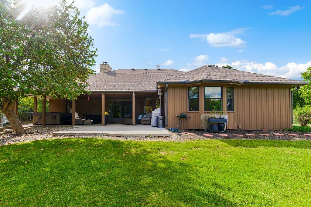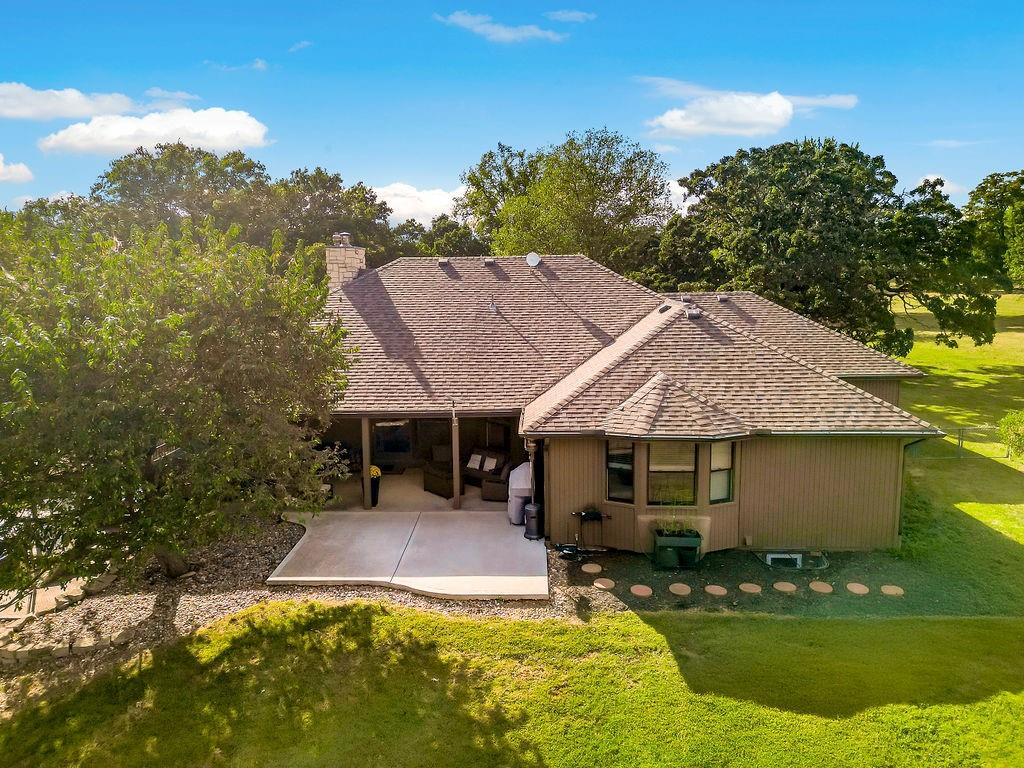 With over $50,000 in updates over the past several years and priced $15,000 UNDER a November 2025 appraisal value, this exquisitely renovated true ranch home set on 17.35 acres is a DREAM! Located within the Basehor-Linwood School District, this property is a nature lover's paradise, featuring abundant wildlife, two stocked ponds, scenic trails, and a creek with a bridge. The main level showcases a formal dining room, a spacious living room with beamed ceilings and a wood-burning fireplace, an updated kitchen with quartz countertops, new backsplash, updated flooring, new stainless-steel appliances, a pantry, and a cozy breakfast nook. Adjacent to the kitchen is the master suite with a walk-in closet, dual vanities, shower, and laundry room. For added privacy, there are two additional bedrooms and a full updated bath on the opposite side of the house. The lower level includes a family room, 4th bedroom, and half bath, with access to the garage/workshop, making it ideal for potential separate living quarters. The lower tandem garage workshop is equipped with AC and can accommodate 3 cars (additional 2-car garage on main level), with ample storage space available. The fenced backyard features a generously sized covered patio perfect for entertaining, relaxing in the hot tub, and enjoying the company of hummingbirds. With custom finishes throughout and recent updates that include a freshly painted interior, scraped ceilings, flooring, kitchen renovations, fixtures, and electrical/lighting, this home offers an absolutely tranquil setting just outside the city limits, where you can revel in the soothing sounds of nature.