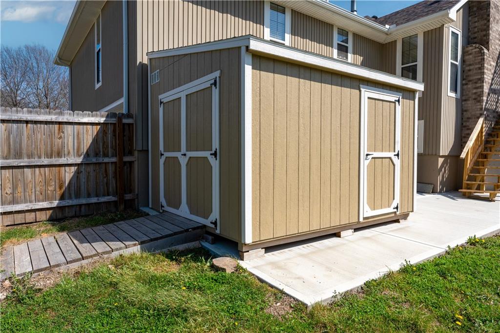 Welcome home! This beautiful home is ready for new memories! Situated on a large corner lot of a cul de sac, within a few minutes of shopping, restaurants, and 50 Hwy for commuting to Whiteman AFB or Kansas City. New wood-look LVP (sellers installed in 2025) runs throughout the main level spaces. The spacious Living Room showcases tall ceilings and a gas fireplace perfect for those chilly winter days. Off the living room is the Kitchen, Breakfast nook and a full Dining Room with lots of natural sunlight. The inviting Kitchen has ample wood cabinets with pantry, solid surface countertops, tile backsplash and stainless-steel appliances that all stay. The main level includes 2 secondary Bedrooms, hallway Bathroom with Laundry, the Primary Bedroom with 2 closets and en-suite Bathroom. Downstairs you will find the Family Room which could be used as second Primary Bedroom with a spacious walk-in closet, an en-suite Bathroom with double sinks and beautifully tiled shower with two shower heads. Head out the patio doors to enjoy time outdoors in the large, privacy fenced back yard (swing set can stay). There is an additional non-conforming room in the basement that would be perfect for an office, 5th bedroom, playroom, etc. You will appreciate the additional storage space in the garage as well as the EV charging station, built-in shelves and workspace. The back deck has new stairs leading down to the newly poured patio extension and storage shed, all added by sellers in 2024. Roof, gutters, and downspouts are just 2 years old! Don't miss out on this wonderful opportunity!
