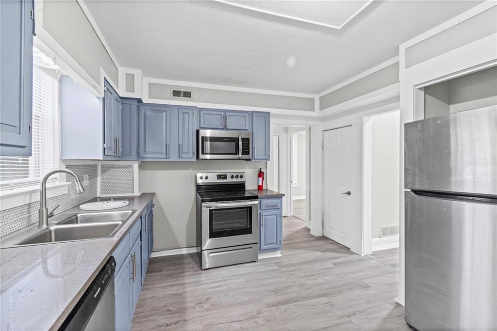 Step into the character and warmth of this 1920 single-family home, thoughtfully updated for modern living while keeping its timeless appeal. A welcoming front porch sets the tone, leading you into spacious rooms with vinyl plank flooring and plenty of natural light. This two-story home offers 4 bedrooms and 1 beautifully remodeled bathroom, with a layout that gives you options. The entire second floor can function as a generous primary suite or be divided into two bedrooms. One of the upstairs rooms is perfectly positioned to become a dream walk-in closet or even an additional bathroom—an excellent opportunity to add value and convenience. The remodeled kitchen blends classic charm with modern function, offering updated finishes and an efficient layout. Outside, the large backyard provides a quiet retreat away from the busy street out front, with alley access that adds flexibility for parking, storage, or future projects. With spacious rooms, thoughtful updates, and a yard that feels like its own private escape, this home delivers historic character with modern comfort and room to grow.