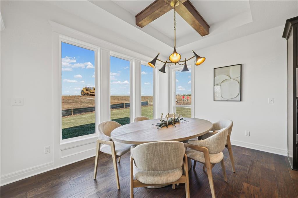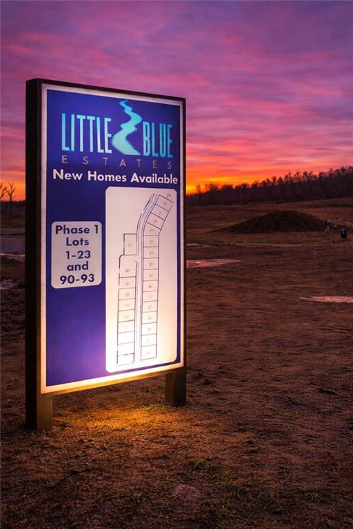 Welcome to this custom home in Little Blue Estates, where modern design meets everyday function. Set on a spacious corner lot, it offers strong curb appeal with board-and-batten siding, stone accents, a 3-car side-entry garage, and a covered front entry. The zero-entry design makes this true ranch easily accessible, with no steps on the main level and wide doorways. Inside, the open layout is filled with natural light, soaring ceilings, hardwood floors, and a floor-to-ceiling stone fireplace. The living area flows into a well-designed kitchen with a large island, custom cabinetry, designer lighting, and a walk-in pantry. The dining area is surrounded by windows with peaceful views. The layout provides privacy, with a spacious primary suite featuring a walk-in tiled shower, dual vanities, and a large walk-in closet with custom shelving. The lower level includes a large rec room with a wet bar, plus two additional bedrooms, a full bath, an office, and a play space under the stairs with a Dutch door. Back upstairs, enjoy the covered patio for added entertaining space. Conveniently located near highways, shopping, and dining, this home combines comfort, style, and accessibility. Community pool construction will begin in phase 3. Walking distance to Little Blue Elementary, with Independence taxes and utilities. Over $48K in upgrades, with the option to reproduce the plan at a lower cost based on finishes. A must see!