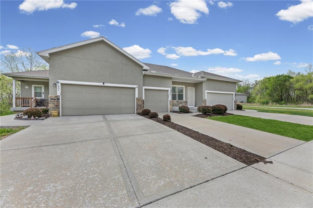 Rarely available 2-bedroom, 2.5-bath townhome in Villas of Stonebridge! This spacious, move-in-ready home offers the perfect blend of privacy, style, and true low-maintenance living. Inside, you’ll find granite countertops, stainless steel appliances, and large, bright windows that fill the home with natural light. The property has been well maintained and features brand new carpet and fresh paint throughout, ready for you to move right in! Step outside to your patio backing to greenspace and a wooded area, creating a peaceful setting ideal for morning coffee or evening relaxation. The HOA covers lawn care, landscaping, snow removal, exterior maintenance, and more, allowing for easy, worry-free living. Conveniently located with quick highway access and just minutes from The Legends, Kansas Speedway, and the future home of the Chiefs Stadium! Schedule your private showing today! (Investment opportunity available with the two neighboring units also for sale. Please reach out for additional details on a package purchase if interested)