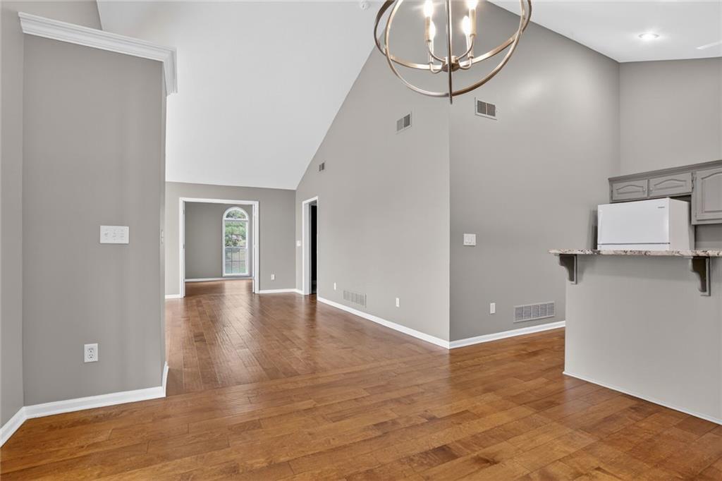 Welcome to this elegant and well-maintained villa offering the ease of true one-level living in a beautifully landscaped, maintenance-provided community. This updated unit features gorgeous hardwood floors throughout and brand new interior paint, creating a fresh and inviting feel from the moment you step inside. The expansive primary suite includes an en suite bathroom with a walk-in shower, lovely vanity, and a spacious walk-in closet. A second bedroom—located just off the main living area—offers flexibility as a guest room, office, or hobby space. The vaulted living room is warm and inviting with its cozy fireplace and large windows that bring in abundant natural light. The kitchen provides excellent cabinet storage, generous counter space, and a convenient eat-in bar area perfect for everyday dining. Adjacent to the kitchen, the fully enclosed sunroom offers a peaceful spot for morning coffee, reading, or simply relaxing indoors with outdoor views. Additional features include a large 2-car garage and a brand-new roof for added peace of mind. Brand new roof and concrete in front of the garage door and porch. The community offers attractive amenities such as a clubhouse and pool, all set within a lovely, tree-filled neighborhood maintained for you. Enjoy comfort, convenience, and low-maintenance living in this welcoming villa—ready for you to move right in.