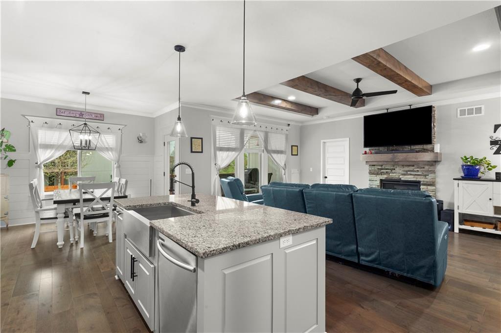 Located in the sought-after Woodbury subdivision, this beautifully maintained reverse 1.5-story home offers 4 bedrooms and 3.5 bathrooms in a thoughtfully designed layout. Only 6 years old, this home combines modern style with everyday comfort. The spacious kitchen features white painted cabinets, an oversized island perfect for gathering and entertaining. The open floor plan flows seamlessly into the main living areas, creating an inviting space for family and guests alike. Keep the lawn lush and green with help from the irrigation system. This home also offers a wood private fenced backyard. This move-in-ready home offers the perfect blend of style, function, and neighborhood amenities in one of Grain Valley's most popular communities.