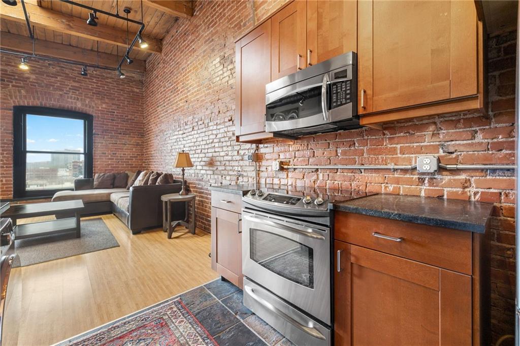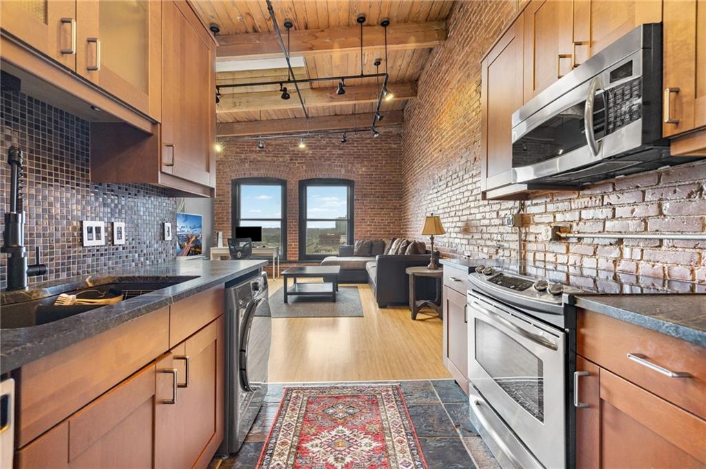 Top-floor living hits different—and this one proves it. Perched on the 5th floor at Atriums East at Soho West, this one-bedroom condo brings together the kind of character and convenience that’s hard to find in one place. Vaulted ceilings, exposed brick walls, and a skylight give the space a loft-style feel with natural light that changes throughout the day. It’s the kind of place that feels good the second you walk in. Being on the top floor means more than just better views. It means privacy, quiet, and no footsteps overhead. Just your space, your pace. Inside, the clean, modern finishes keep things simple and sharp. The washer/dryer combo makes everyday living easy, and you’ve also got access to additional laundry in the building when needed. But what really sets this apart is the lifestyle. You’re not just buying a condo—you’re plugged into two buildings worth of amenities. Enjoy the pool and secured access at Atriums East, plus full access to the Atriums at Soho West across the street, where you’ll find a second gym, hot tub, sauna, and the West Building Social Room for hosting or hanging out. Your dedicated storage unit is there as well. And the location? About as convenient as it gets. Quick highway access puts you minutes from just about anywhere in the city, whether you're heading to work, meeting friends, or getting out of town. If you’re looking for a low-maintenance space with character, light, and a little bit of edge—this is it.