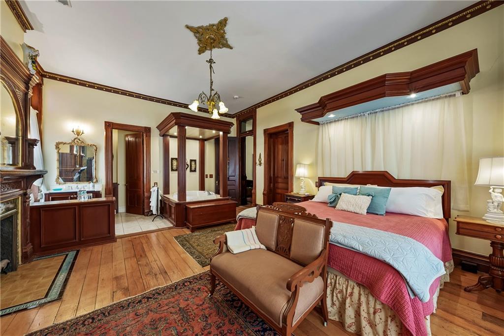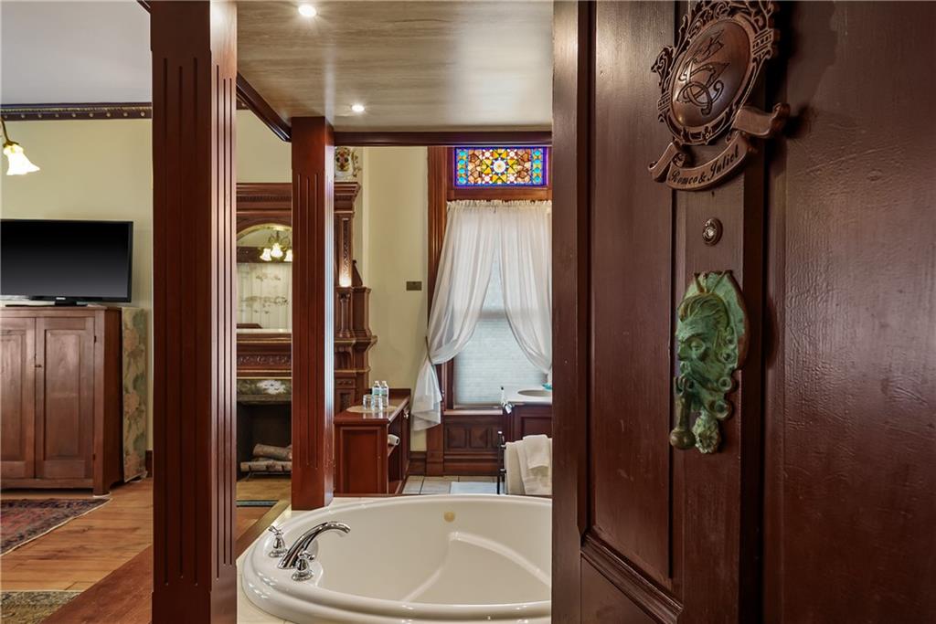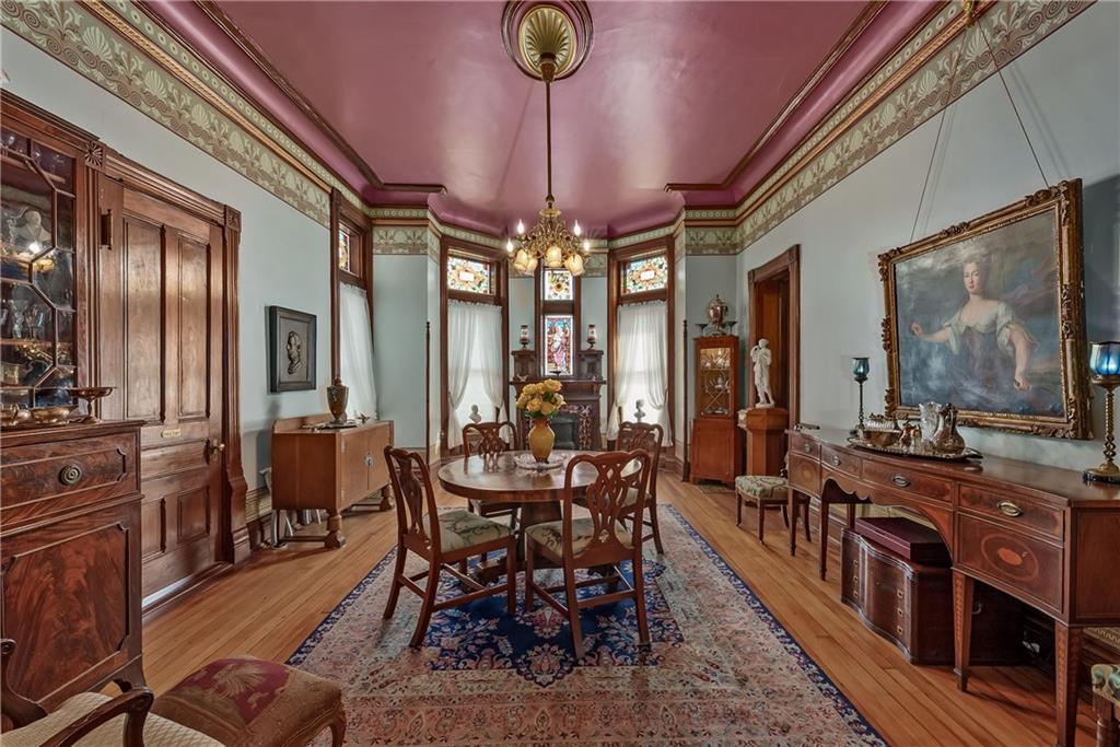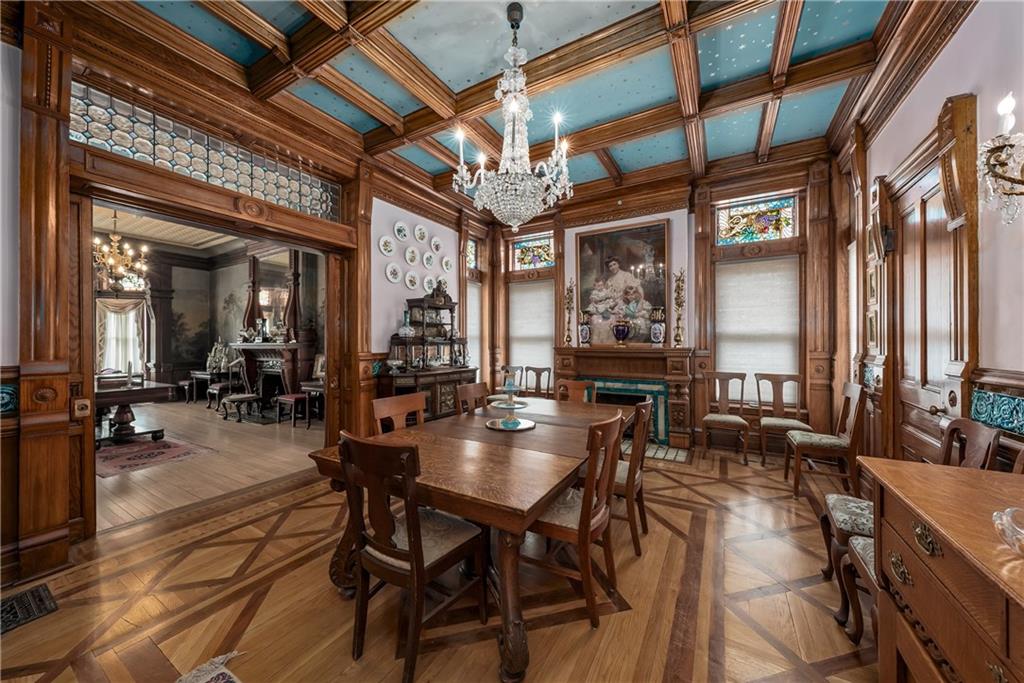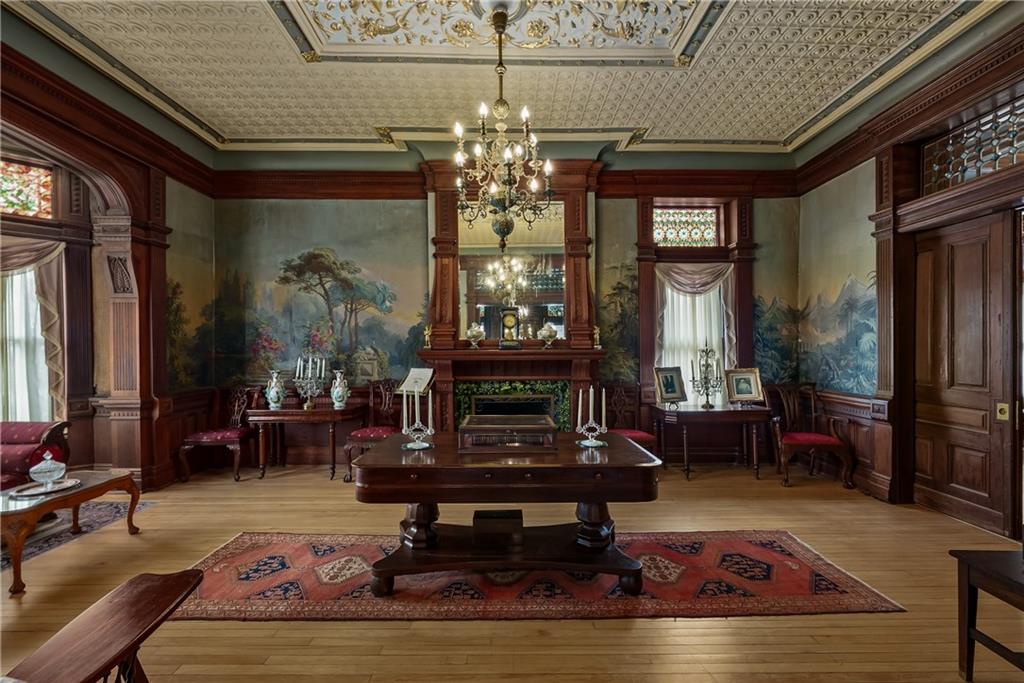 Shakespeare Chateau Inn & Gardens is one of the Midwest’s most architecturally significant historic residences, and one of the most remarkable properties in the state of Missouri. Built in 1885 and set on just under two acres along the city's historic Hall Street corridor once known as Millionaires' Row, this Chateauesque estate has changed hands only a handful of times in over 140 years and remains extraordinarily intact. The craftsmanship encountered inside is simply without peer: 47 original stained-glass windows, hand-carved woodwork in cherry, mahogany, oak, and walnut, ornate plaster ceilings, encaustic tile flooring, period chandeliers, and fireplaces throughout. Among the home's most internationally significant features is the rare Zuber panoramic wallpaper "Eldorado," installed circa 1920. A museum-quality French scenic wallpaper whose counterparts are held in settings including the White House and Monticello. The property unfolds as a true multi-building estate: a grand main residence, a carriage house with three income-producing apartments, and an additional structure at 819 Hall Street offering a compelling canvas for residential expansion or a future destination use, subject to zoning and approvals. This price conveys the residential real estate only and does not include business operations, furnishings, or personal property, which are addressed separately. For the full commercial value & estate experience, including video, floor plans, 3D tour, historic documentation, and information on both residential and commercial opportunities, visit ShakespeareOnHall.com