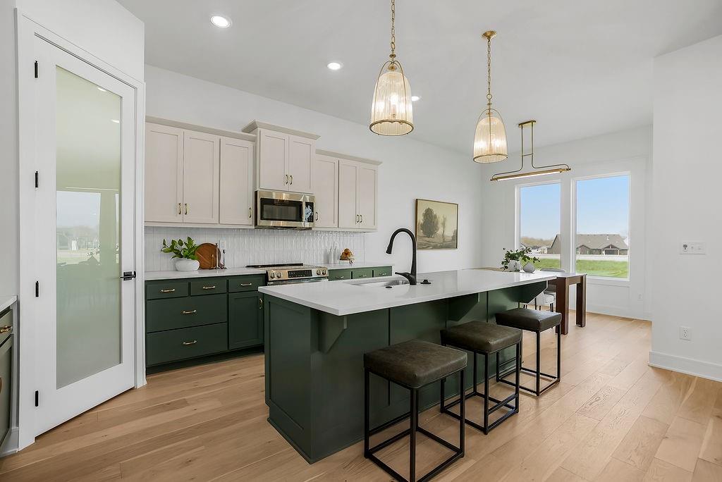 Welcome to Hoot Owl Acres—featuring this stunning model home with a durable, weather-resistant Tesla solar roof! The “Toby” plan by B & B Custom Homes offers a spacious open-concept layout designed for both everyday living and entertaining. The kitchen is a standout feature, complete with a large island, generous cabinetry, and a walk-in pantry. The main level features a split-bedroom design, providing a private primary suite with a beautifully tiled custom shower, private water closet, and convenient access from the walk-in closet directly to the laundry room. From there, you’ll flow seamlessly into the mudroom and garage entry—because real life needs smart design. Step outside to the covered patio—perfect for morning coffee or winding down in the evening. The finished lower level expands your living space with two additional bedrooms, a full bathroom, a spacious rec room, and a versatile bonus area ideal for a home gym, office, or game room. With thoughtful design, quality craftsmanship, and incredible value, this home truly delivers space where it matters most.