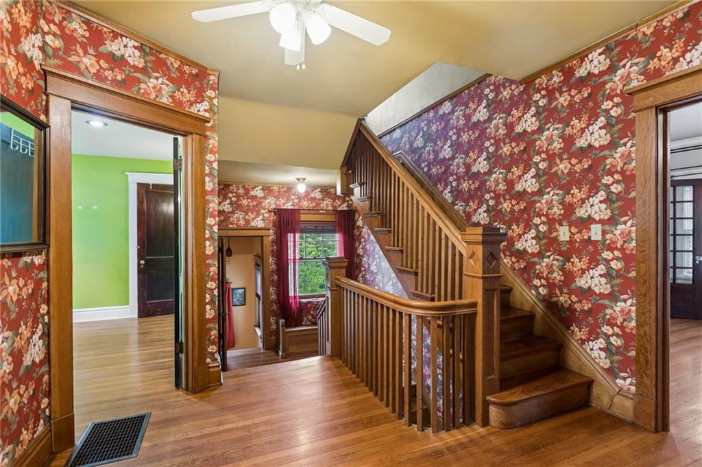 Own a piece of Kansas City history that has been transformed, yet preserved over the years. Current owners have brought this home back to life, saving the rich, beautiful quarter-sawn oak and mahogany woodwork in the home, the original stained glass windows and staying true to the Craftsman style of the 1900's in this Kansas City mid-town neighborhood. From the expansive front porch to the many gathering areas inside the home, you will find many spaces to connect with family and friends, converse around fireplaces, host family dinners in the formal dining room, work from home, enjoy hobbies, and even host short and long-staying guests in the third floor "apartment" complete with a dedicated kitchen, pantry, full bath, sitting area and two sunny bedrooms. Notable features include: a vestibule into the home with original tiled floors, two staircases adjoining the first and second floors, a very large primary bedroom w/fireplace, an updated main bath, three fireplaces, laundry conveniently located on the bedroom level and a half bath added on the first floor. Plenty of storage in the DRY basement that has space for a workshop area as well as a toilet & shower! The backyard is framed by the house and the detached garage with a flagstone patio for more outdoor gathering and gardening space. Many updates to the home's systems over the years make this an ideal home for lucky new owners. Don't forget about the streetcar that has a nearby stop, close to restaurants and coffee shops, making this corridor of the city one of the up and coming places to live!