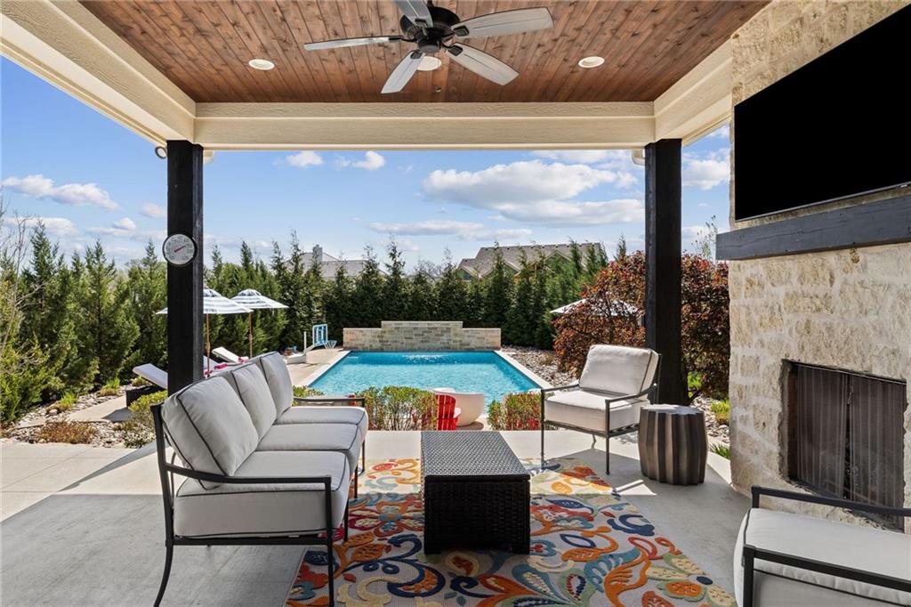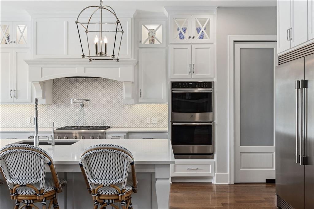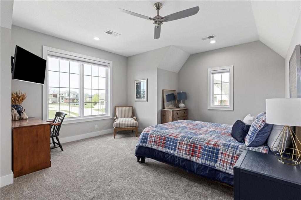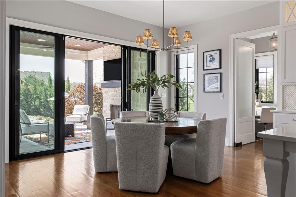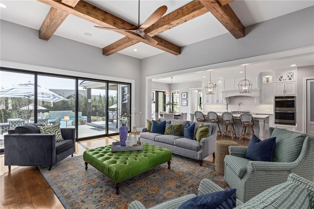 Your DREAM HOME in Mills Ranch in South Overland Park. This estate home offers a truly one-of-a-kind setting. Extensive landscaping ensures incredible privacy on the almost full acre lot adjoining greenspace—a rare find in a suburban neighborhood! Gorgeous 1.5 story home built in 2019 by Todd Hill Homes with high-end design & luxury finishes. Recent upgrades include ALL brand-new, top-of-the-line Pella windows, sliding doors, new carpet, & fresh designer wallpaper in the powder room & primary bedroom. The primary bedroom is a true retreat with ensuite bath featuring a deep soaker tub, & two walk-in closets recently upgraded with custom California Closets. The kitchen features beautiful white cabinets, oversized fridge, & walk-in pantry. Tucked away on this floor is a private office, a spacious laundry room, and a convenient mudroom (or "drop space") with built-in cabinets to hide all the day-to-day "stuff." Get ready to host—this house is perfect for entertaining! Enjoy seamless indoor/outdoor living with massive panoramic sliding doors off the living room. Step outside to the lanai with fireplace, terraced patio, & a top of the line 20x40 saltwater pool! It has all the bells and whistles: a lounge pad, water features, LED lighting—everything you could want! Upstairs, you'll find three spacious bedrooms, each with its own full bathroom. Also upstairs is a massive bonus room that you can use for anything—a second office, game room, or kids' playroom. Finished lower level includes two more bedrooms, 1.5 baths, a custom media wall, pool table area, & seating for everyone to catch the big games. The sleek wet bar features illuminated liquor shelves, a bev fridge, dishwasher, & marble bar that seats six. Don't miss the large, mirrored workout room. This is truly an extraordinary property that guarantees a lifestyle of absolute comfort and luxury. It sits on a quiet cul-de-sac surrounded by other exceptional homes. Don't miss out—schedule your private showing today!