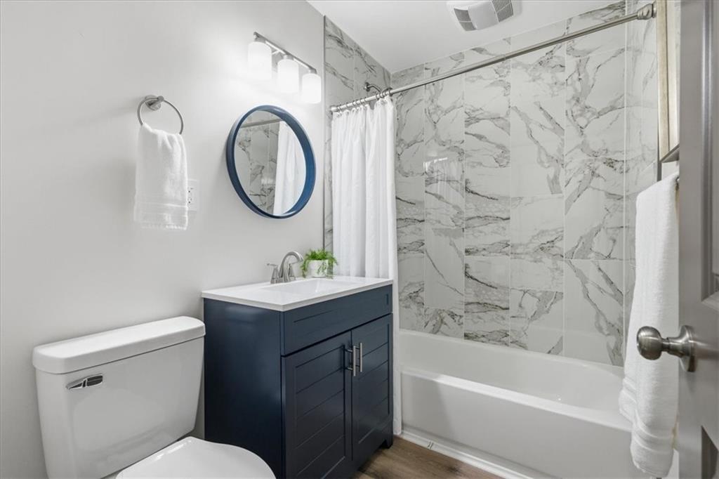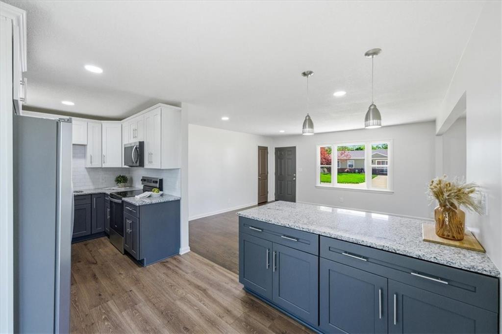 Adorable FULL remodel with all the big-ticket items DONE! From the moment you arrive, you’ll love the fresh exterior paint, all-new interior paint, new windows, and brand-new roof. Step inside to find refinished hardwoods, LVP flooring throughout, and a stunning all-new kitchen featuring granite countertops, gorgeous cabinetry, an island, stainless steel appliances, and a refrigerator that stays. The bathroom has been completely updated with beautiful tile finishes, and new doors add a fresh touch throughout. The finished basement expands your living space with a large family room, full bath, and a non-conforming fourth bedroom, laundry, and a large storage room. Major mechanical upgrades include a NEW A/C unit, 200-amp electrical panel, and all-new plumbing stack. Bonus: oversized detached 3-car garage/shop with new garage doors—perfect for extra storage or projects. This one is truly move-in ready!