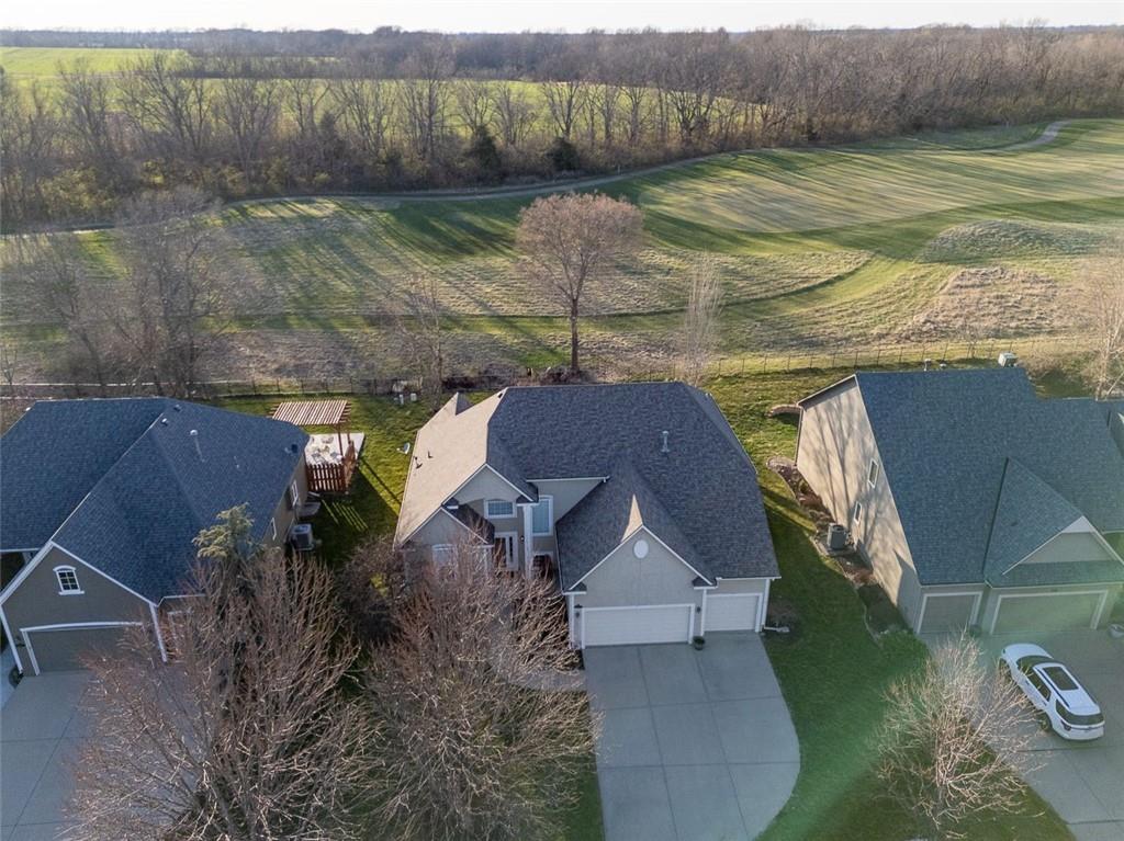 Experience the ultimate maintenance-provided lifestyle in this move-in ready 1.5-story villa perfectly positioned along the 13th fairway of the prestigious Prairie Highlands Golf Course. This thoughtfully designed open-concept floor plan features a rare main-level primary suite with laundry access off the kitchen, a modern kitchen and hearth room, and a formal living area ideal for entertaining. The versatile second-level loft—featuring brand new carpet—serves as a perfect dedicated home office or flex space, while the finished lower-level family room provides additional square footage with a built-in wet bar. Exceptional peace of mind comes with big-ticket recent upgrades, including a newer roof, HVAC system, and water heater. Enjoy serene golf course views from your private deck and a backyard equipped with an underground pet fence. Located in the highly-rated Olathe School District near Lake Olathe Park, this turn-key villa includes a comprehensive HOA covering snow removal, mowing, aeration, fertilization, and sprinkler maintenance, plus access to the community pool, clubhouse, and neighborhood restaurant. Above-ground fences are restricted to maintain the manicured grounds of this premier golf course community. Experience luxury, comfort, and a true lock-and-leave lifestyle in this exceptional Prairie Highlands home!