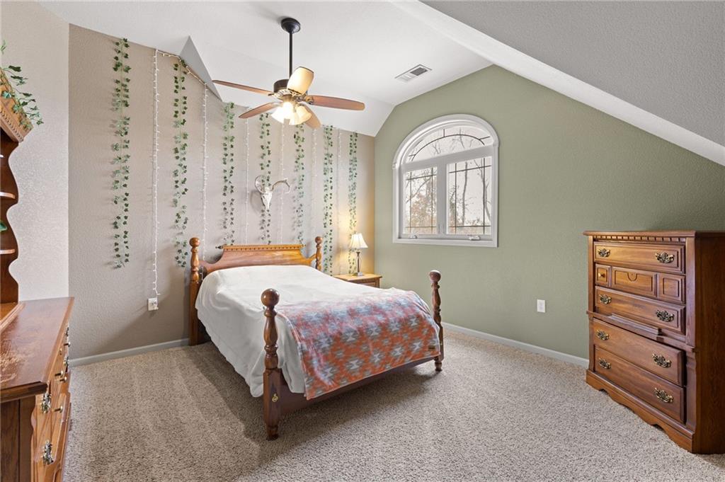 PRIVATE RESIDENCE OF A FOURTH GENERATION HOME BUILDER on 4 picturesque acres! One of a kind custom home offers over 6,200 finished square feet, 5 Bedroom, 4 1/2 bathroom + non-confirming 6th bedroom (7,000 SF total when including gym & basement workshop). LOCATED 6.5 miles north of Warrensburg and 13 miles south of I-70, making the Kansas City commute a breeze. The easement driveway leads past the 1st pond w/ swim dock, up to the residence w/ a stamped & stained concrete covered porch that offers some of the most breathtaking sunrises imaginable. FIBER INTERNET is available at this property. The 2,650 SF main floor features hardwood floors throughout, floor to ceiling stone wood burning fireplace in the living room. The custom chefs kitchen w/ 3 ovens, commercial grade appliances & a large kitchen island for gathering. The hearth room offers a gas fireplace and an abundance of natural light. The primary bedroom suite includes an electric fireplace, double closet, double vanity, built-in furniture, large tile shower & a private laundry room. Upstairs, 3 large bedrooms, 2 full bathrooms, laundry & a bonus non-conforming (6th) bedroom / play room. The finished walkout basement includes a large family room w/ electric fireplace, a custom dog kennel w/ dog door to the outside, fitness gym, 5th bedroom, full bathroom, and workshop / storage. Upgraded features include 2x6 construction, two geothermal heat-pumps for efficiency, two rear decks (one covered that runs entire length of home). A newly constructed 44' x 64' shop w/ 240V electric, two garage doors, concrete floor & bi-fold hanger style door for all of the toys & equipment. This custom home is one you don't want to miss. Too many features to list! Call today to schedule a showing! Home can be purchased with 22.54 total acres and can be referenced at MLS listing 2589070.