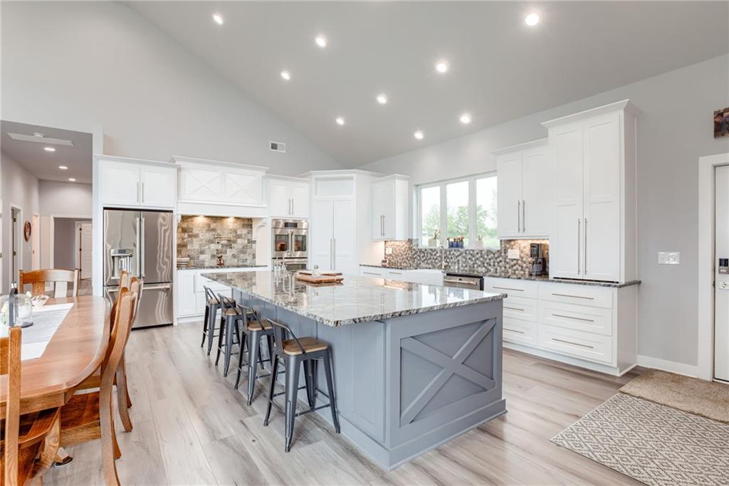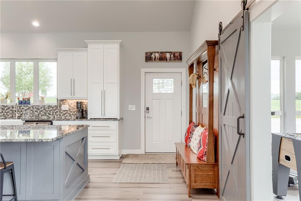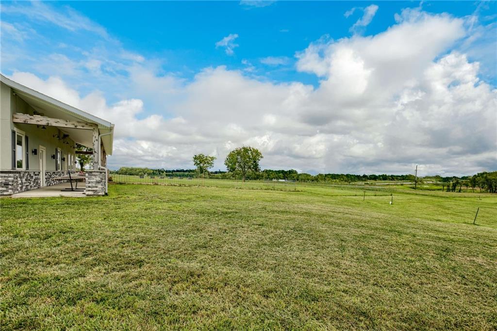 Discover the convenience of this picturesque estate located just off exit 40 in Lathrop MO. This newly constructed home offers over 4400 square feet of livable space and just over 5 acres with and livestock facilities. Ideal for business owners, large families, or those wanting a quick commute to Kansas City or the airport. The stunningly designed home offers 4 bed, four bathrooms, two fireplaces and a massive great room perfect for family living and entertaining guests. Inside there is a blend of marble and high end flooring that adds elegance and durability throughout. The heart of the home features a state of the art kitchen with an 11 foot custom granite island, walk in pantry, and personalized kitchen cabinetry. The expansive concrete driveway and parking pad outside the 4 car garage provides extra parking for additional guests. Additionally the main floor offers oversized hallways and doorways making it completely handicapped accessible. Outside the home there is a 30x40 barn with a fully fenced paddock with water spigots already suitable for livestock or horses. Additional highlights include a vault style safe room, a dedicated office space and an integrated Generac backup generator, ensuring your home remains comfortable and functional in any situation. This property seamlessly combines luxury security and practically practicality making it a true sanctuary. homeowner is also willing to sell adjoining acreage for an cost. Don't miss the opportunity to own this remarkable estate just 30 minutes from Kansas City and the MCI Airport. Schedule your showing today Inexperience all this stunning home has to offer!