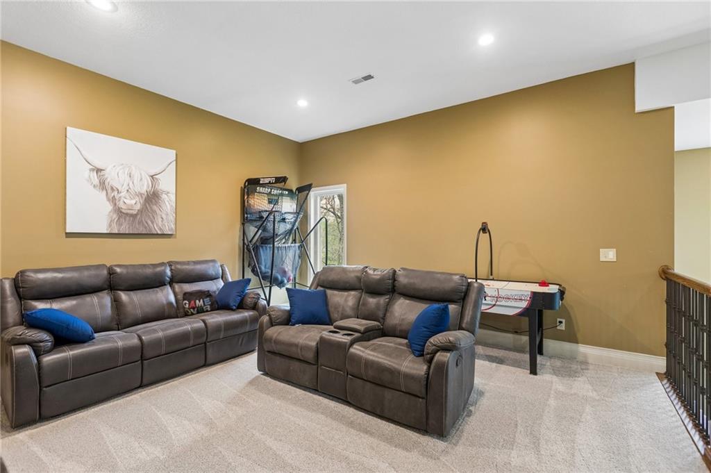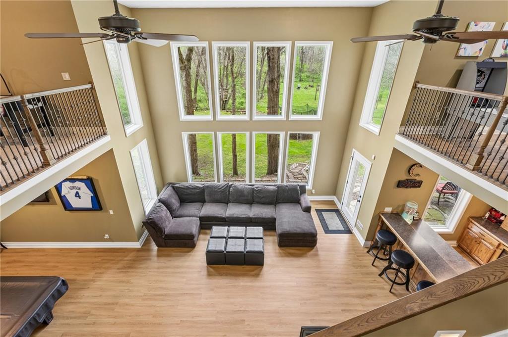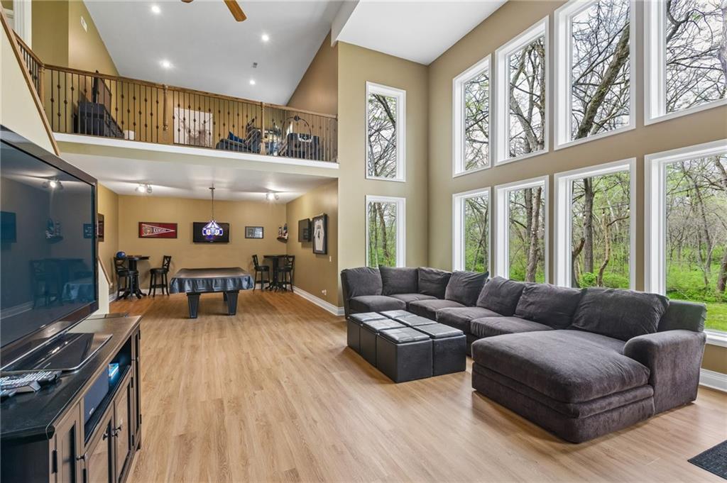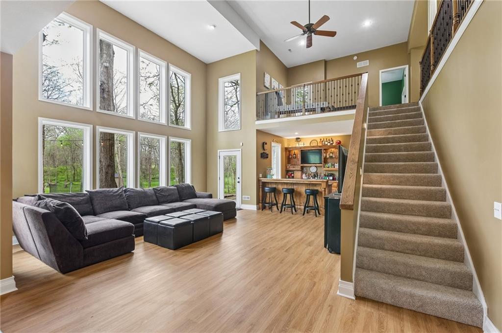 Private wooded views. Soaring ceilings. Your own in-home theater with concessions. This is the kind of home that was designed to be experienced—not just lived in. Featuring a home gym, a one-of-a-kind floor plan like no one you know has, and multiple decks perfectly positioned to take in the views—this is true luxury living built for entertaining and everyday enjoyment. From the moment you walk in, the scale and intention of this home are undeniable. Tall ceilings and expansive windows draw your eyes straight to the surrounding trees and natural views, creating a sense of privacy and calm that’s hard to find. At the heart of the home, a unique mid-level living design sets the stage for what this property does best—entertain. Whether you’re hosting movie nights in your dedicated home theater complete with its own concession area, gathering with friends across multiple living spaces, or simply enjoying a quiet evening taking in the views, every detail of this home was built for comfort, connection, and elevated everyday living. With over 5,600 square feet, 5 bedrooms, and 4 full bathrooms, there’s room for everyone to spread out while still feeling connected. The finished lower level adds even more flexibility for entertaining, recreation, or creating the perfect guest retreat. Step outside and the experience continues. Nestled on nearly 2 private acres in the desirable Fox Run community, this property offers a rare combination of open yard, mature trees, and a peaceful creek that winds through the back of the land. From mornings on the deck to evenings around the firepit, this setting invites you to slow down and truly enjoy where you live. Located in the highly sought-after Kearney School District, you’ll enjoy the convenience of nearby amenities while coming home to a space that feels like a retreat. Homes like this—where thoughtful design, privacy, and lifestyle come together—are rare. This is your opportunity to own something truly special.